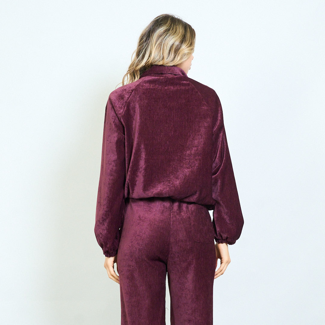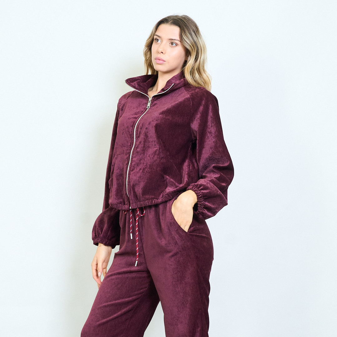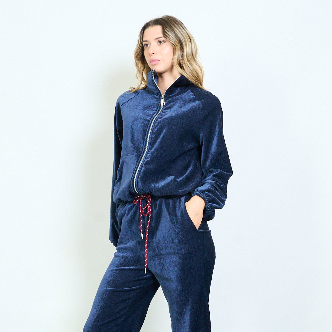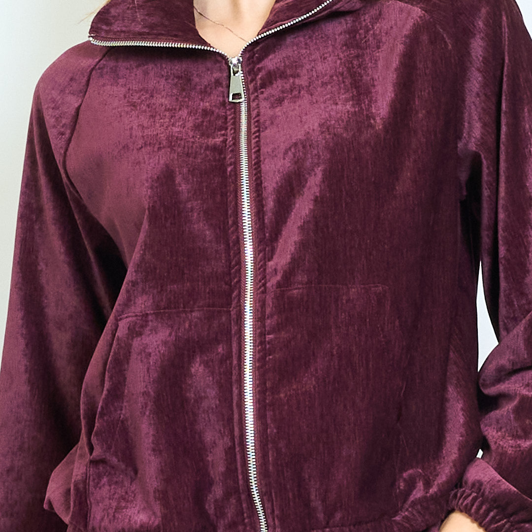Zip Up Velor -rento takki laajalla kaulustukekuurilla
