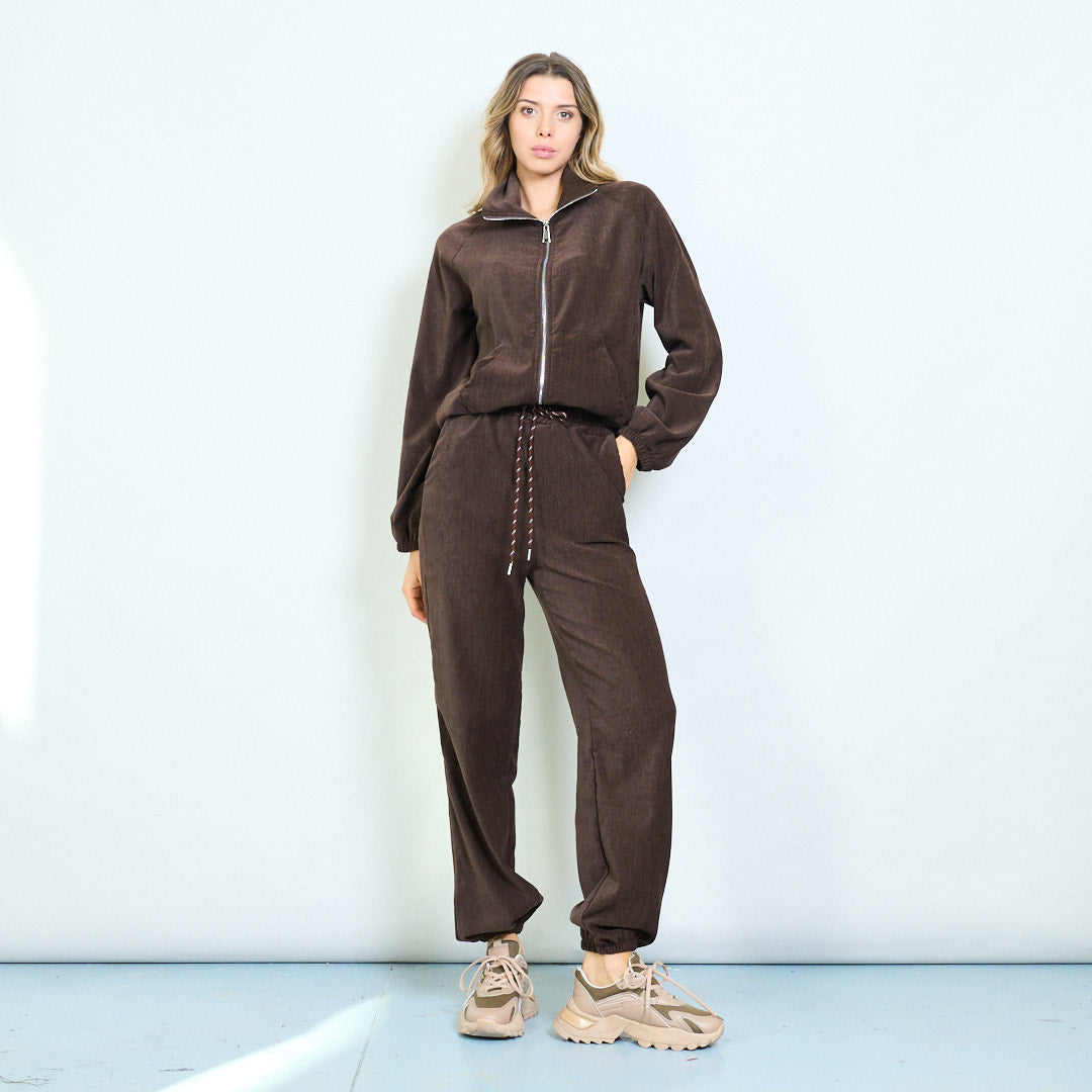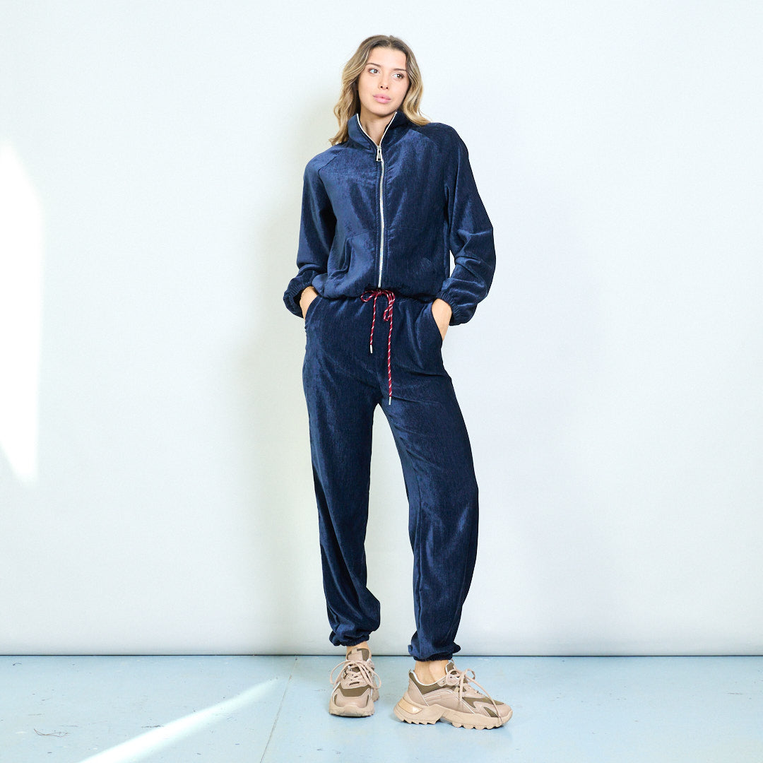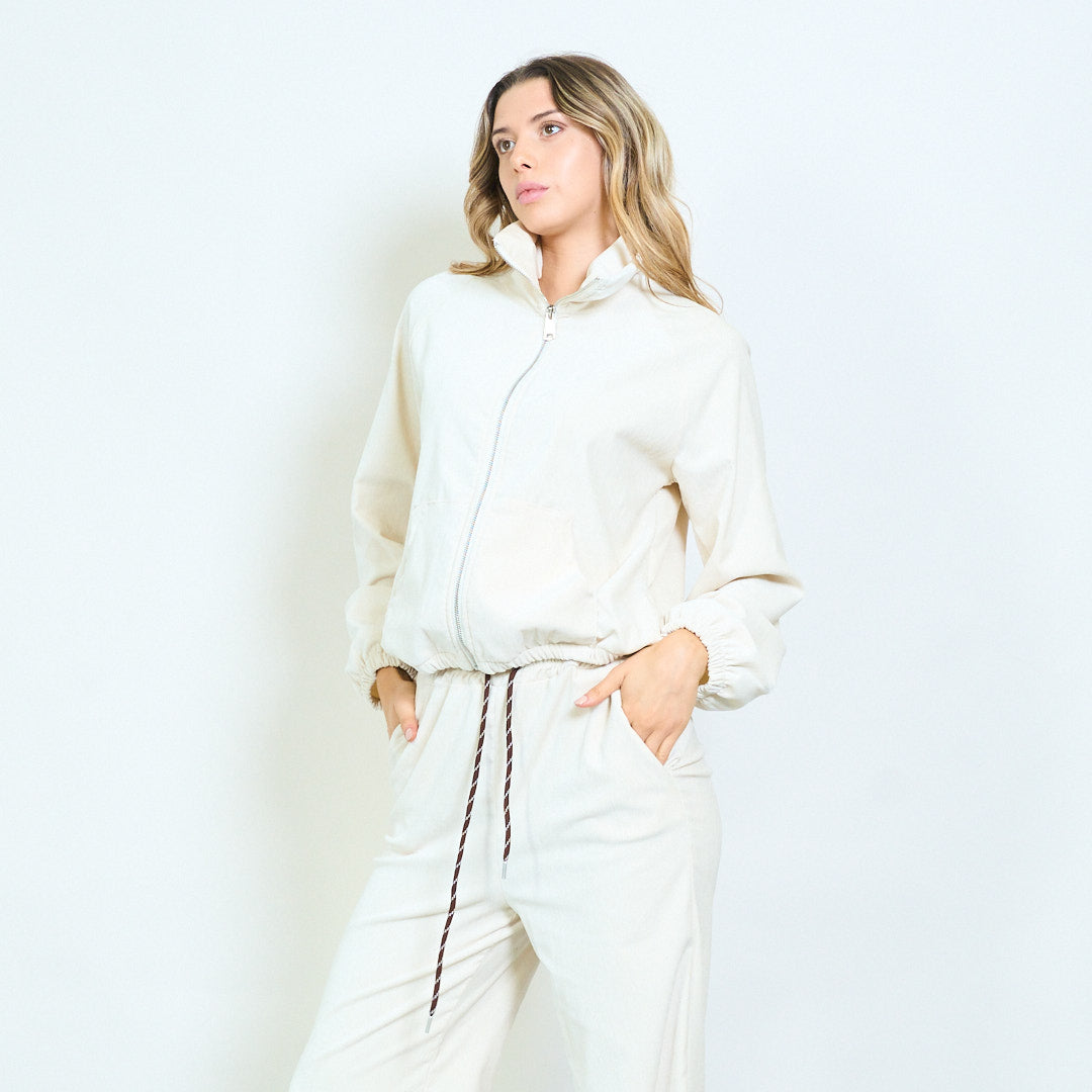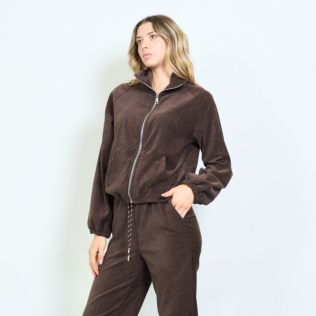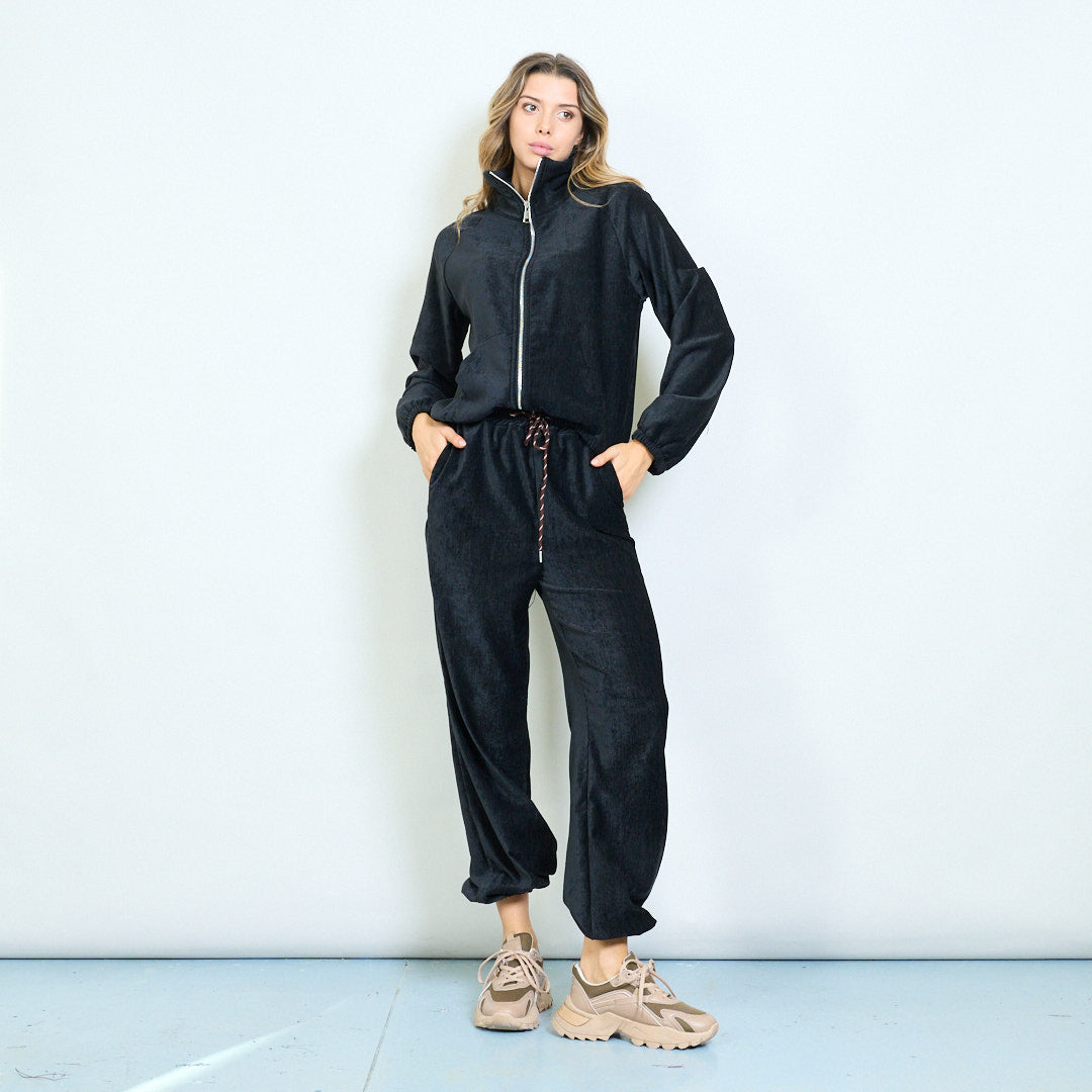 Zip Up Velor -rento takki laajalla kaulustukekuurilla