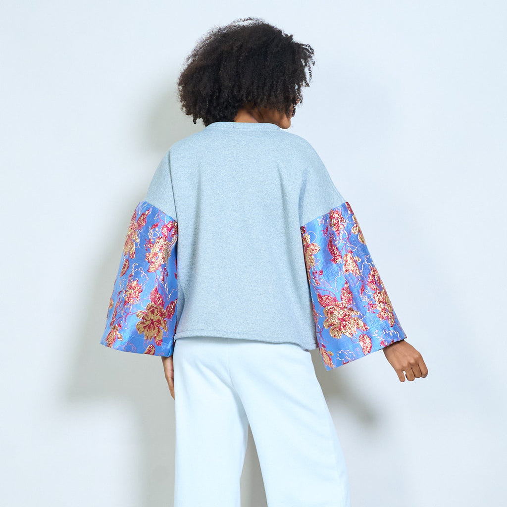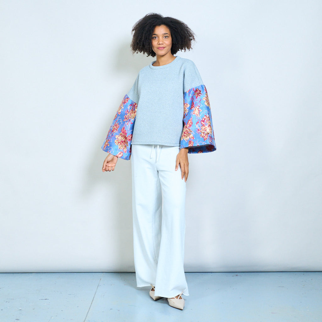 Kontrasti kirjailtu kukkainen kellohihainen pehmeä neulepusero tukkumyynti
