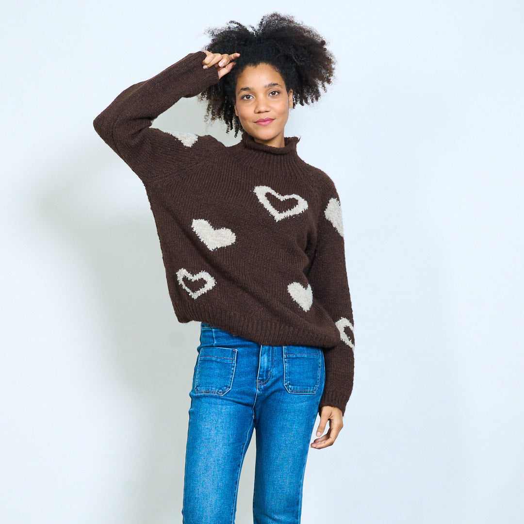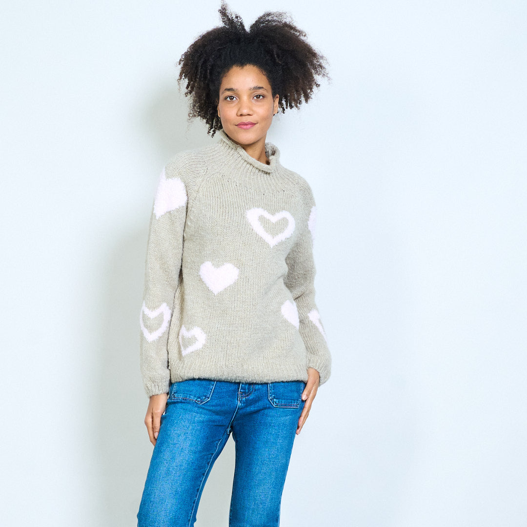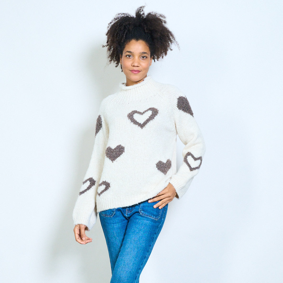 Sydänkuvioinen neulepusero pehmeällä pyöreällä pääntiellä tukkumyynti