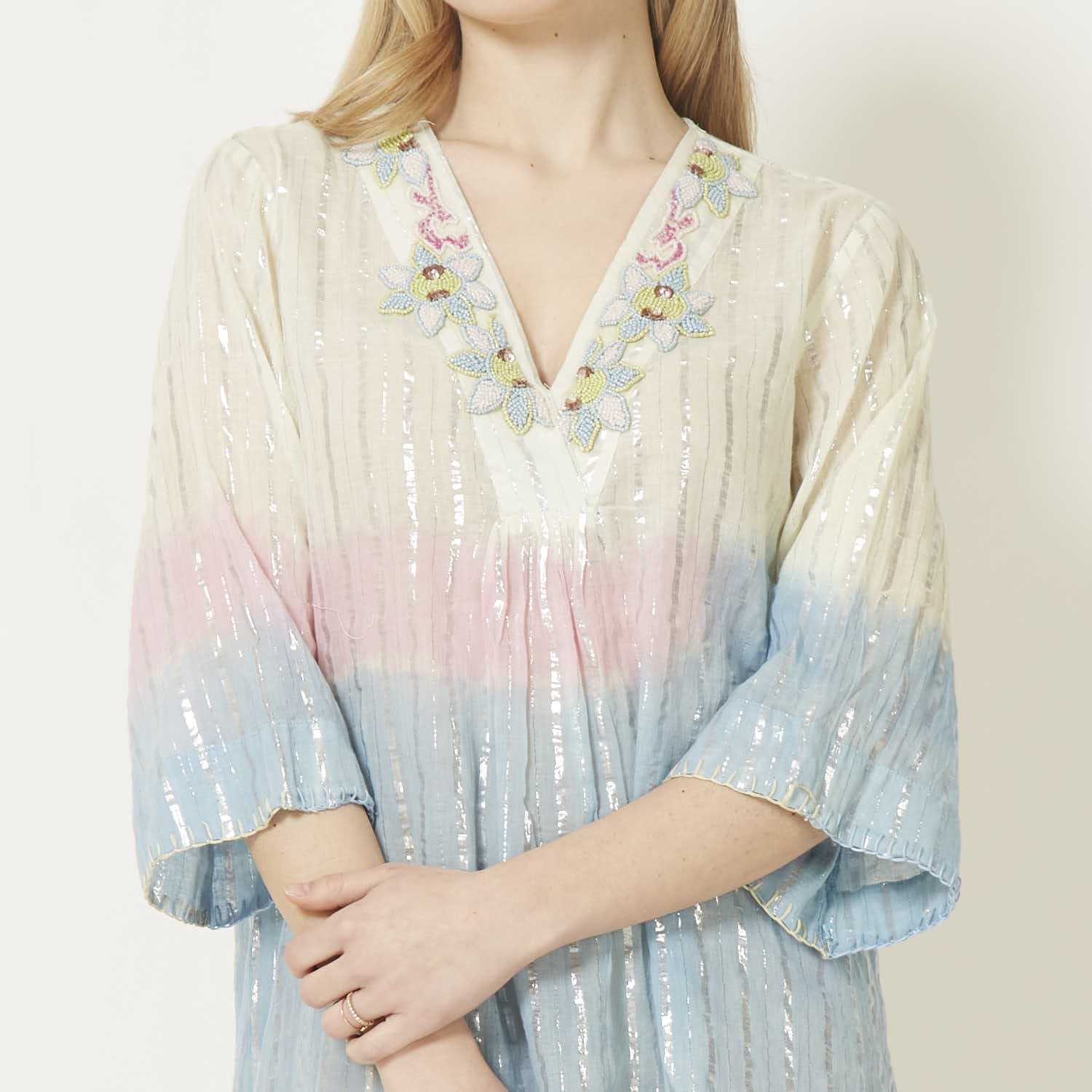 Tukkumyynnin fantasiamekko helmillä pääntie