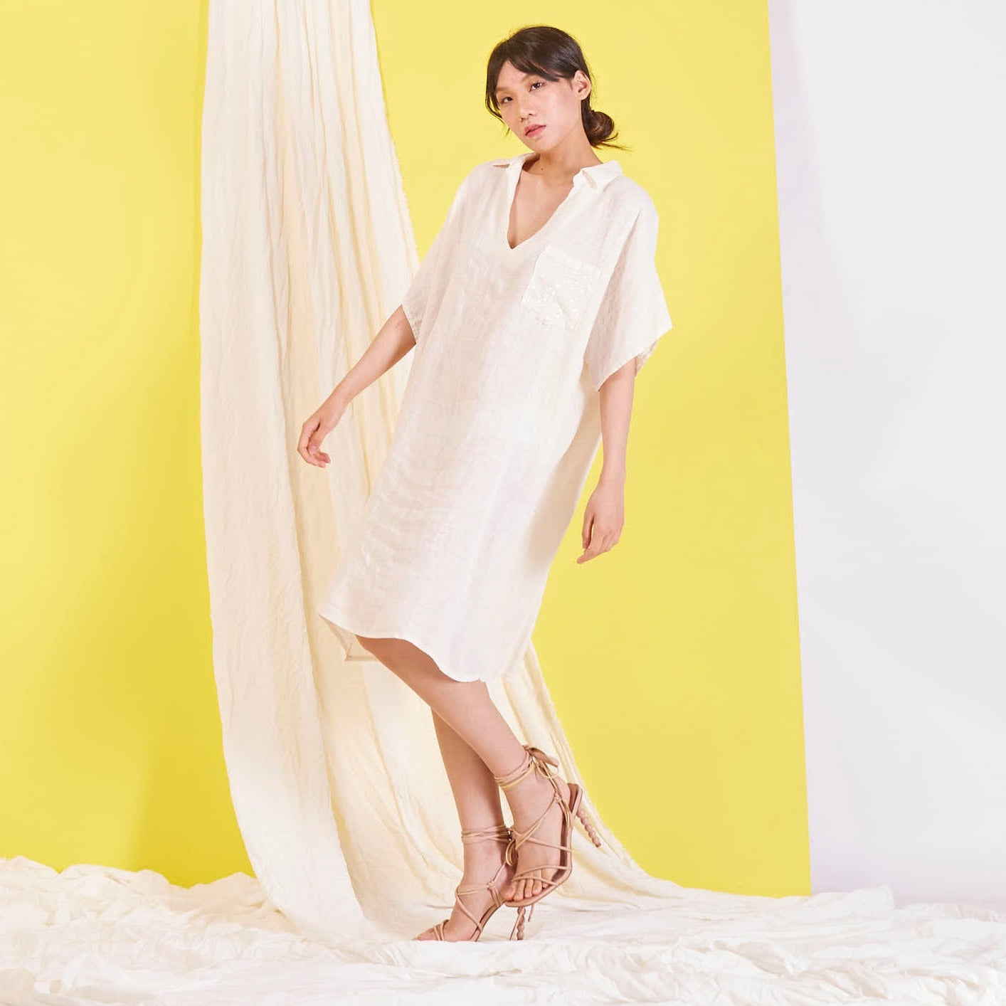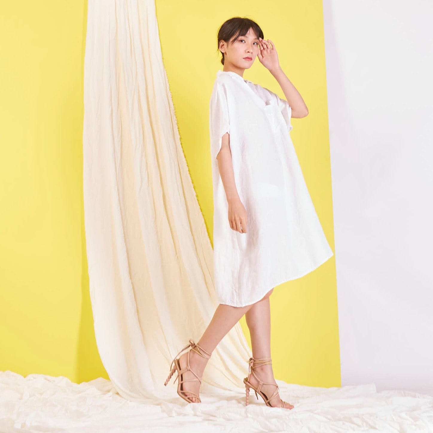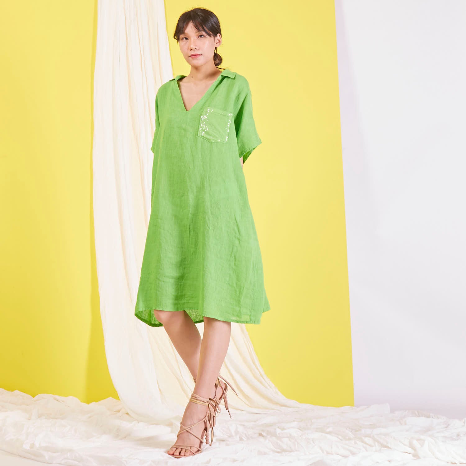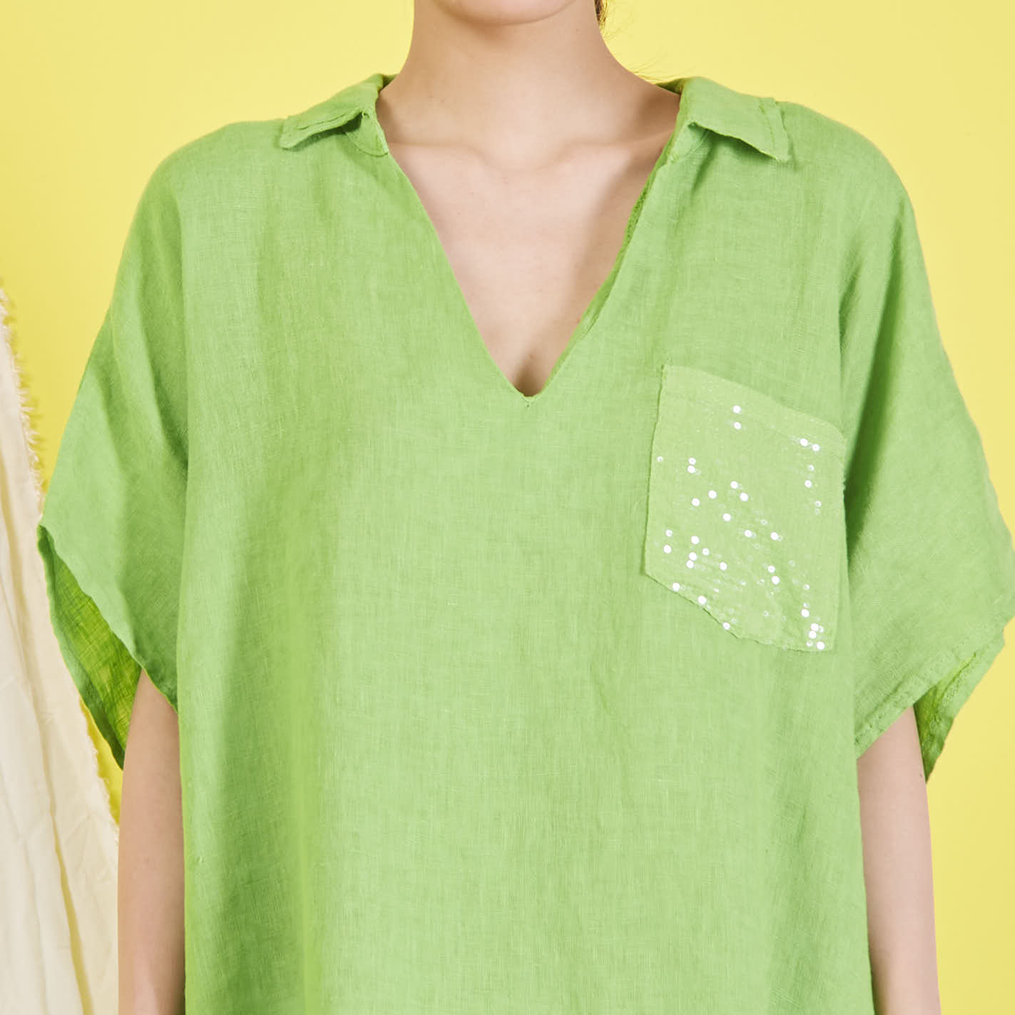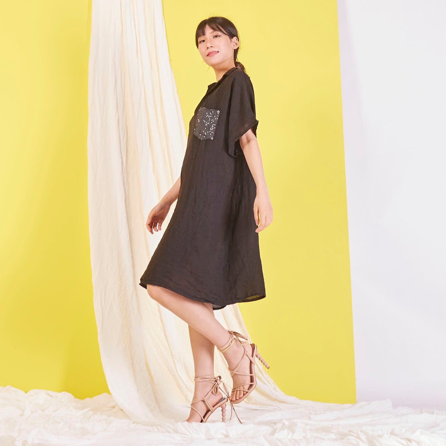 Tukkumyynti maxi pellavamekko paljetti taskulla