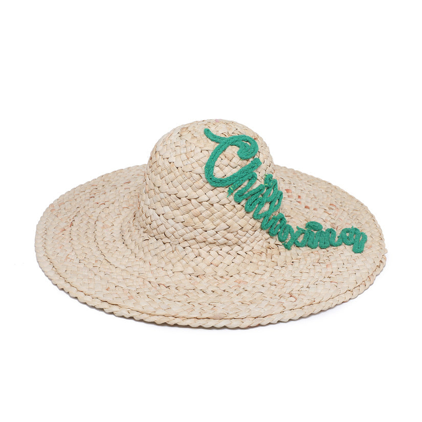 Leveä reuna Raffia -hattu ”chillaxing” -käsikirjoitusten yksityiskohdilla tukkumyynti