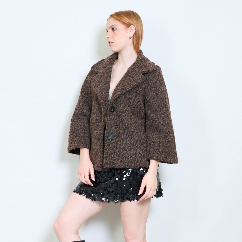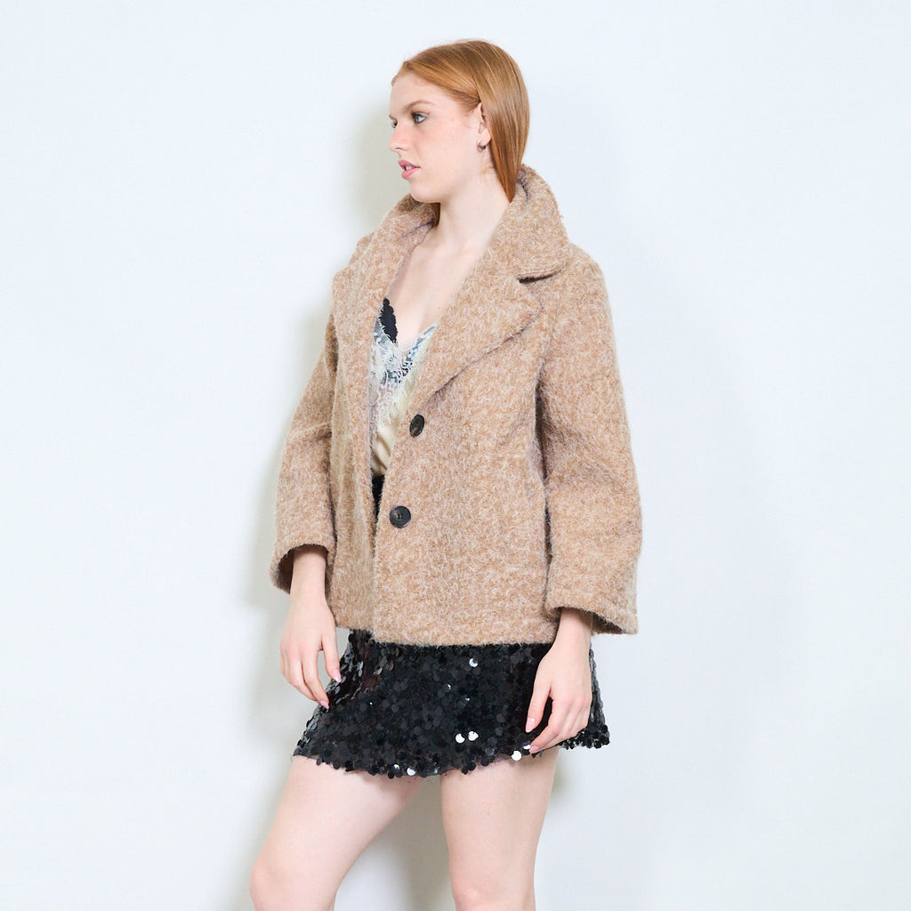 Teksturoitu sumea käänne, jossa napit edessä lyhennetty takki tukkumyynti