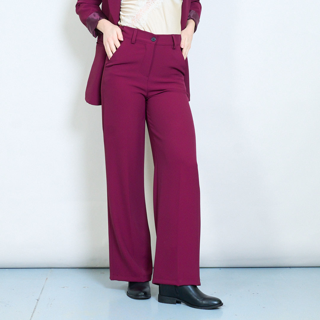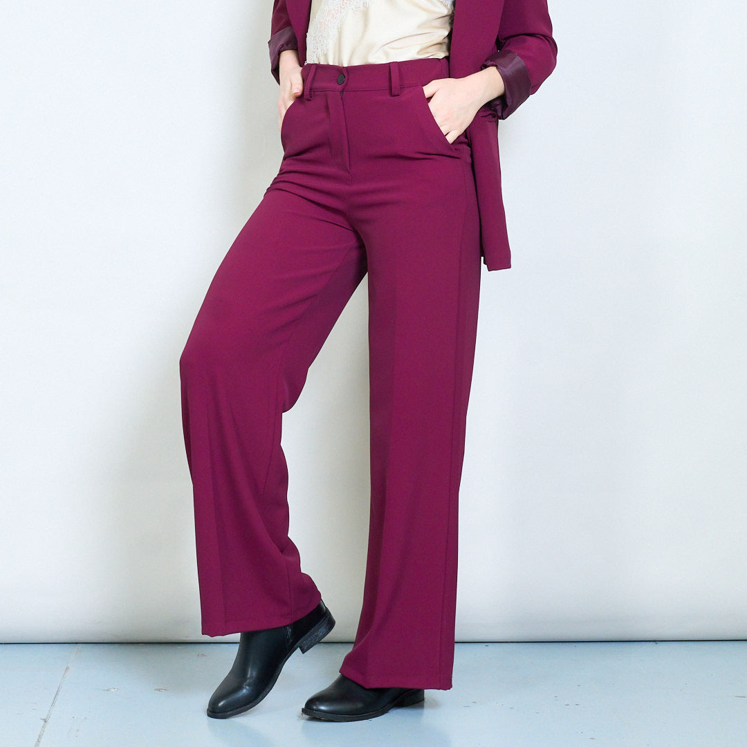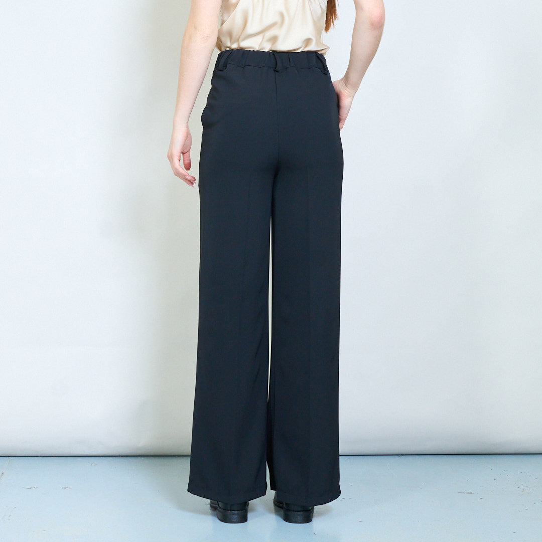 - Korkeavyötäröiset housut, joissa edessä laskokset ja toimivat taskut
