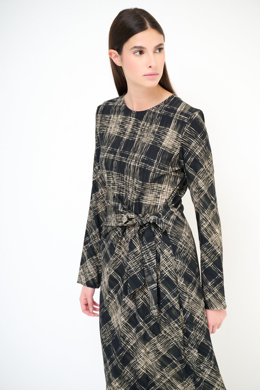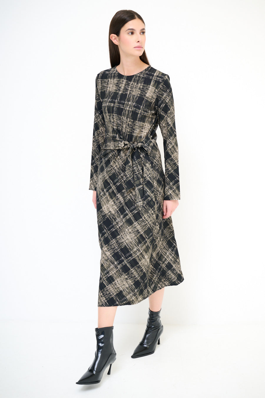 Abstrakti ruudullinen kuviollinen vyö midi-mekko tukkumyynti