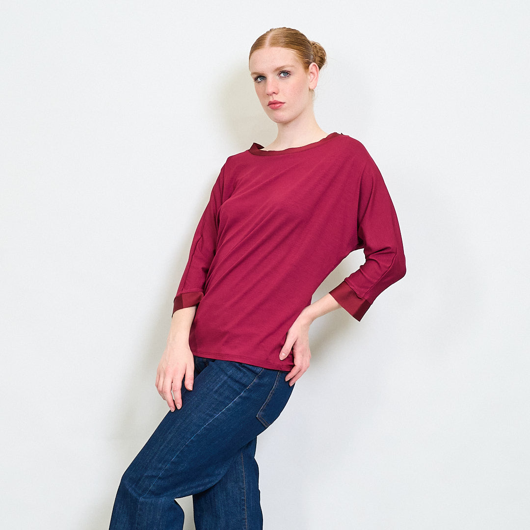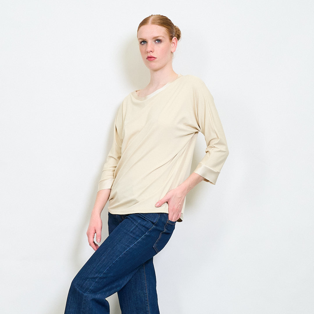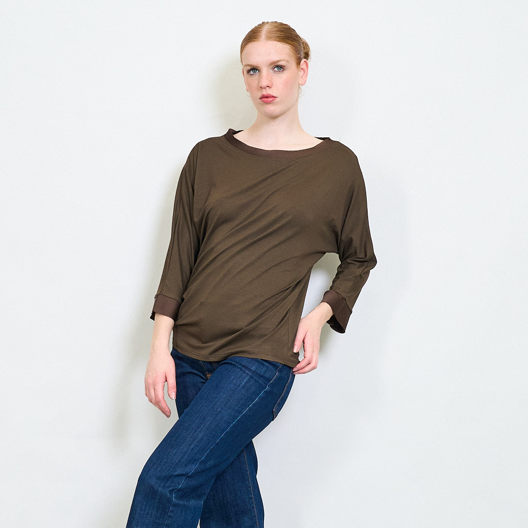 Takaosan veneen kaula 3/4 hihainen pehmeä jersey Top tukkumyynti