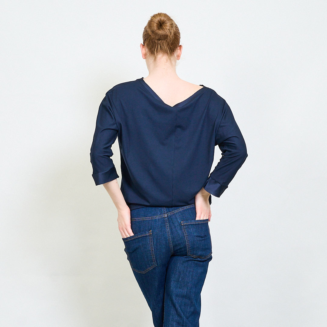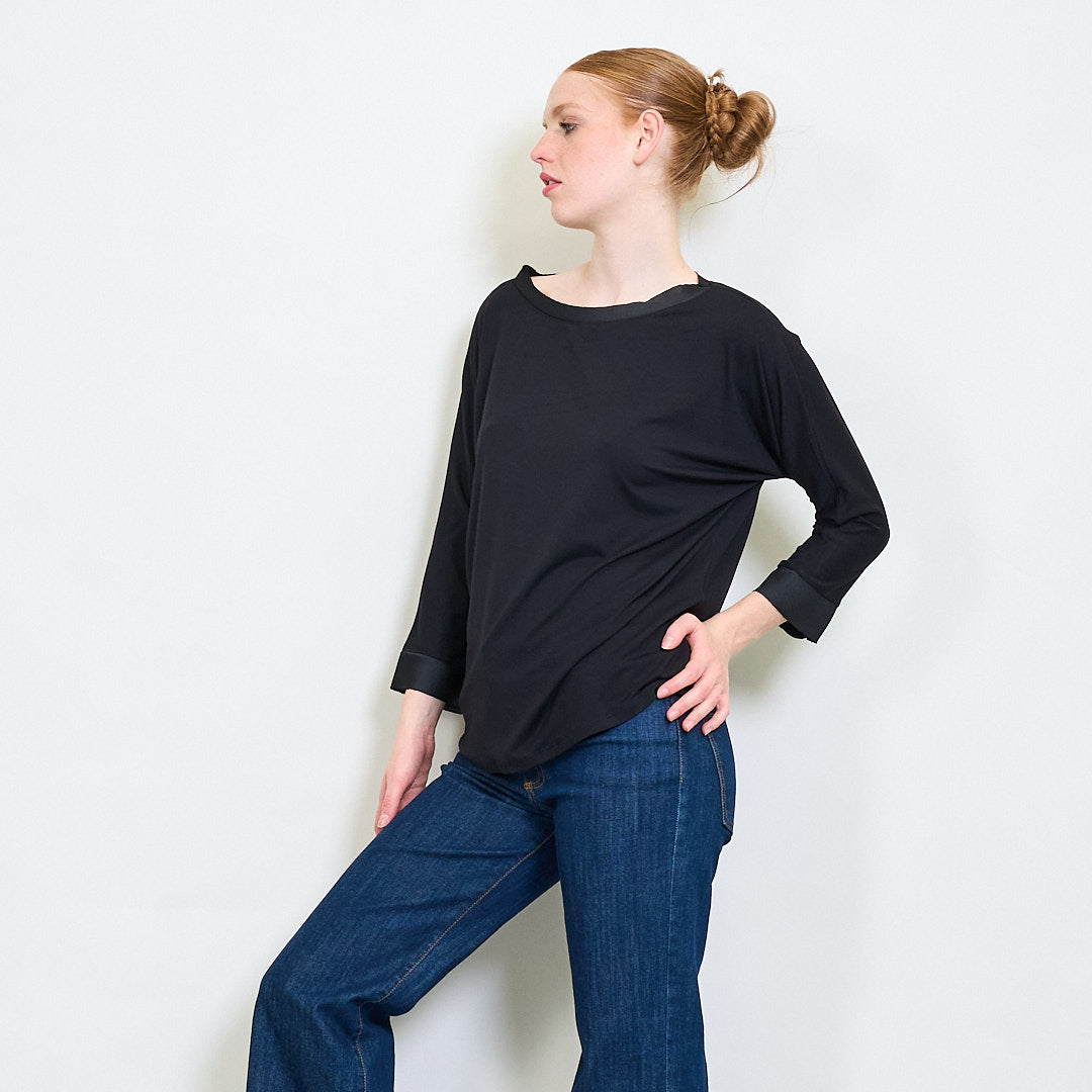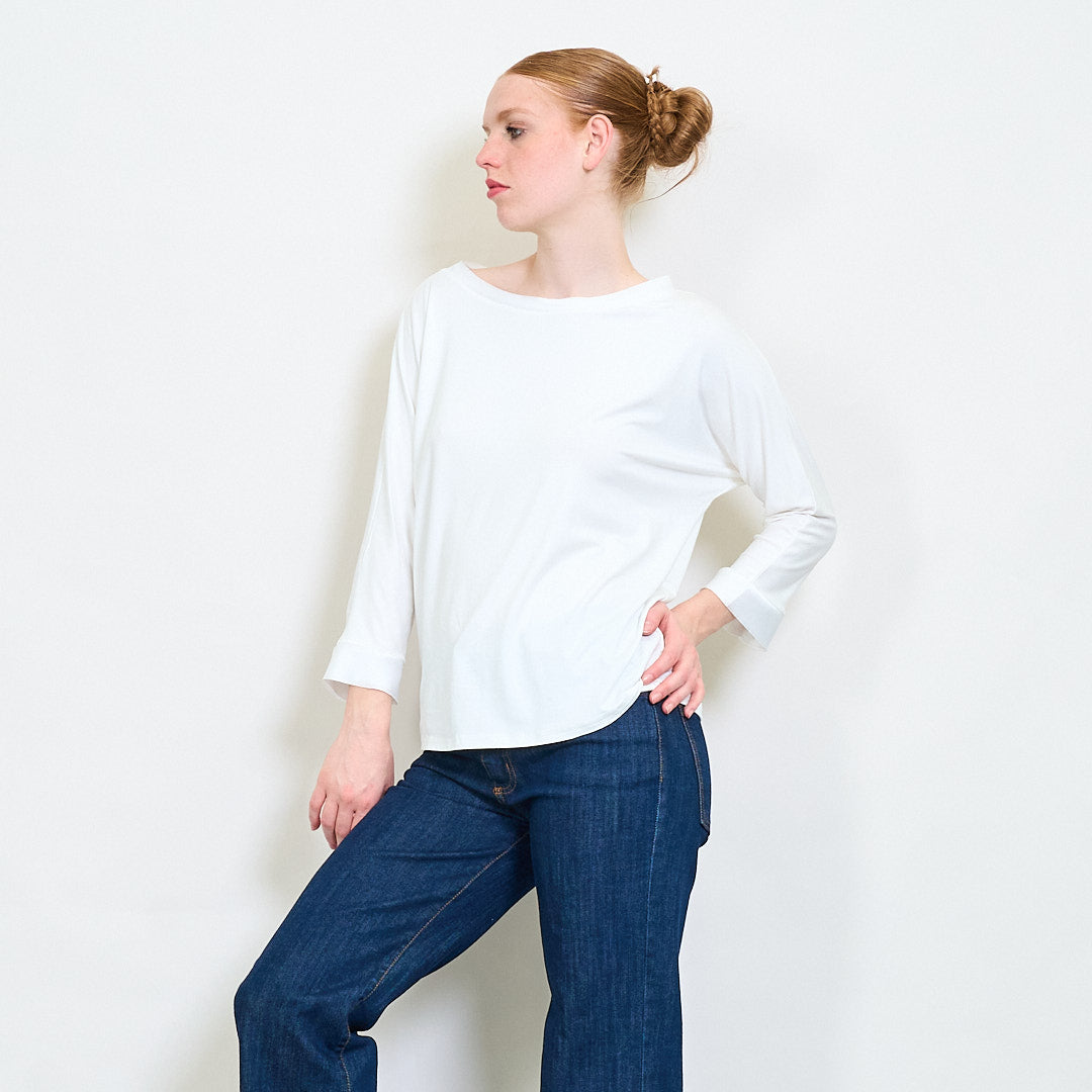 Takaosan veneen kaula 3/4 hihainen pehmeä jersey Top tukkumyynti
