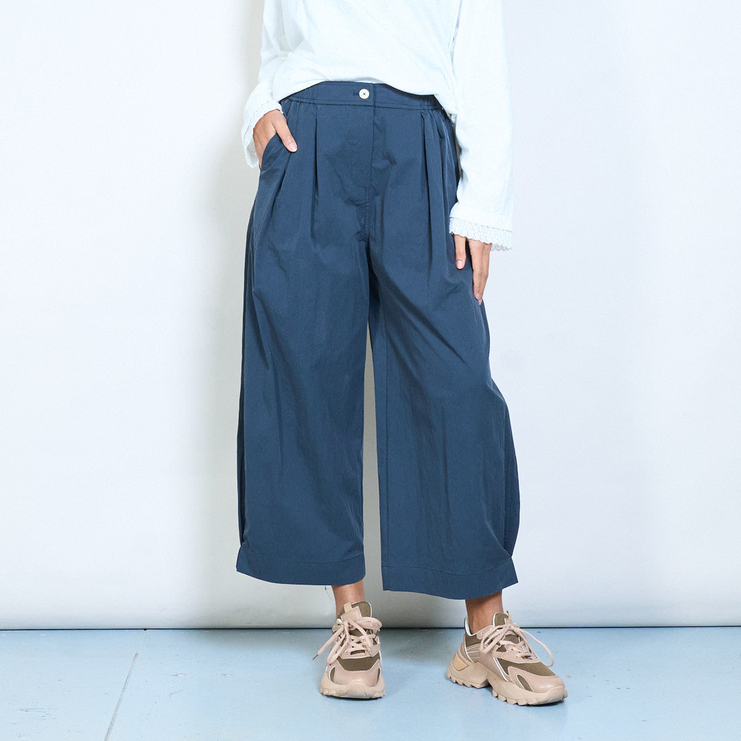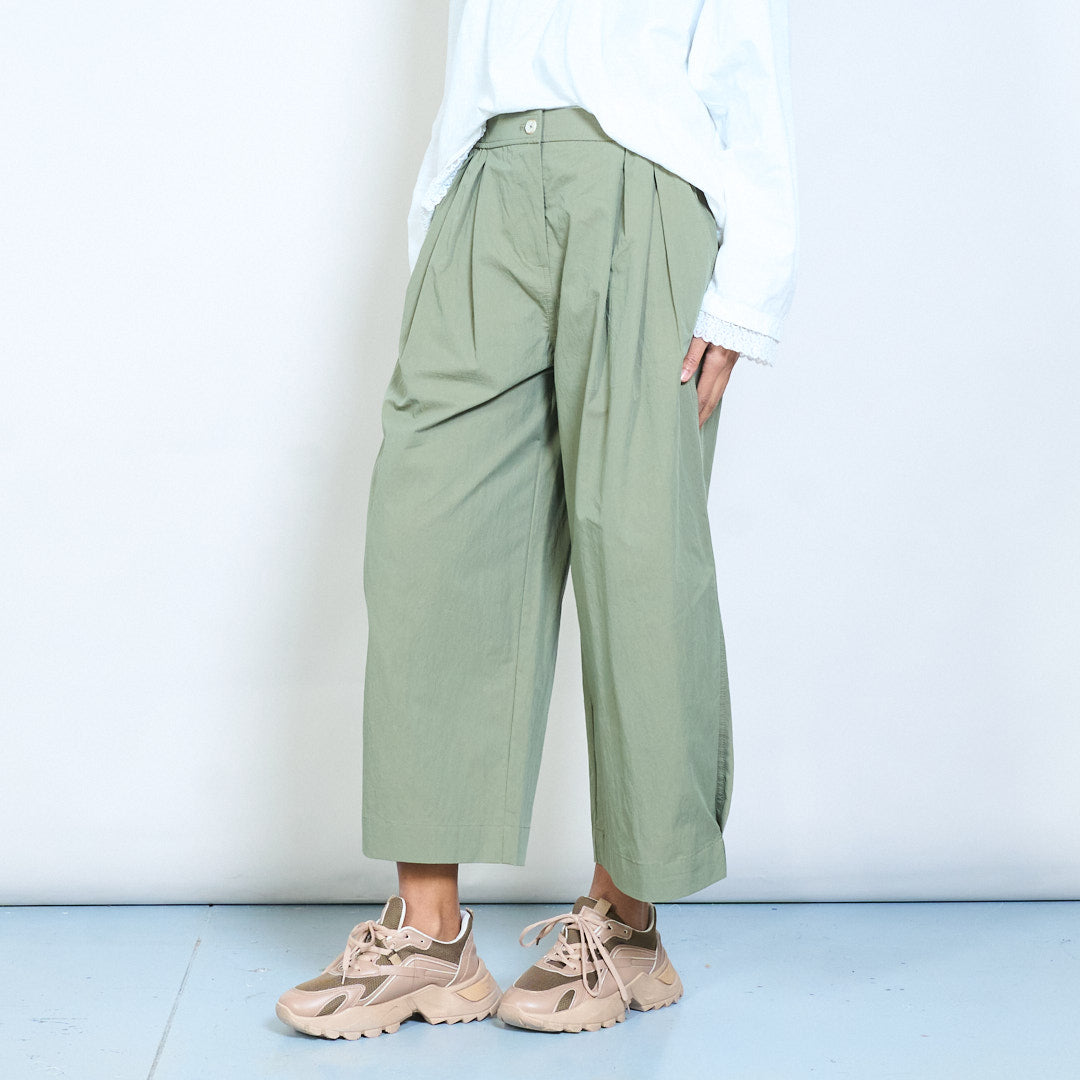 Laskostetut rennon mallit suoralahkeiset housut, joissa resori vyötäröllä