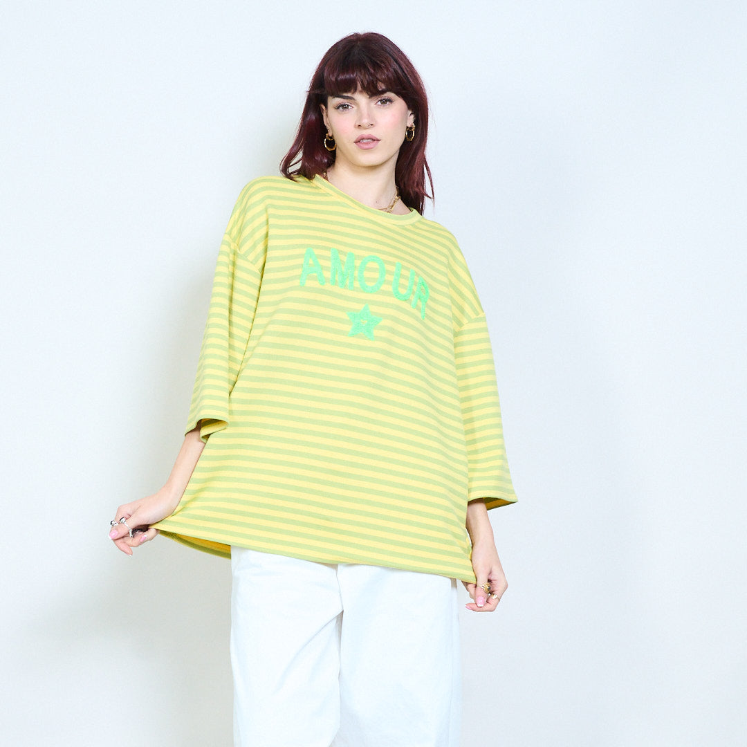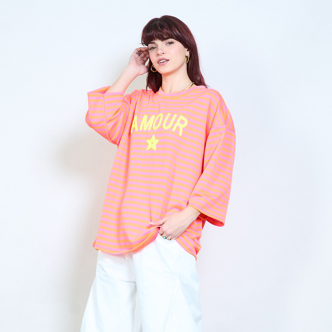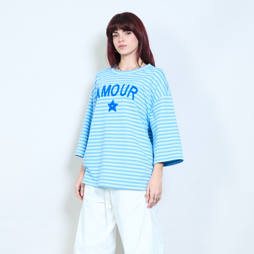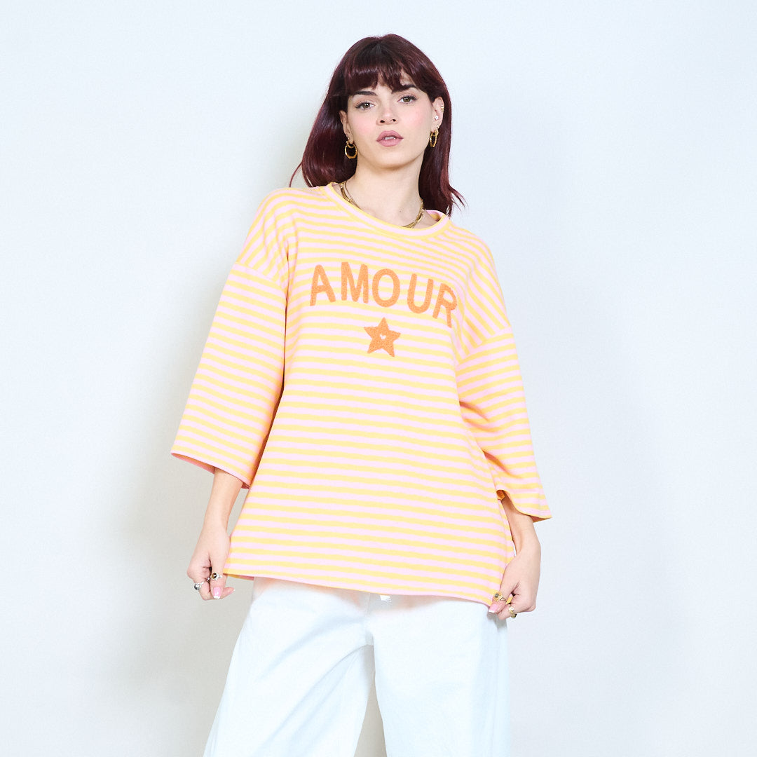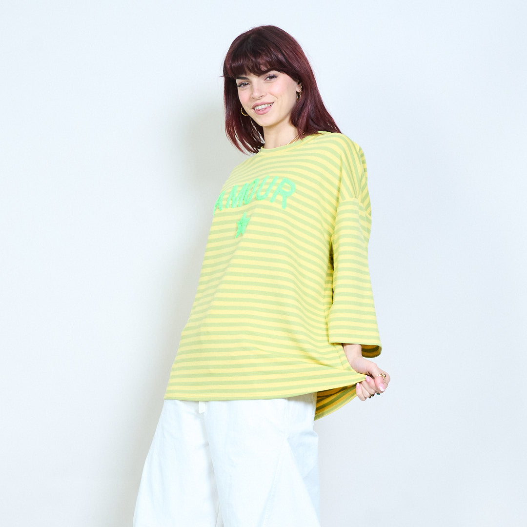 Raidallinen graafinen "Amour" teksti brodeerattu rento neuletoppi tukkumyynti