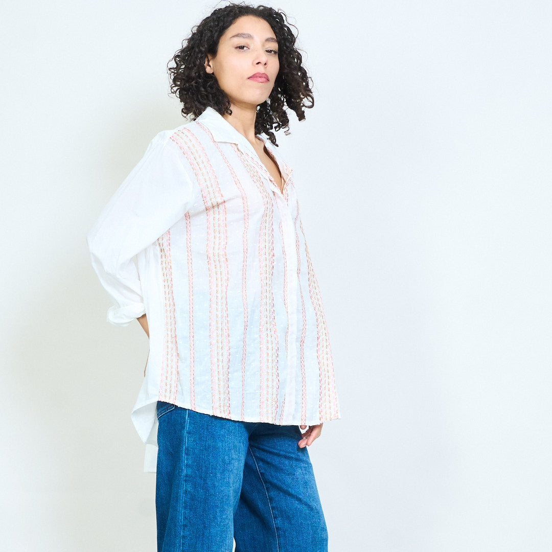 Raidallinen kirjailtu nappi edessä pitkähihainen paitapusero tukkumyynti