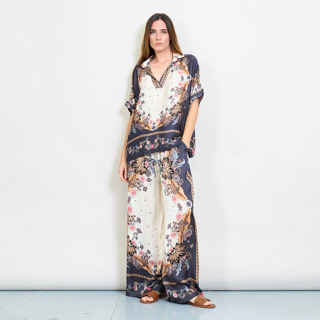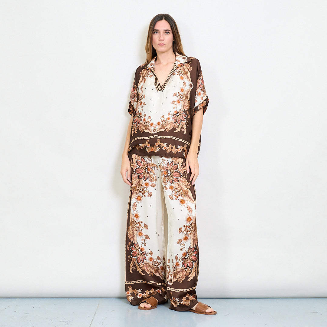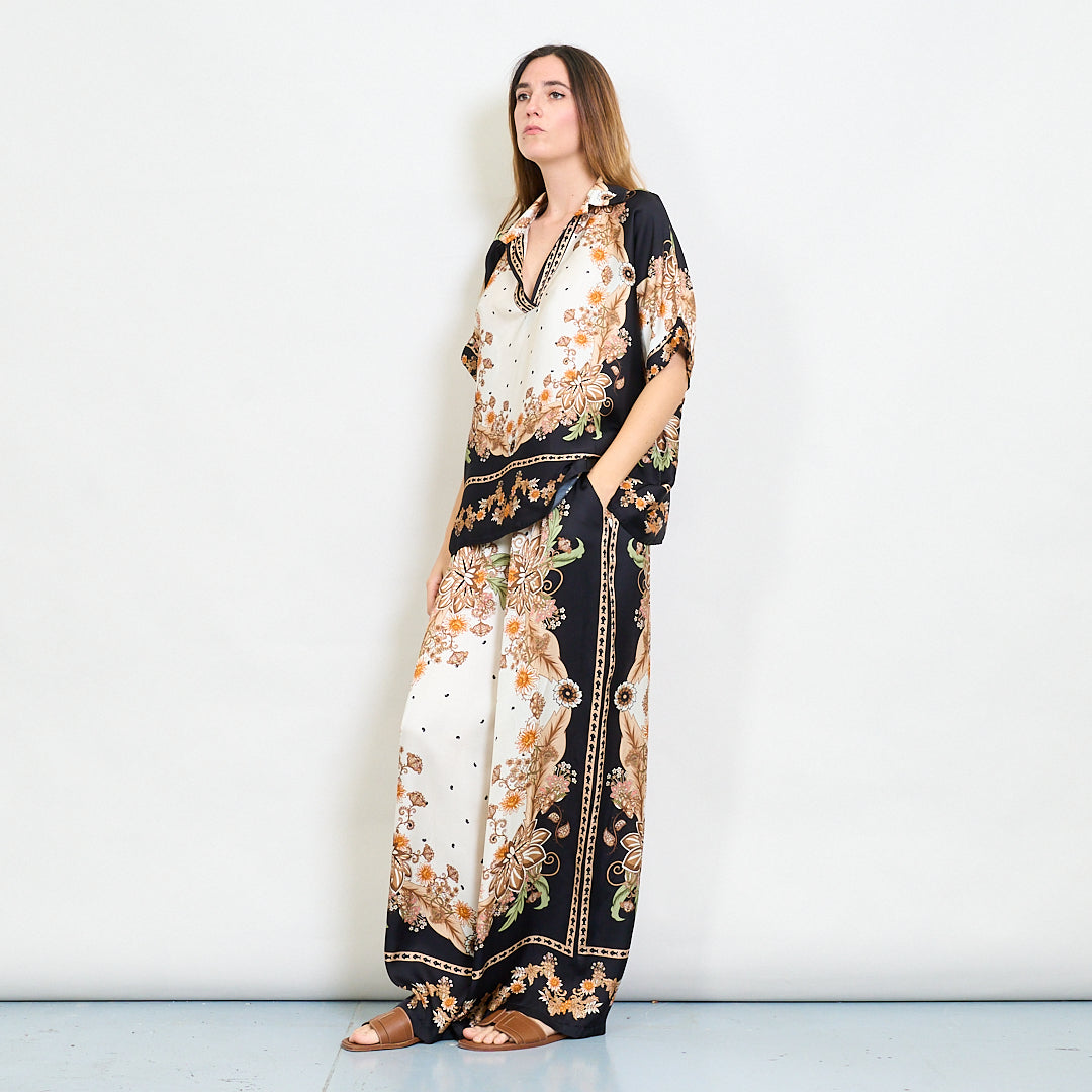 - Kaiken yli barokki kukkapainatus sopii palazzo-housuihin