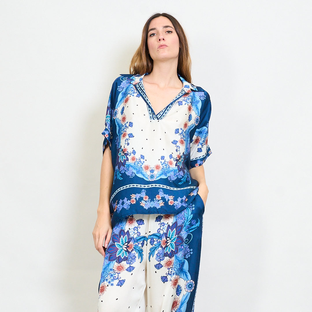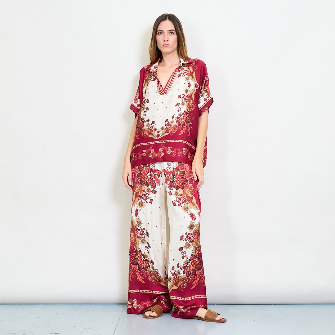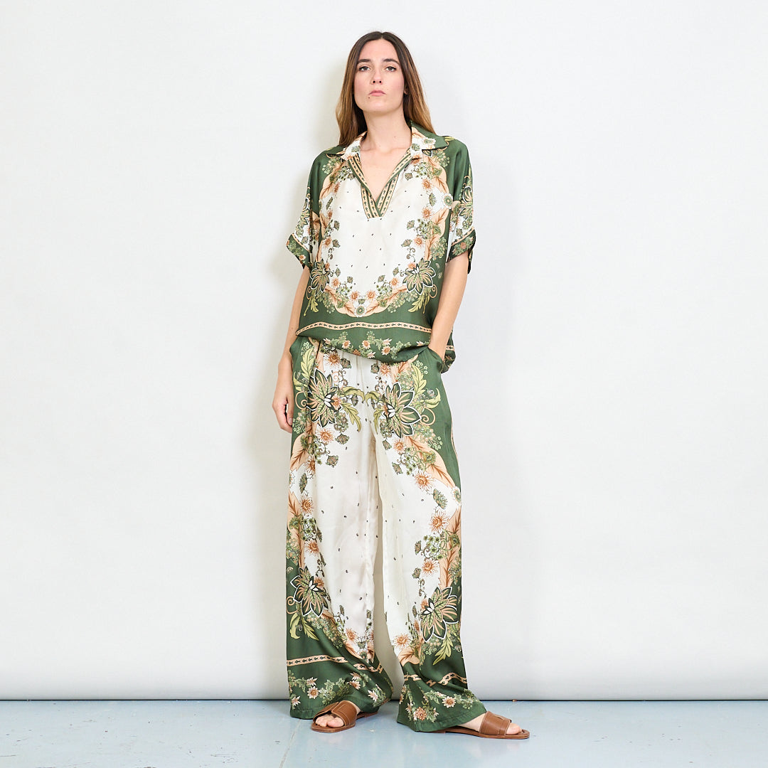 - Kaiken yli barokki kukkapainatus sopii palazzo-housuihin