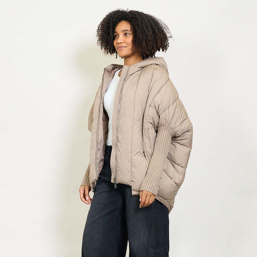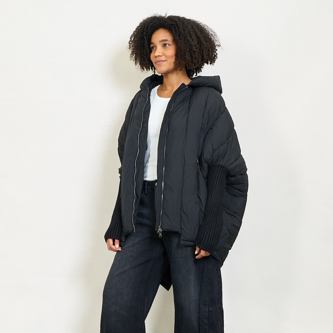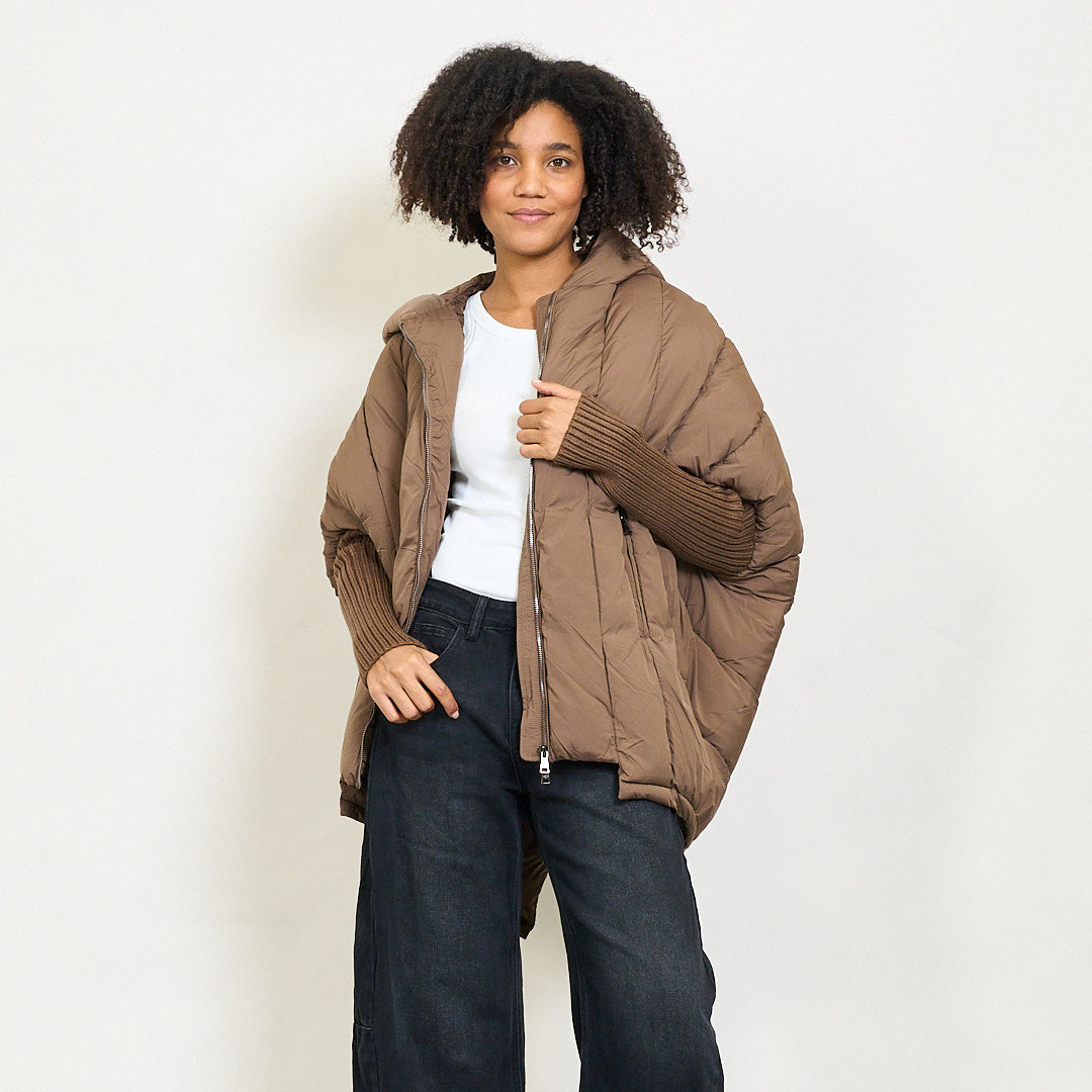 Pehmustettu talvitakki ylisuurella huppu- ja uritetulla neulottuilla hihoilla tukkumyynti