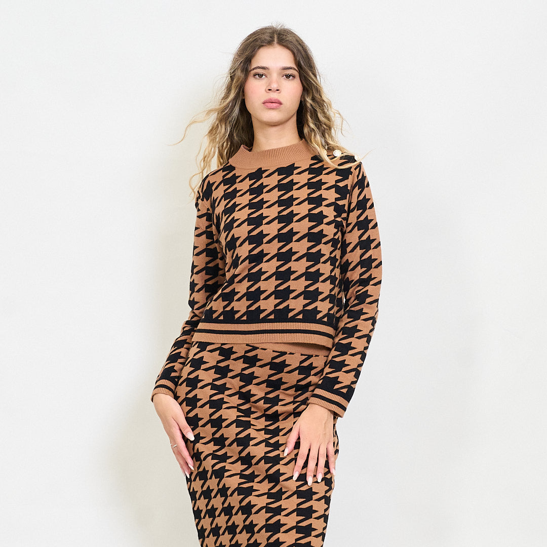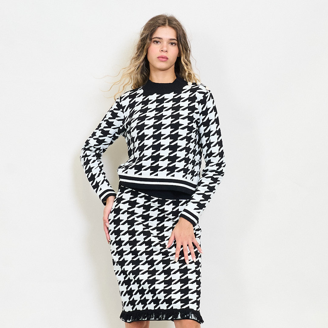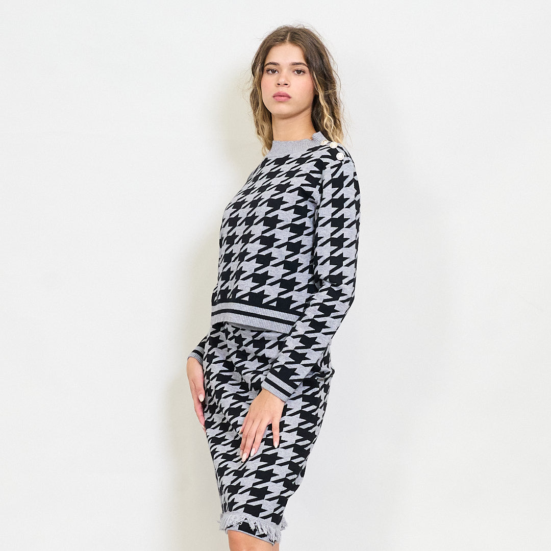 Rajattu houndstooth neulottu villapaita kultapainikkeilla tukkumyynti