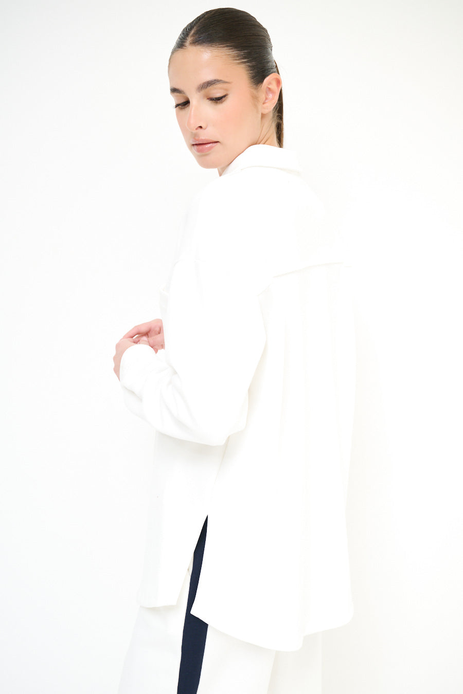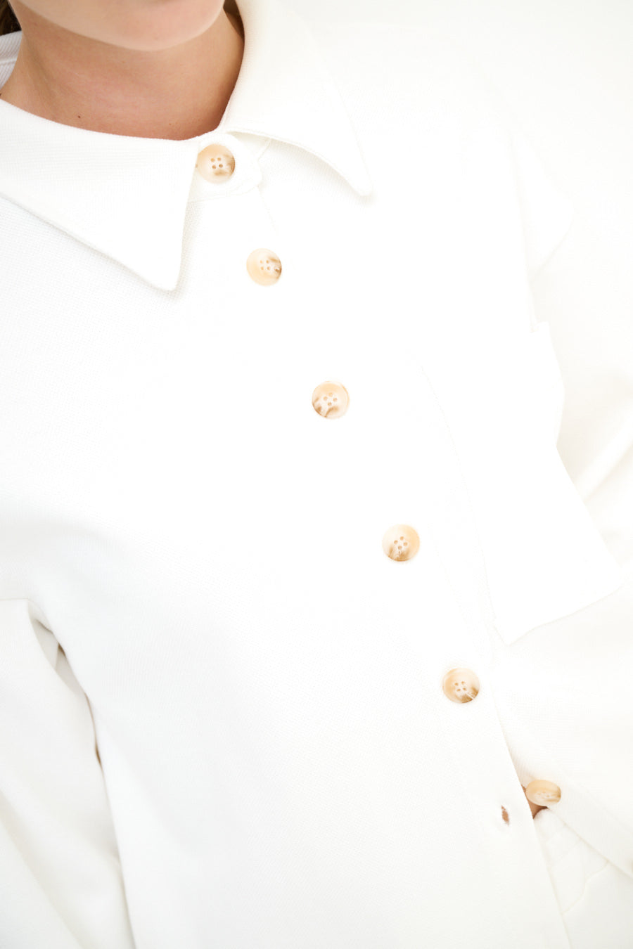 - Pitkät hihat, joissa on nappi hihansuut monipuoliseen muotoiluun
