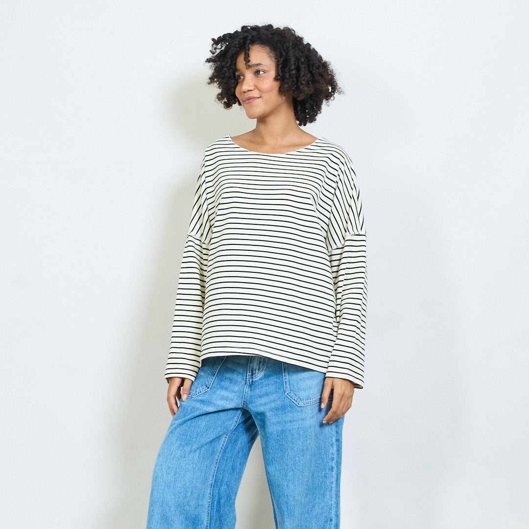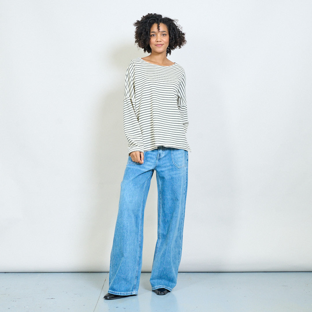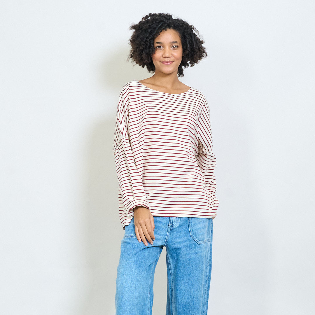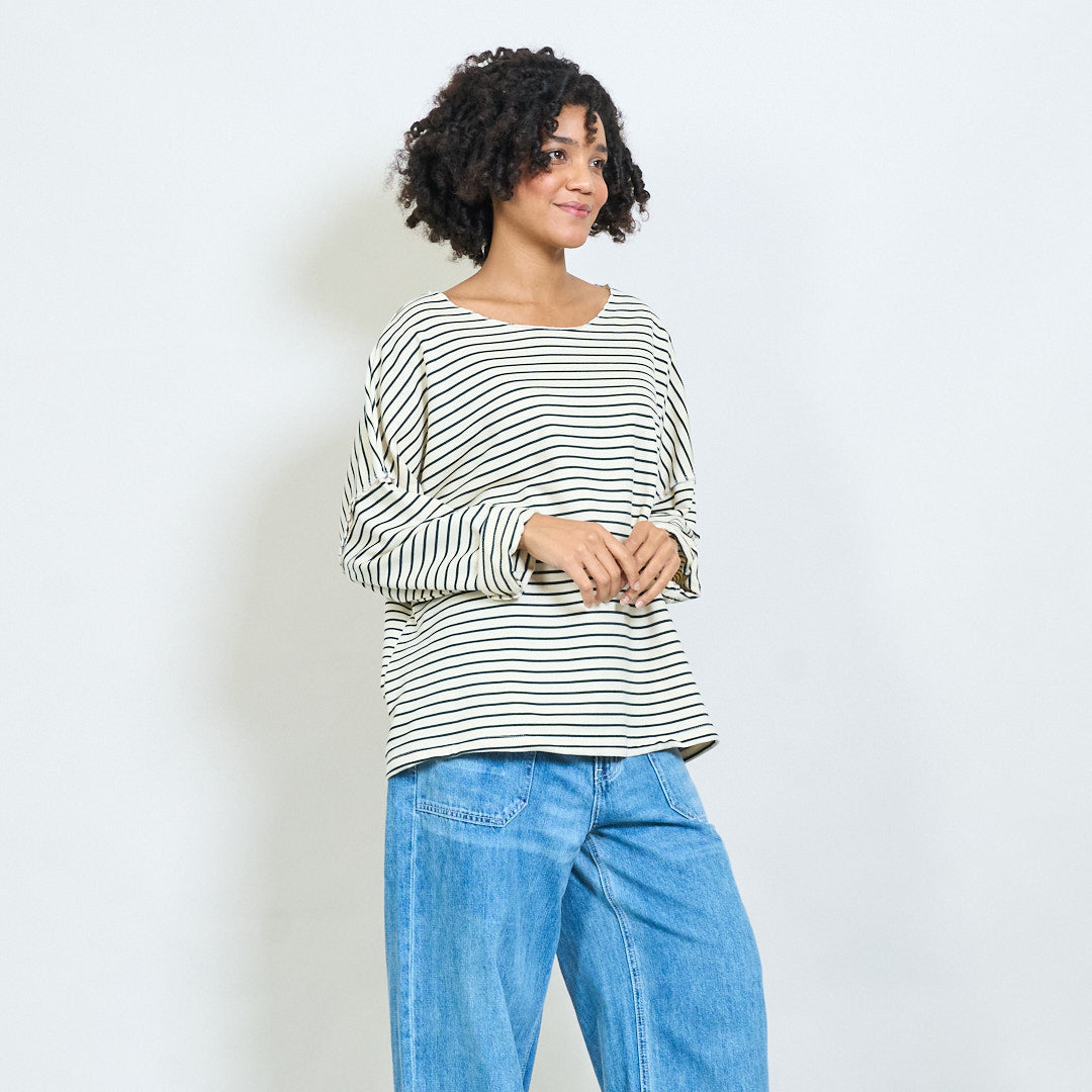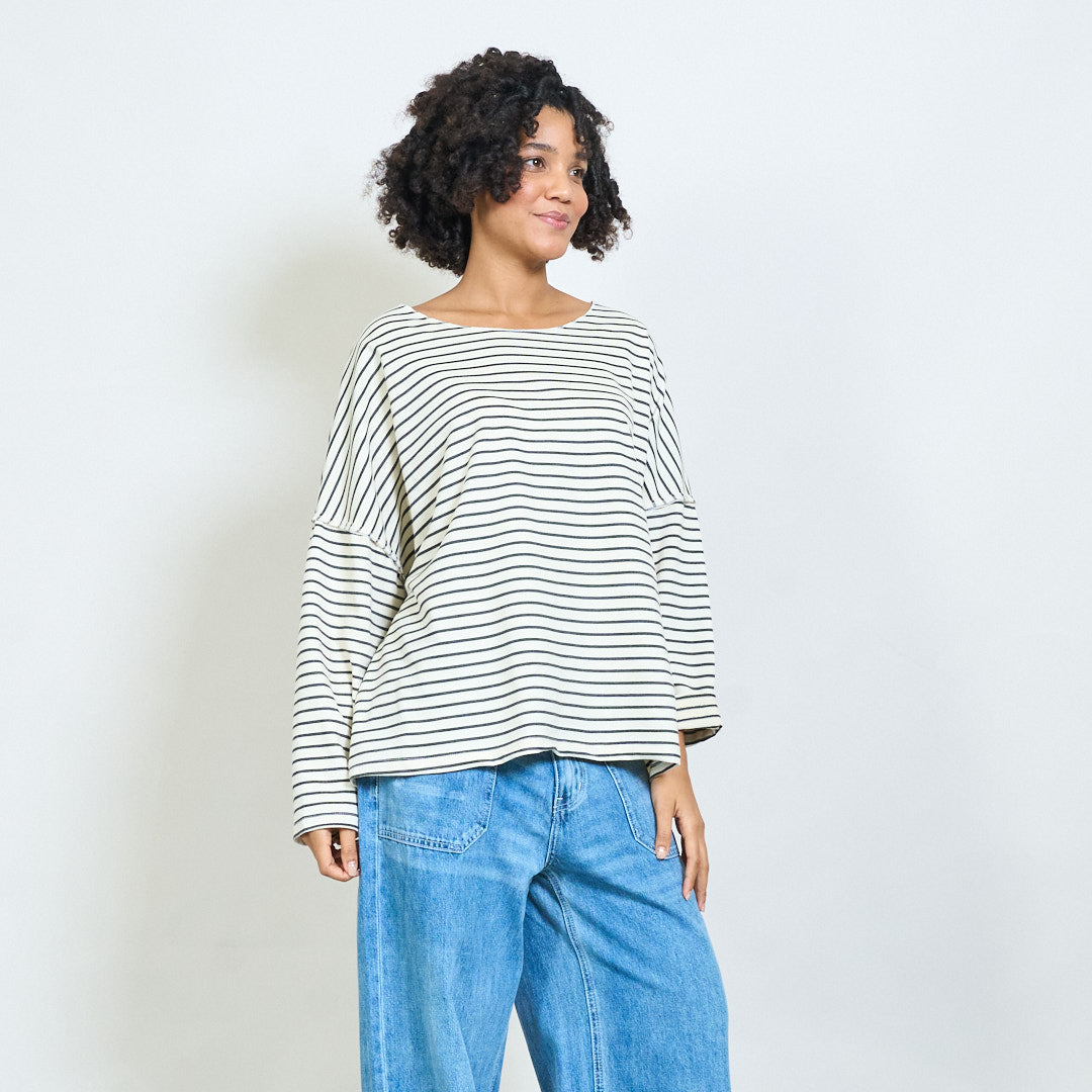 Raidallinen V-kaula Rentollinen istuva pusero tukkumyynti