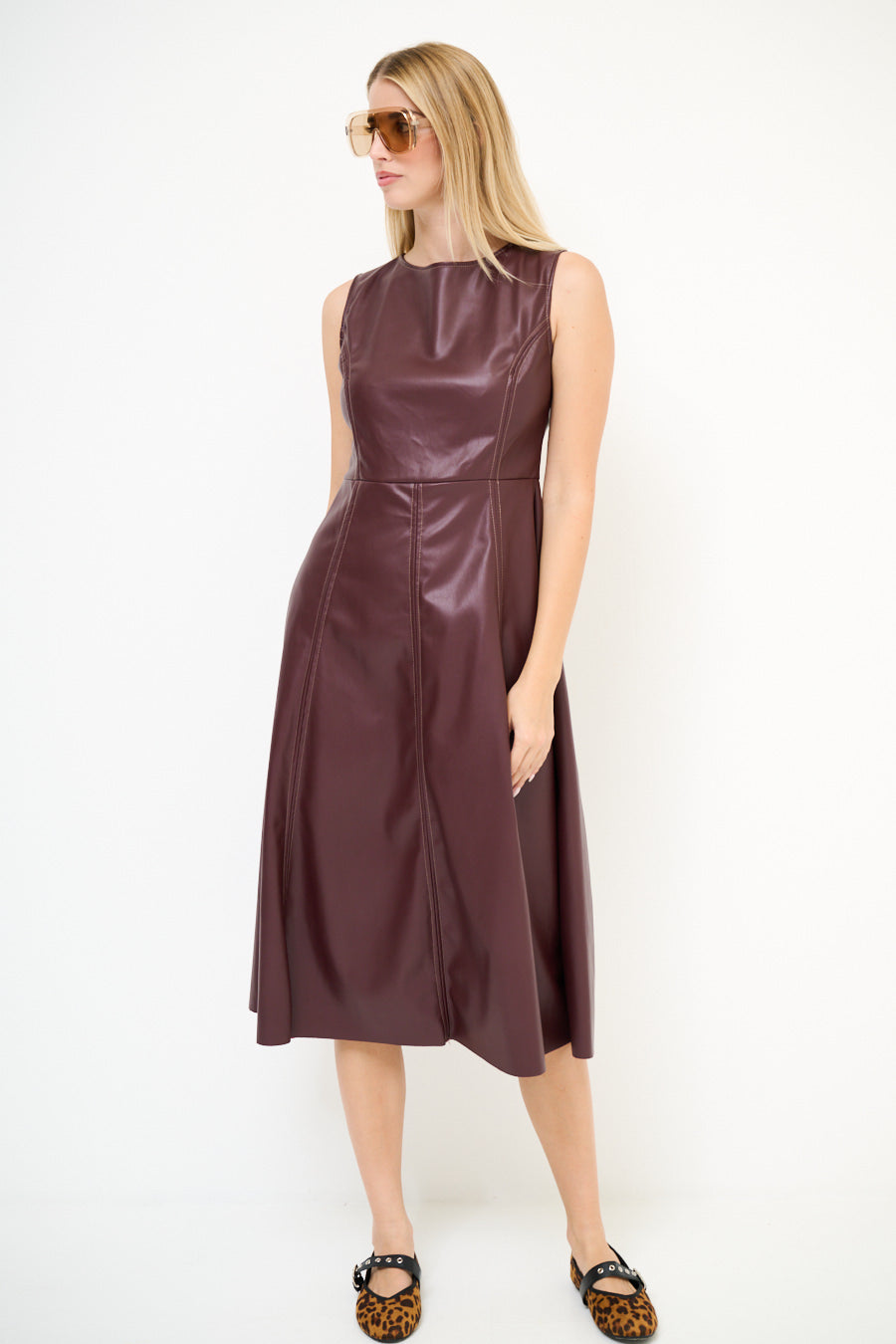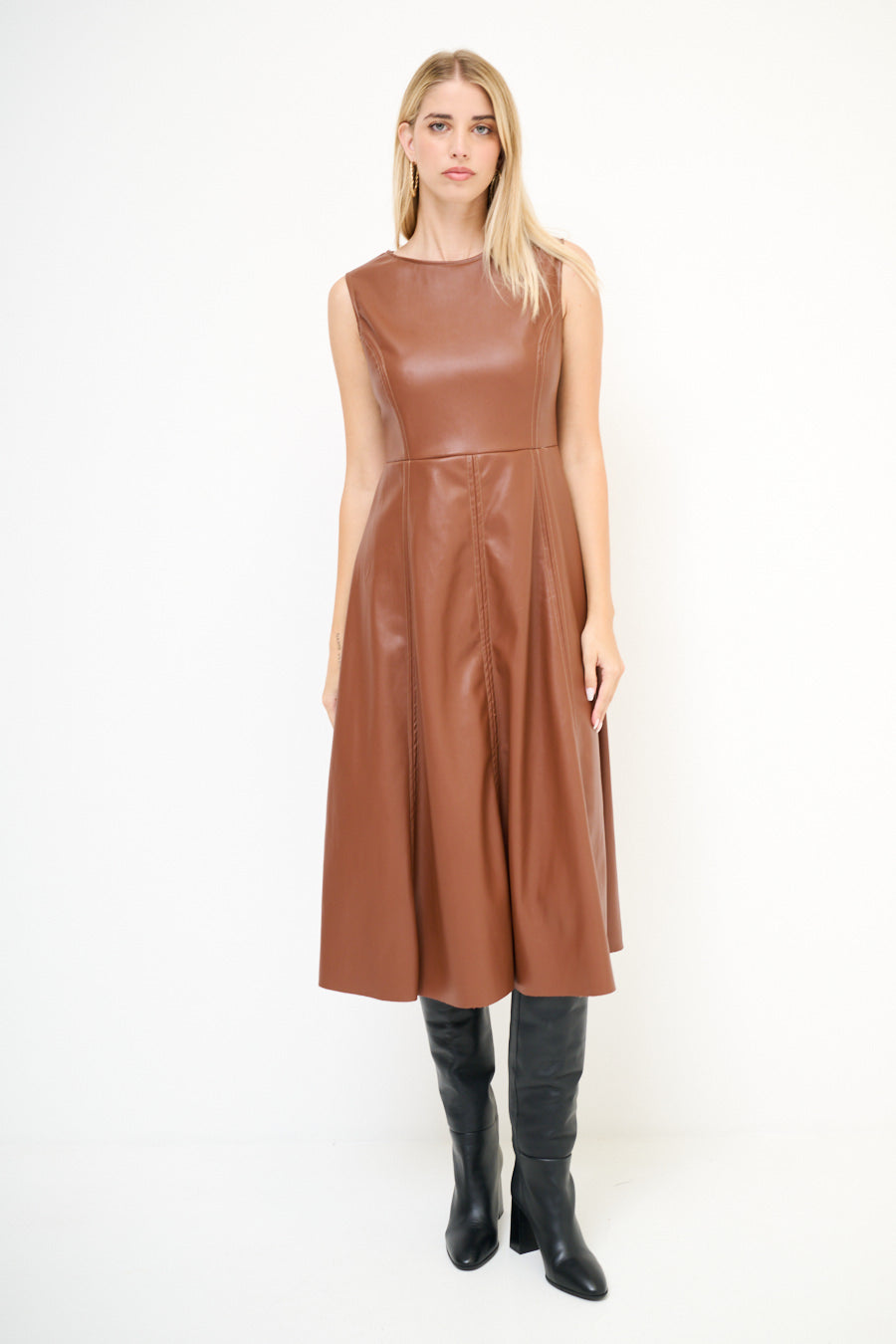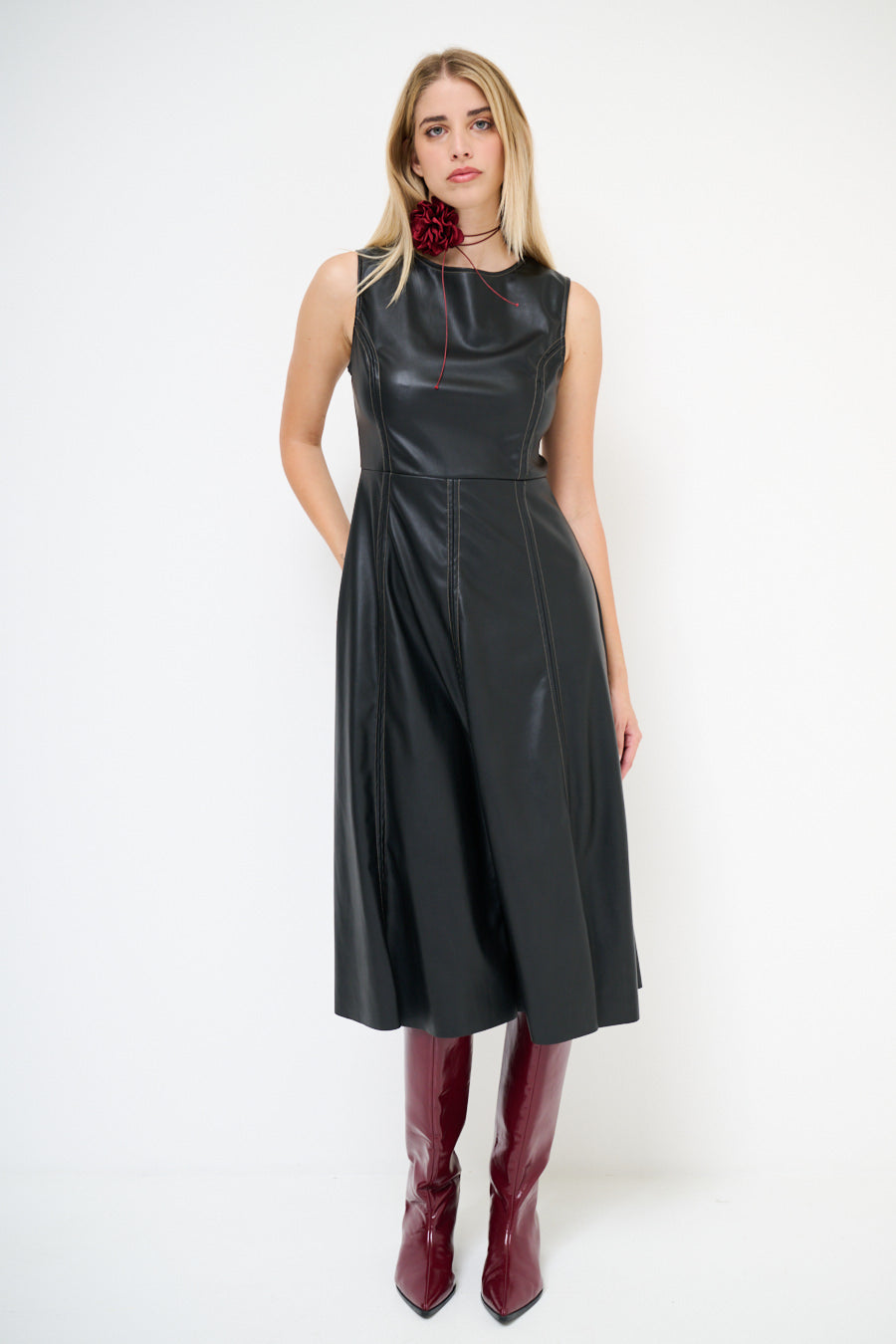 Hihaton paneelin sauman keinonahkainen midi -mekko tukkumyynti