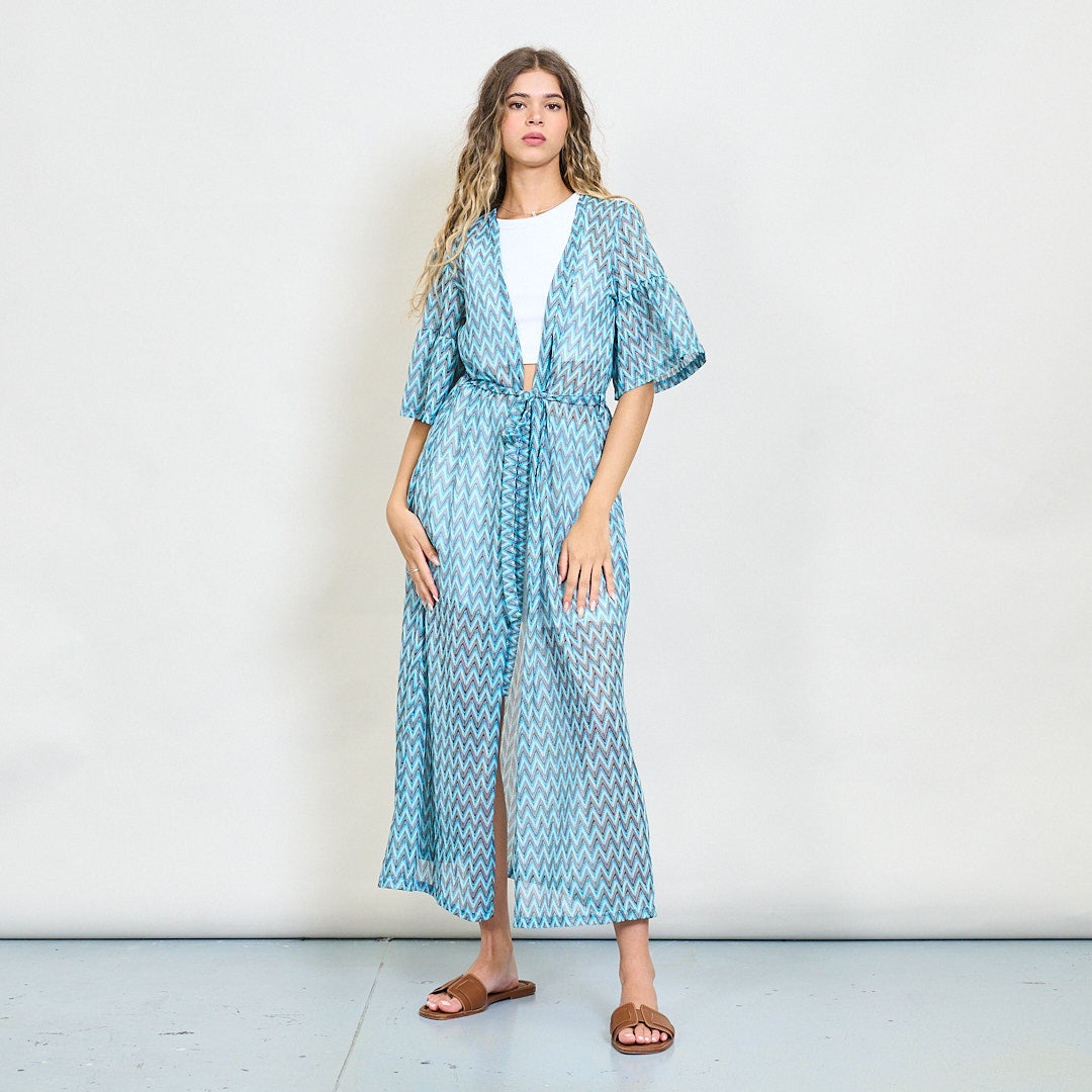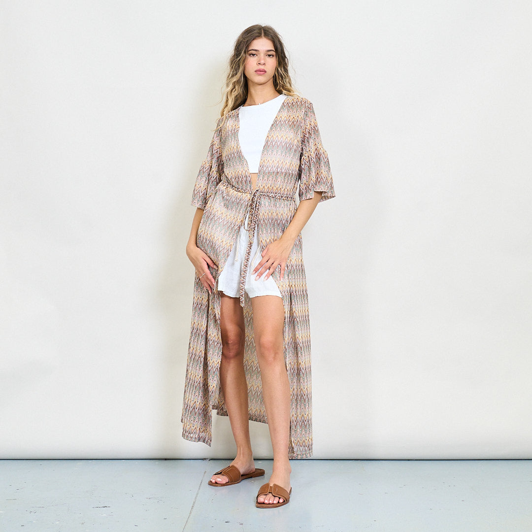 Zigzag painettu kääre neuletakki röyhelöhihoilla tukkumyynti