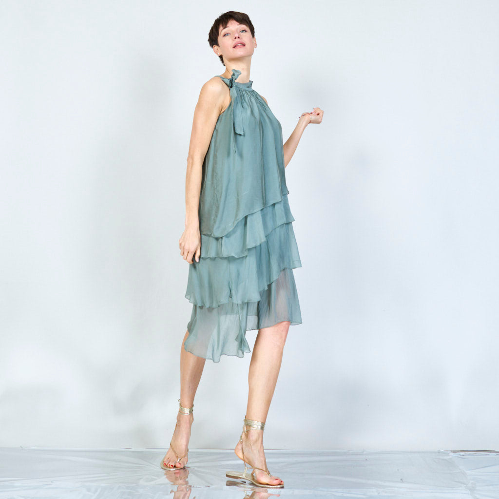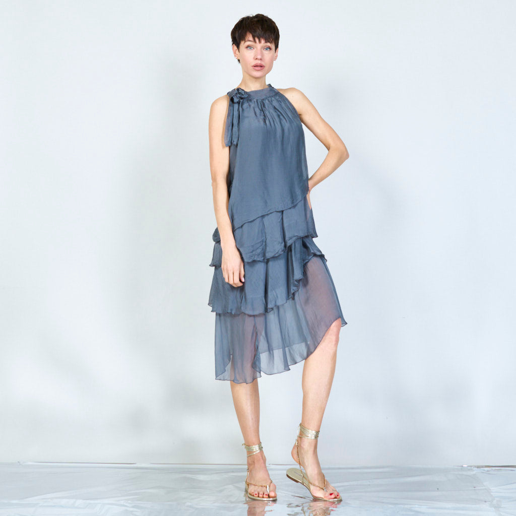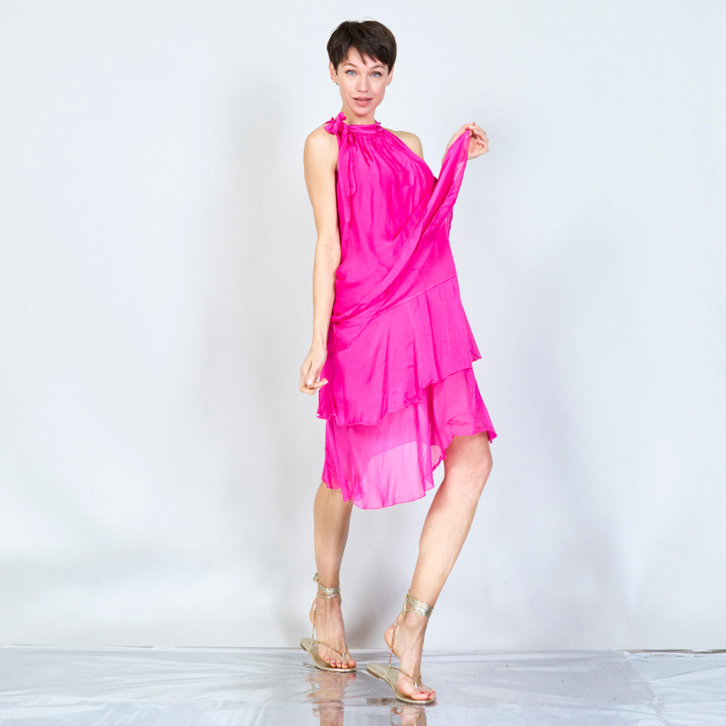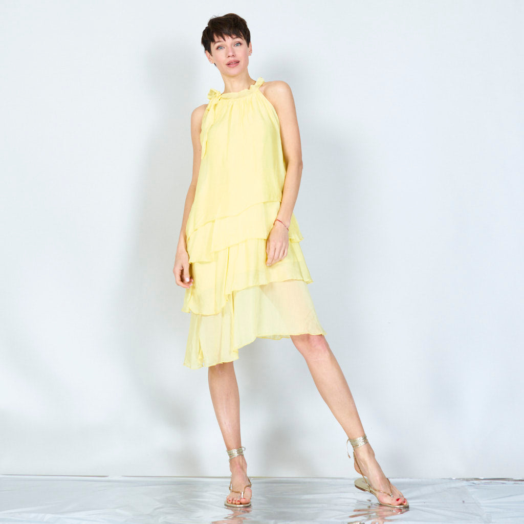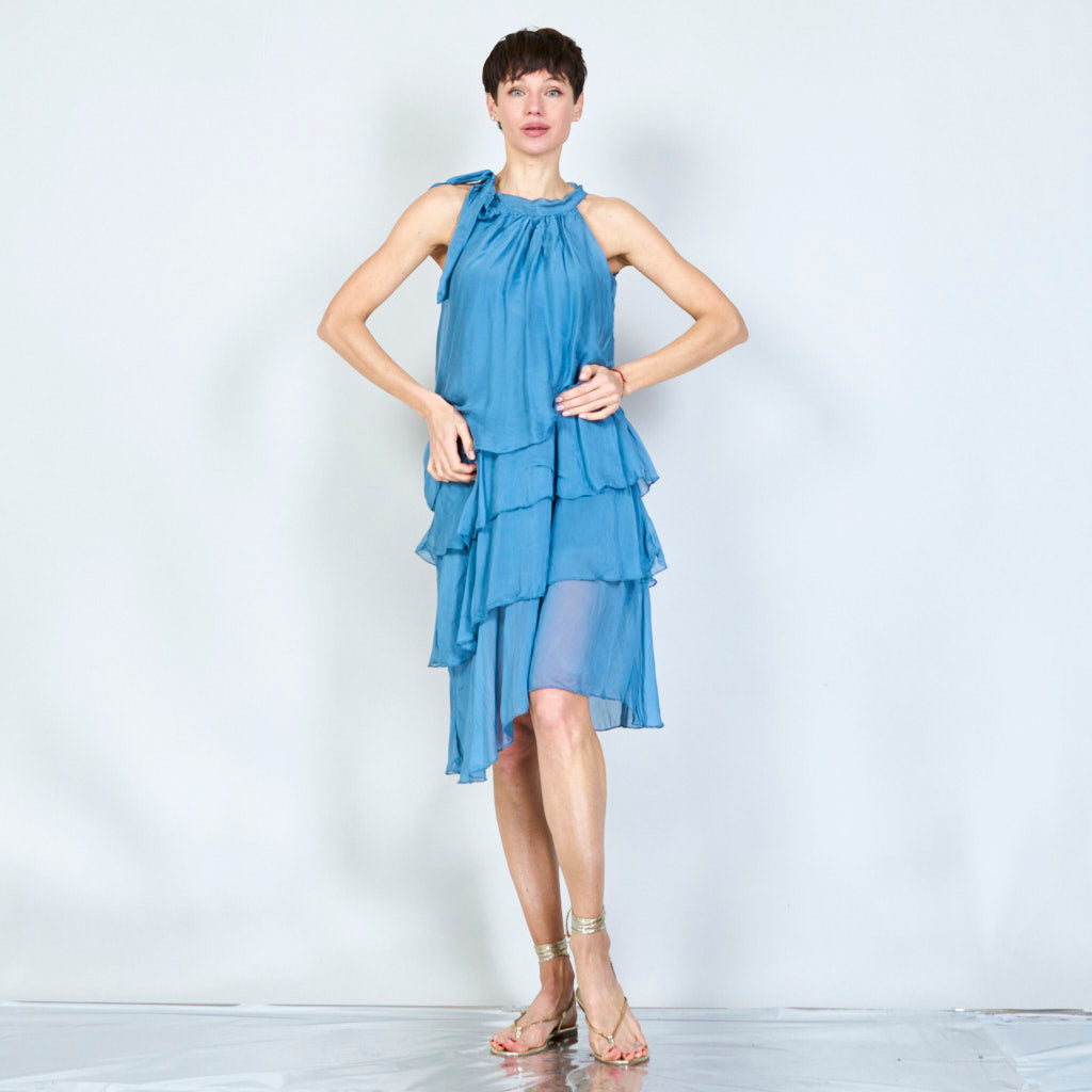 Halterneck -silkki sifonki aaltoisilla röyhelöillä tukkumyynti