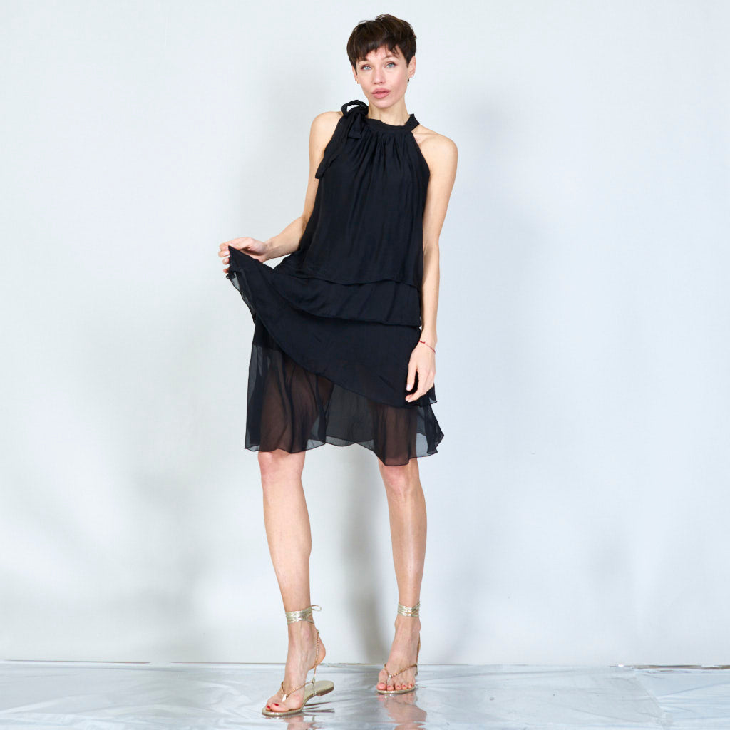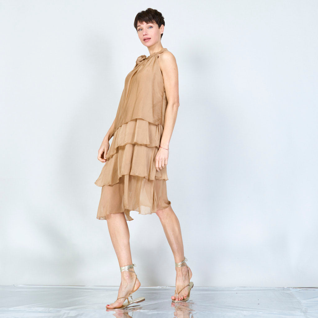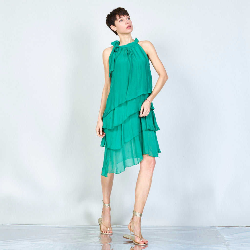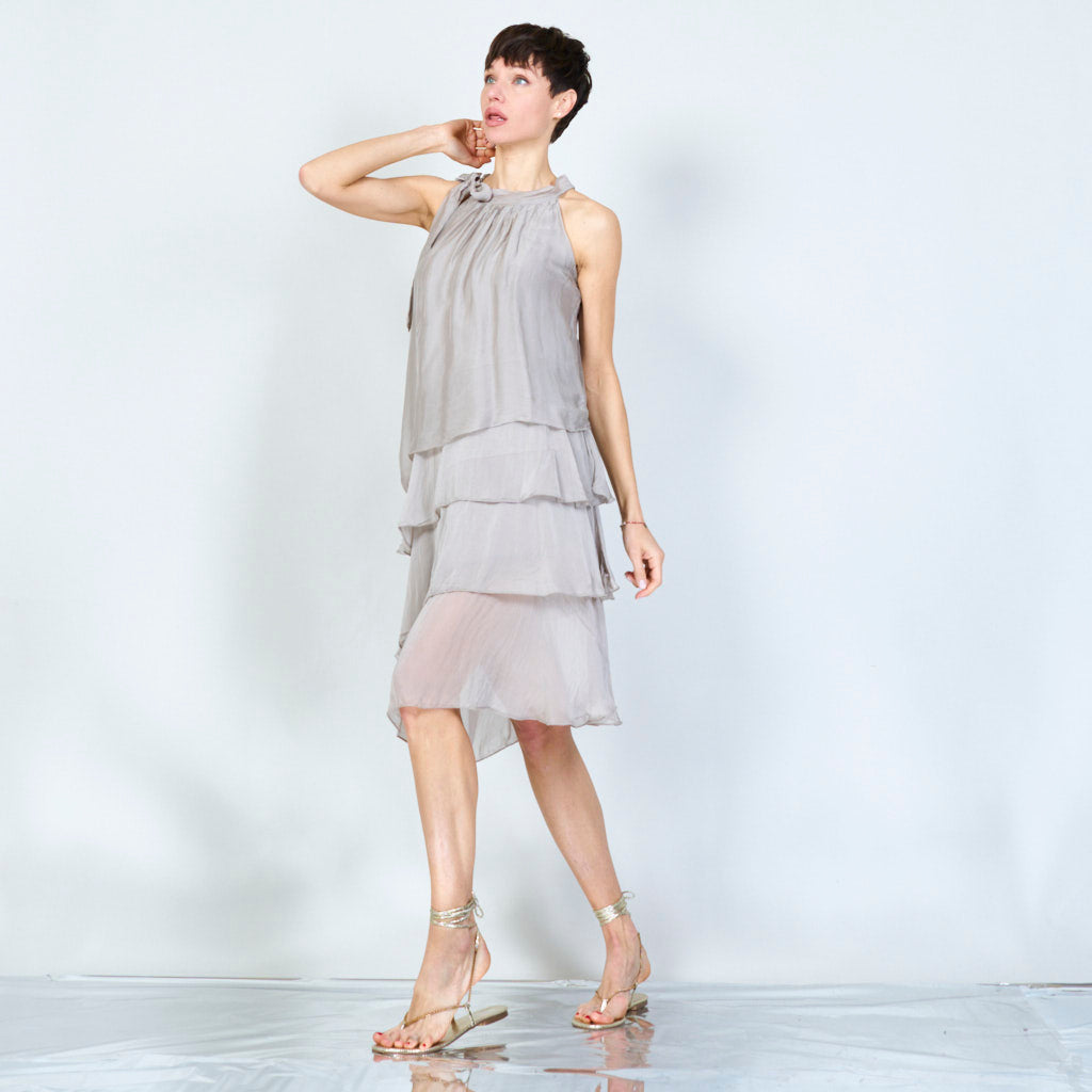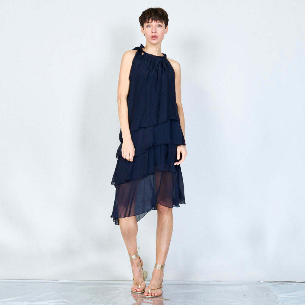 Halterneck -silkki sifonki aaltoisilla röyhelöillä tukkumyynti