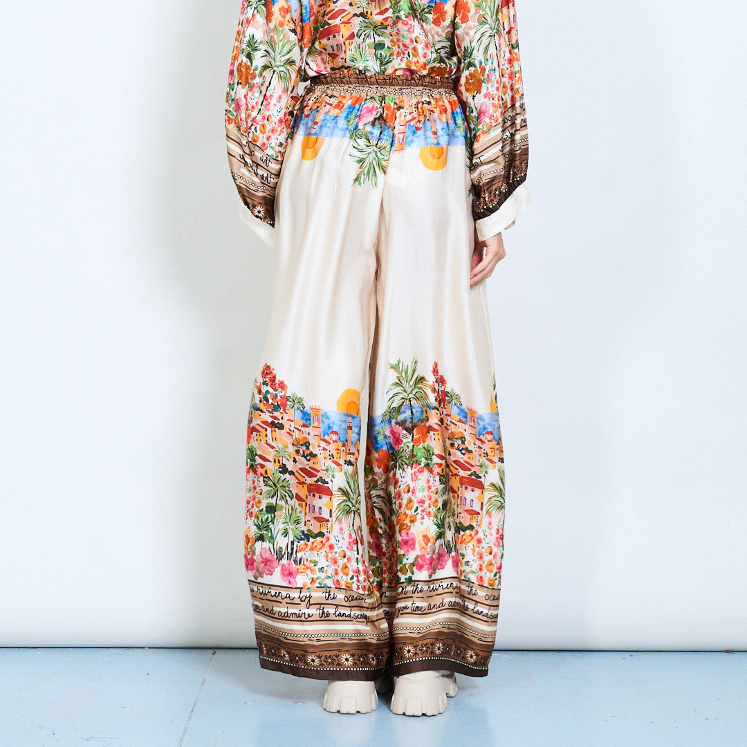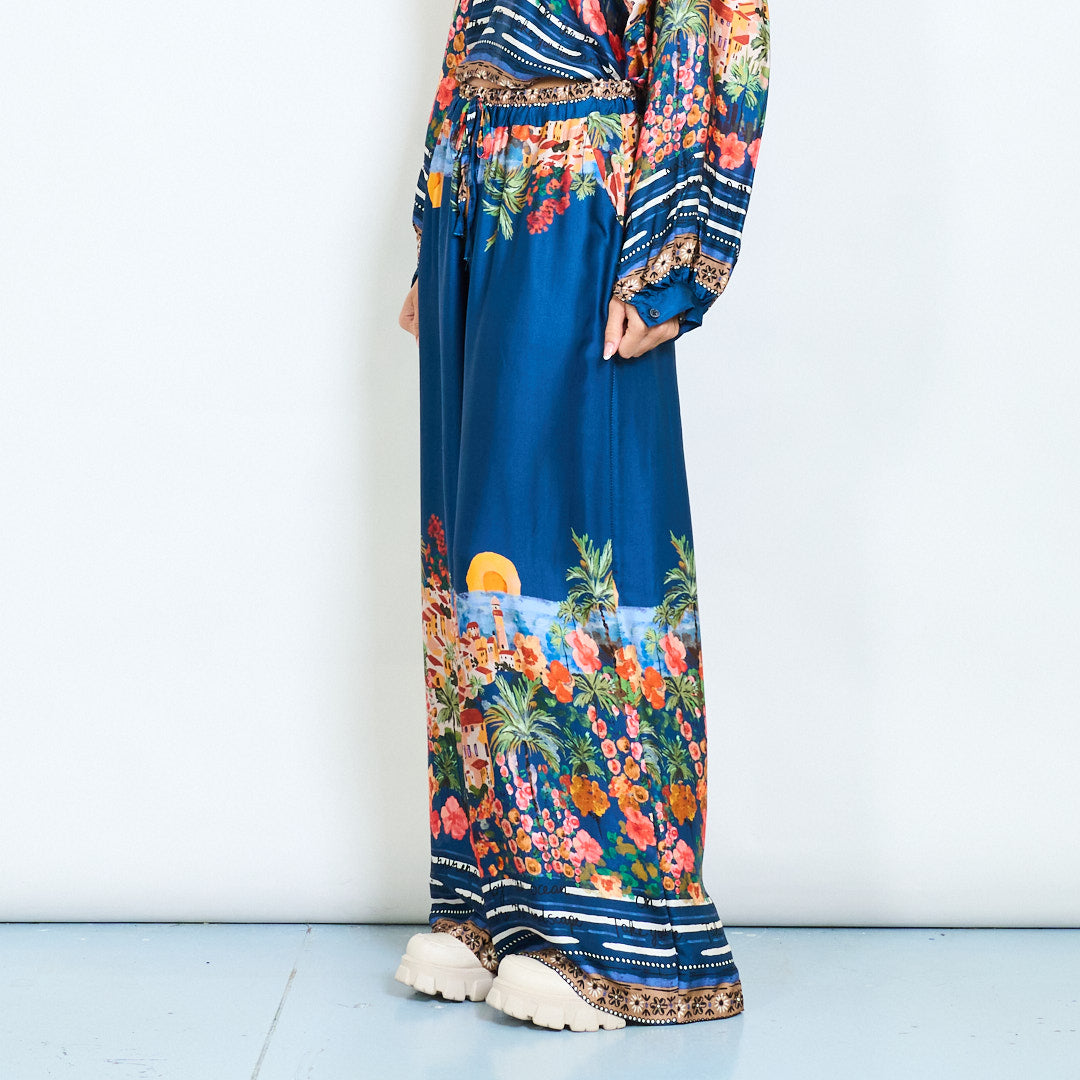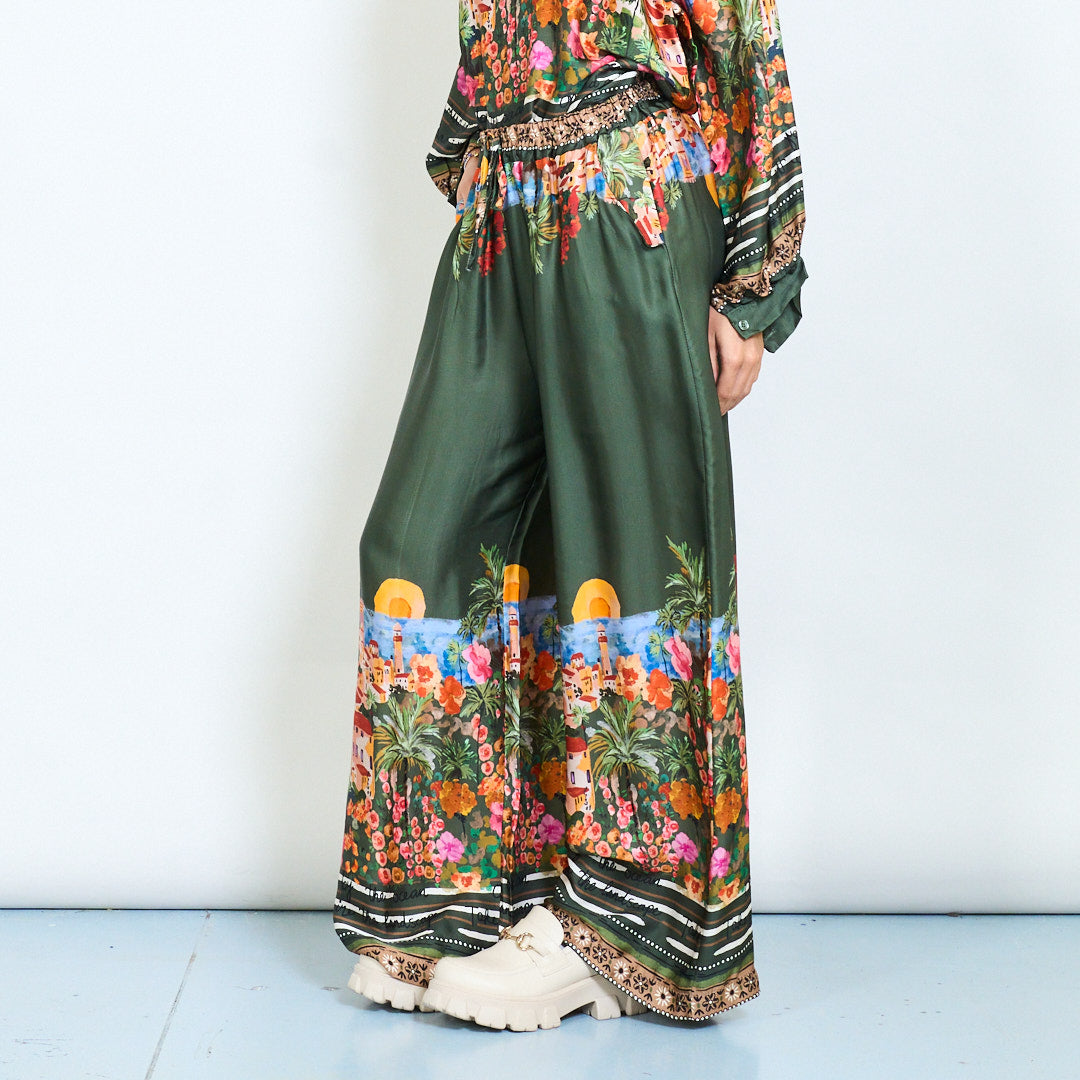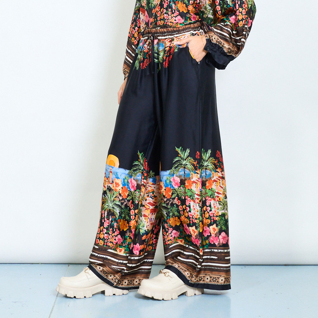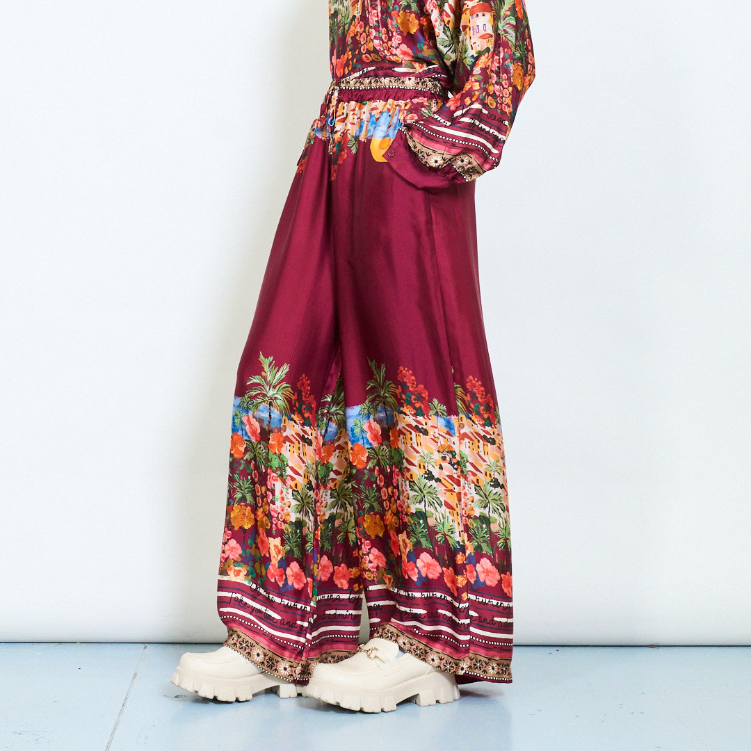 Luonnonkaunis kukka-reuna-leveän jalan housut tukkumyynti