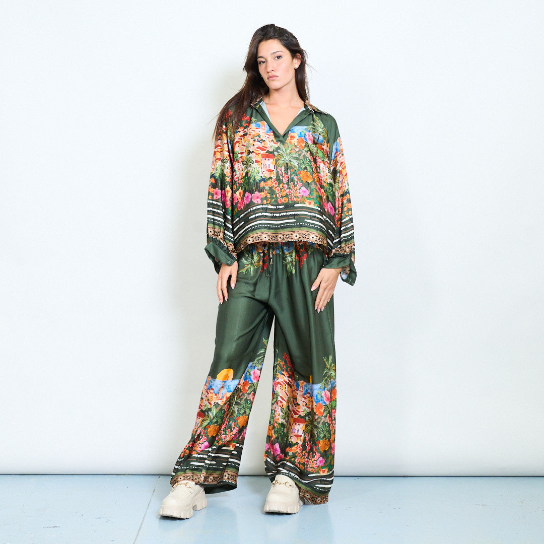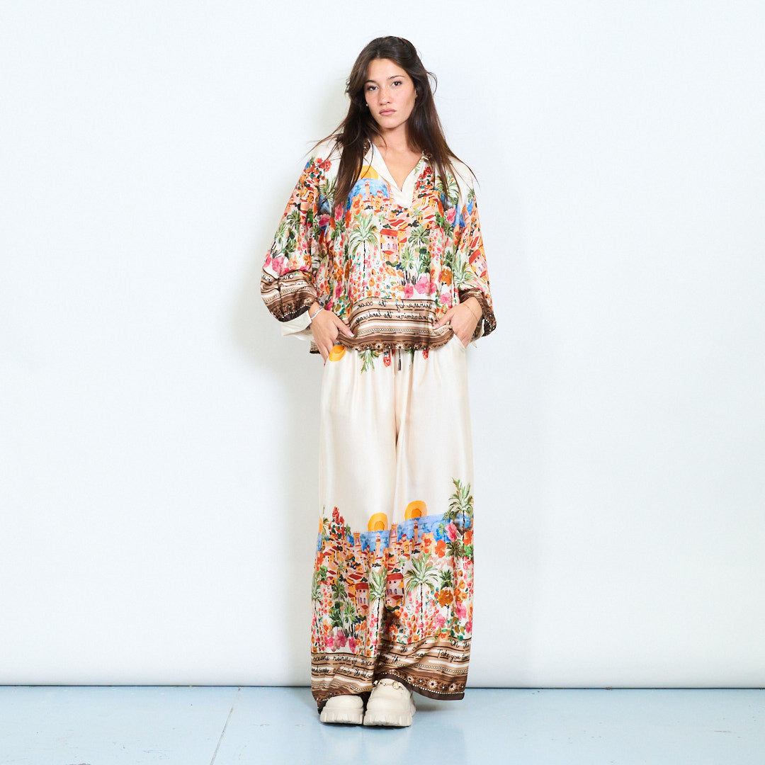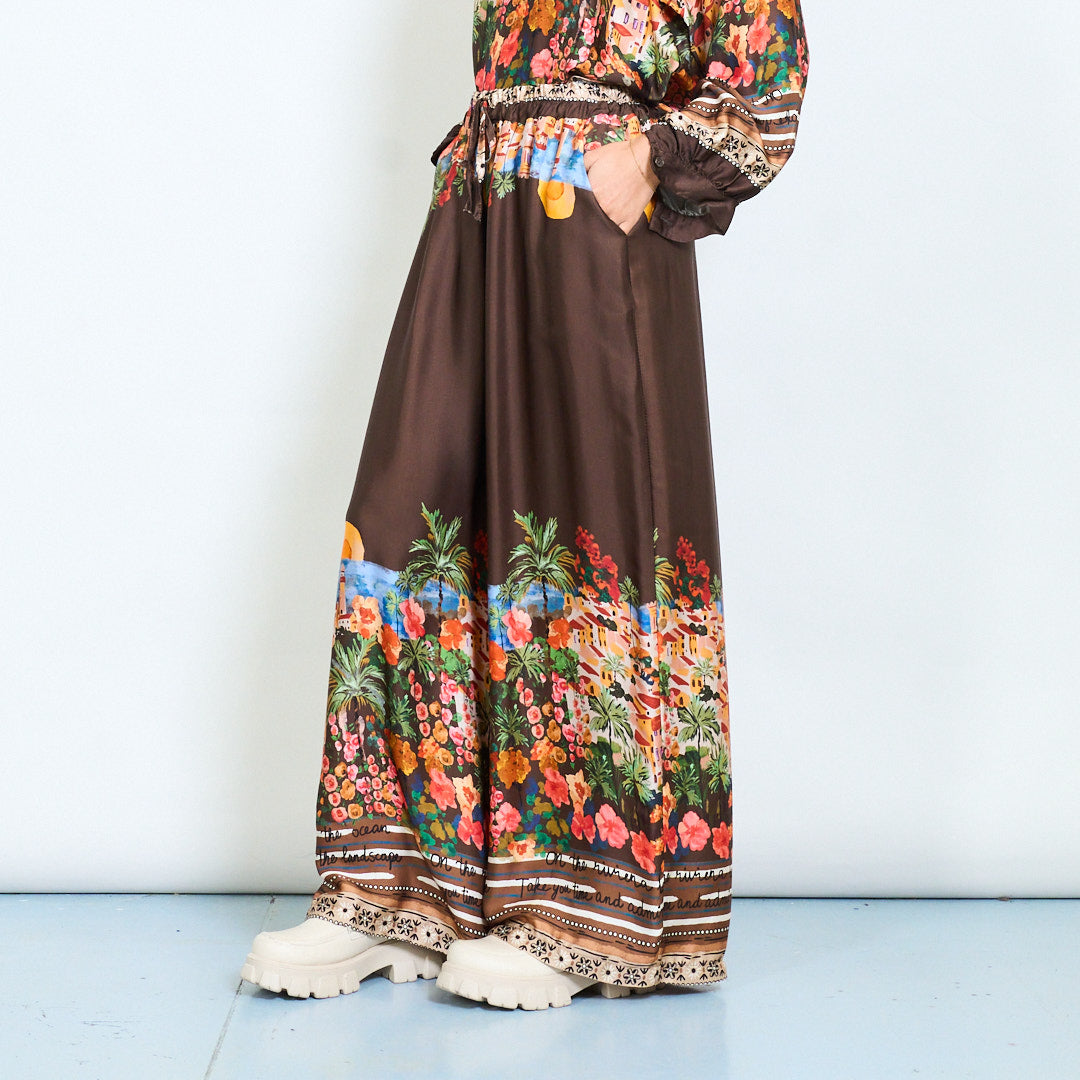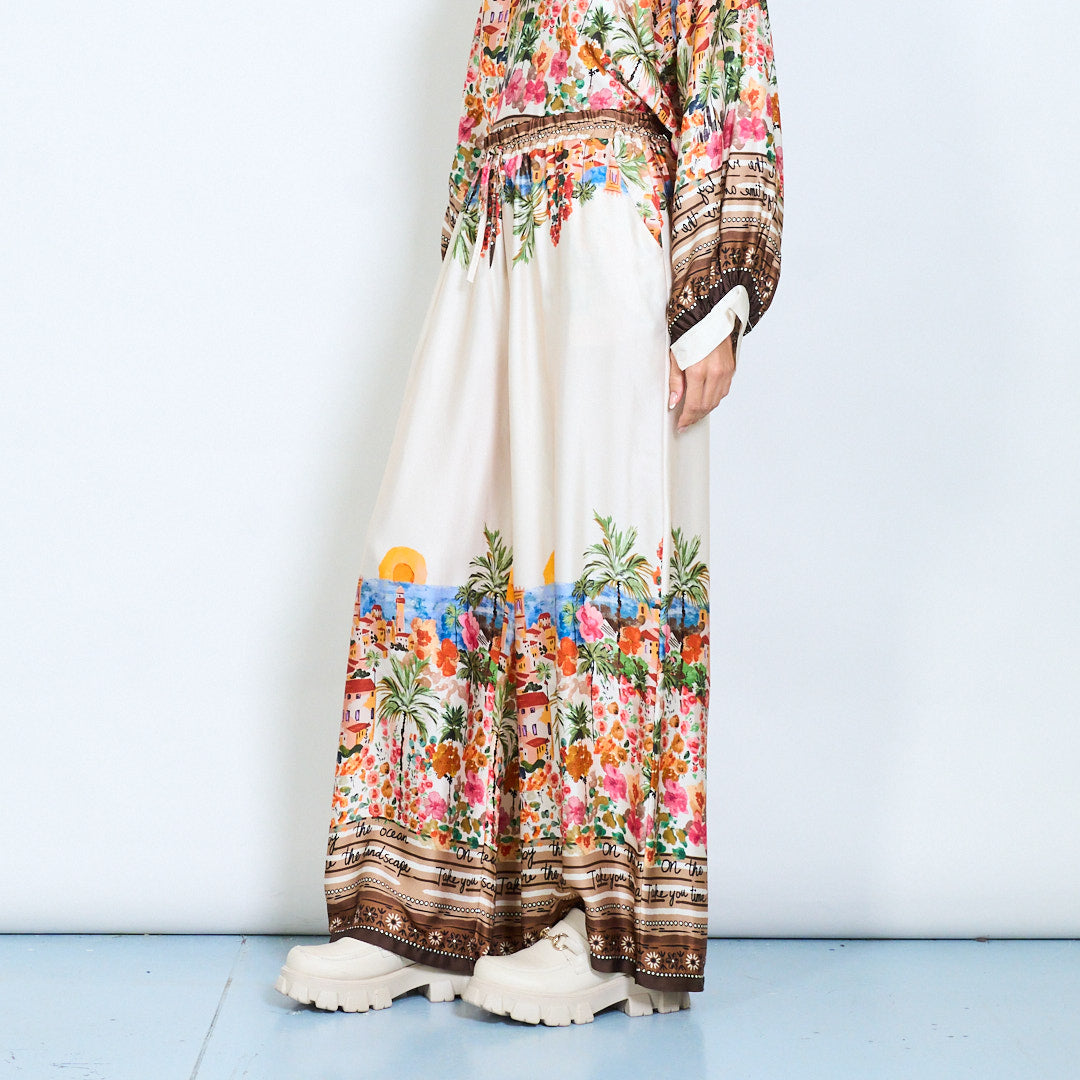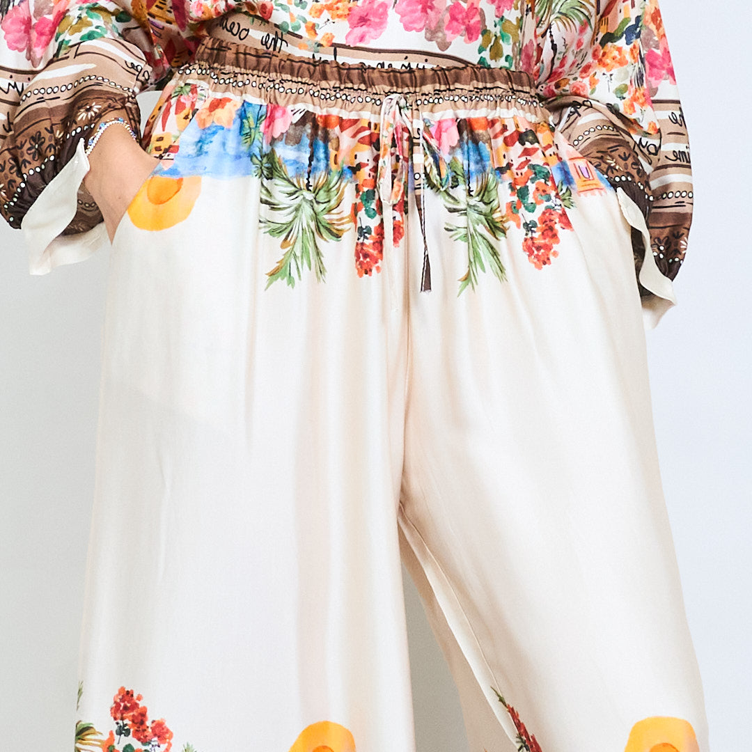 Luonnonkaunis kukka-reuna-leveän jalan housut tukkumyynti