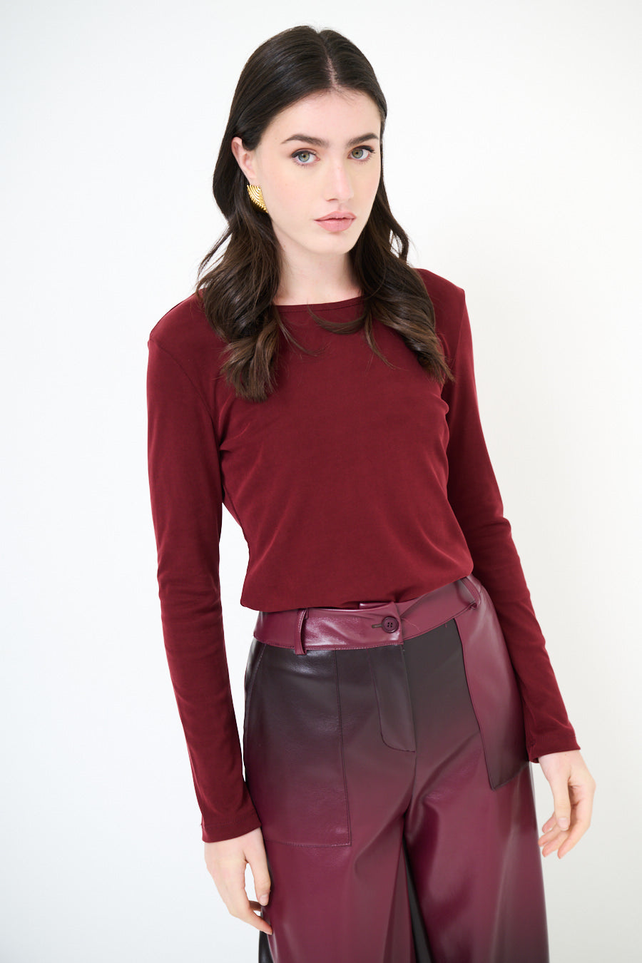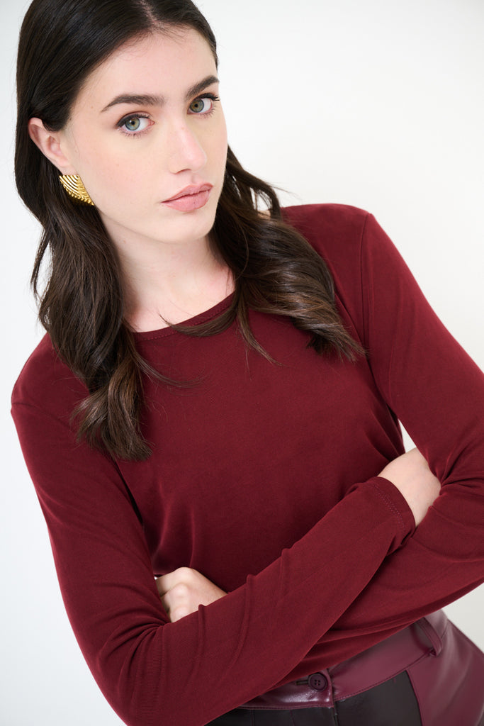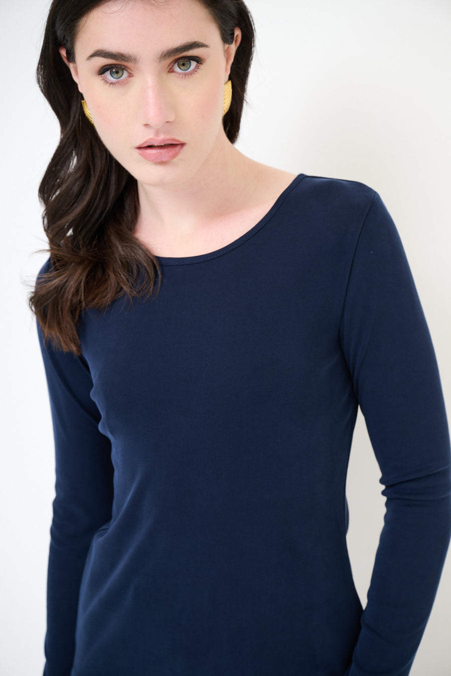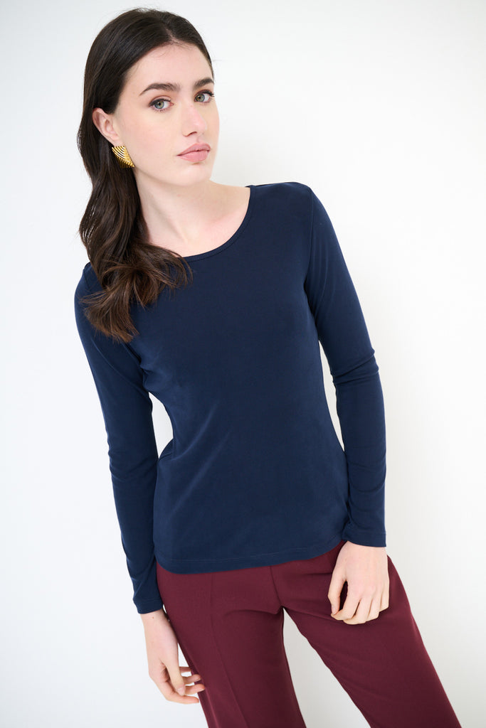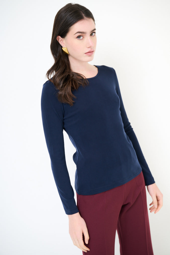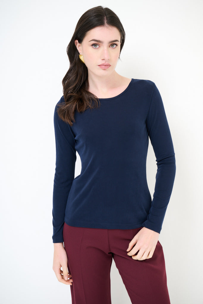 Minimalistinen pyöreä kaula-aukkoinen pitkähihainen toppi tukkumyynti