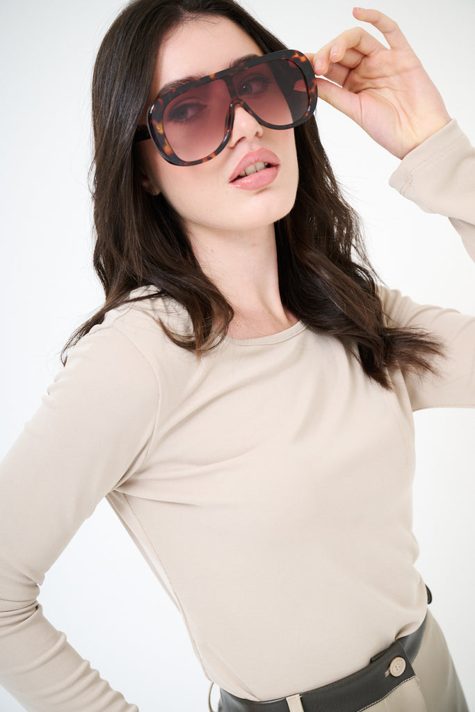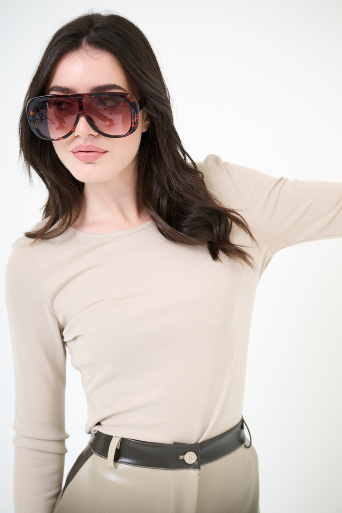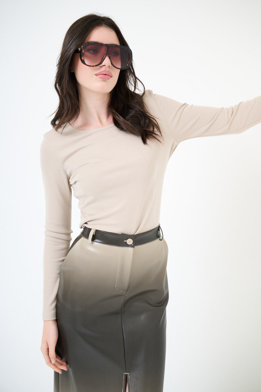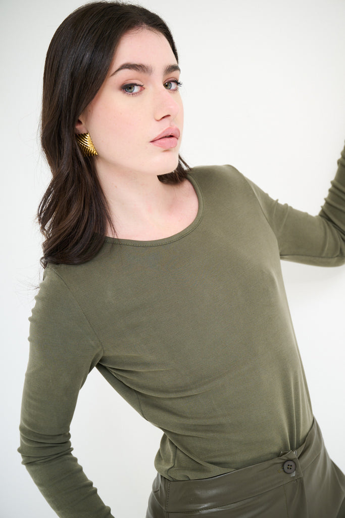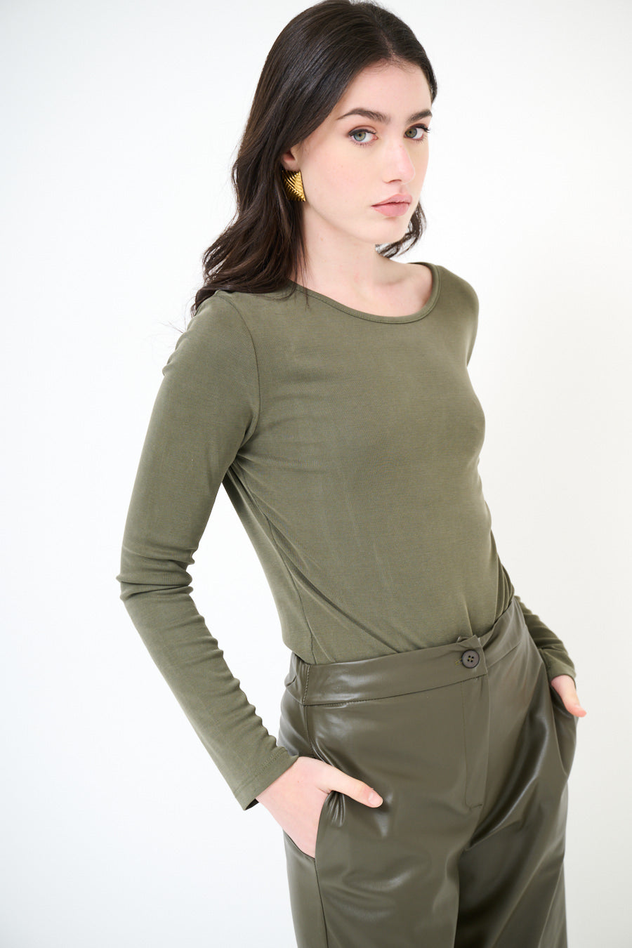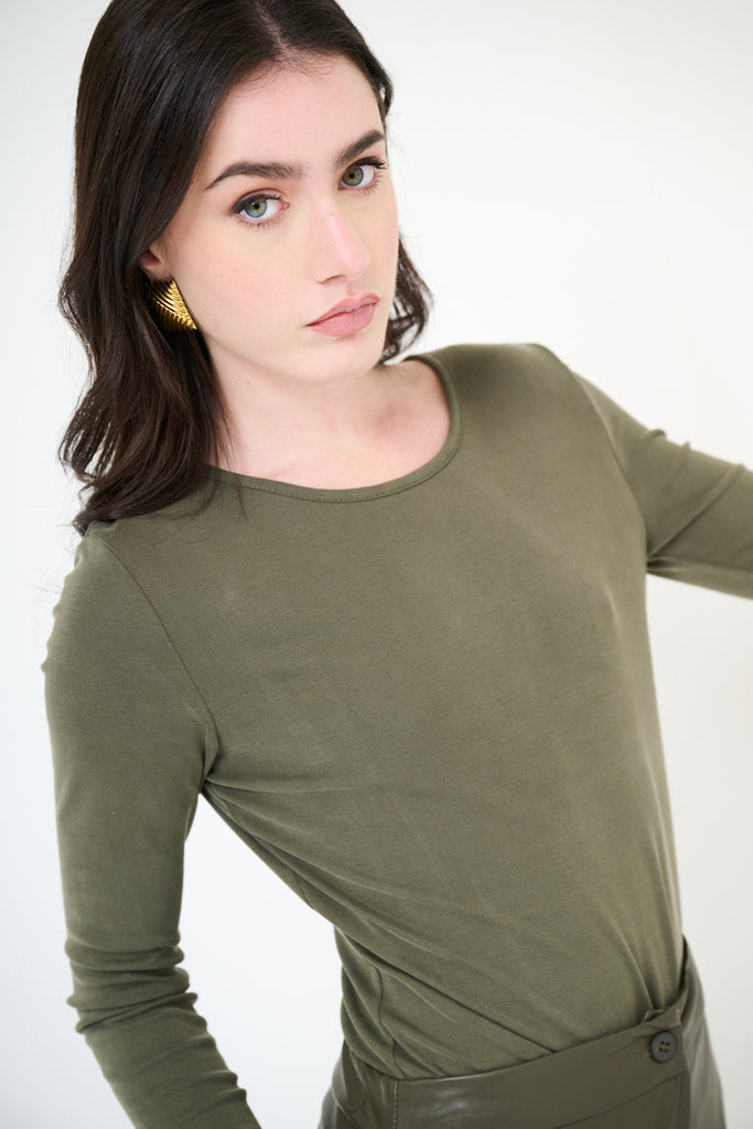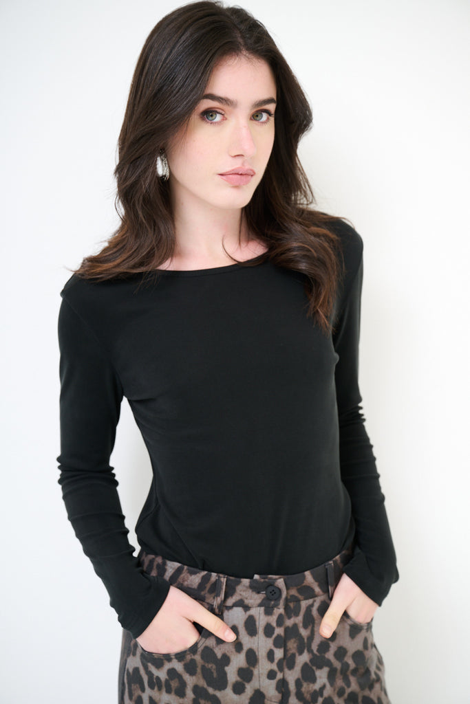 Minimalistinen pyöreä kaula-aukkoinen pitkähihainen toppi tukkumyynti