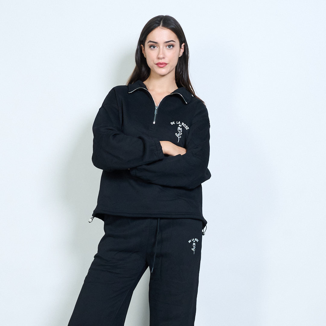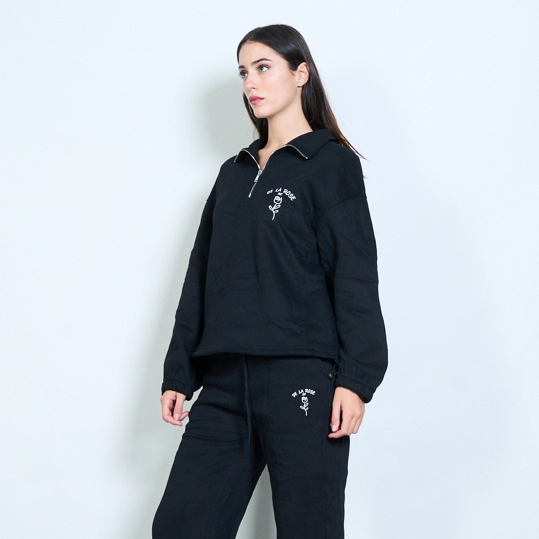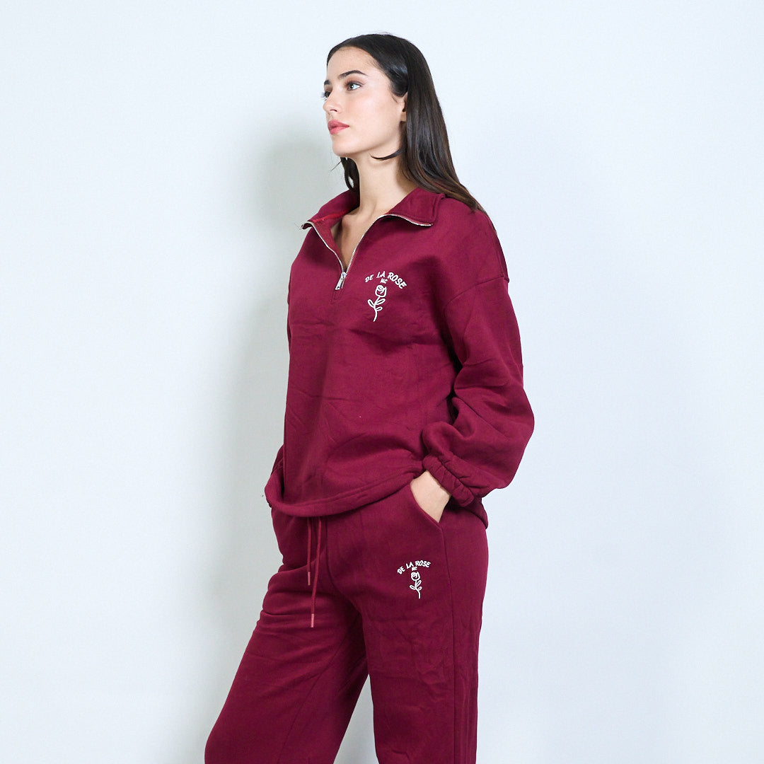 Puolivetoketjulla brodeerattu rento collegepaita ja housutsetti tukkumyynti