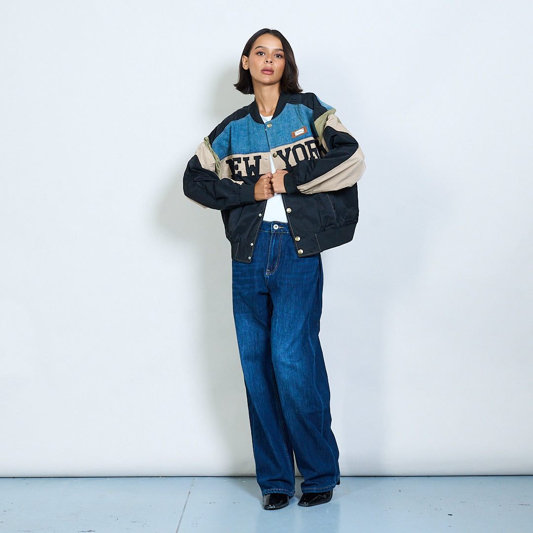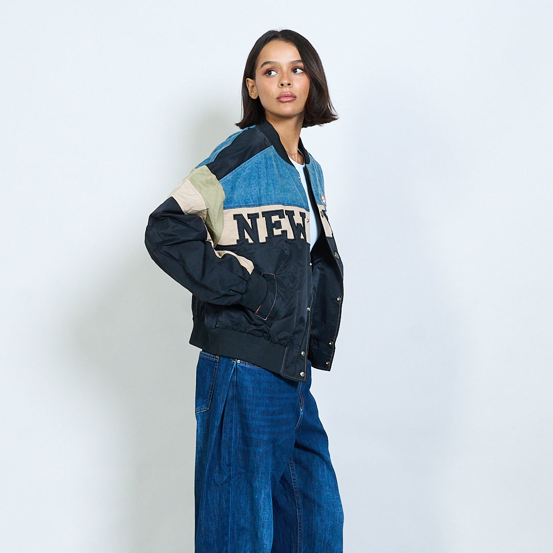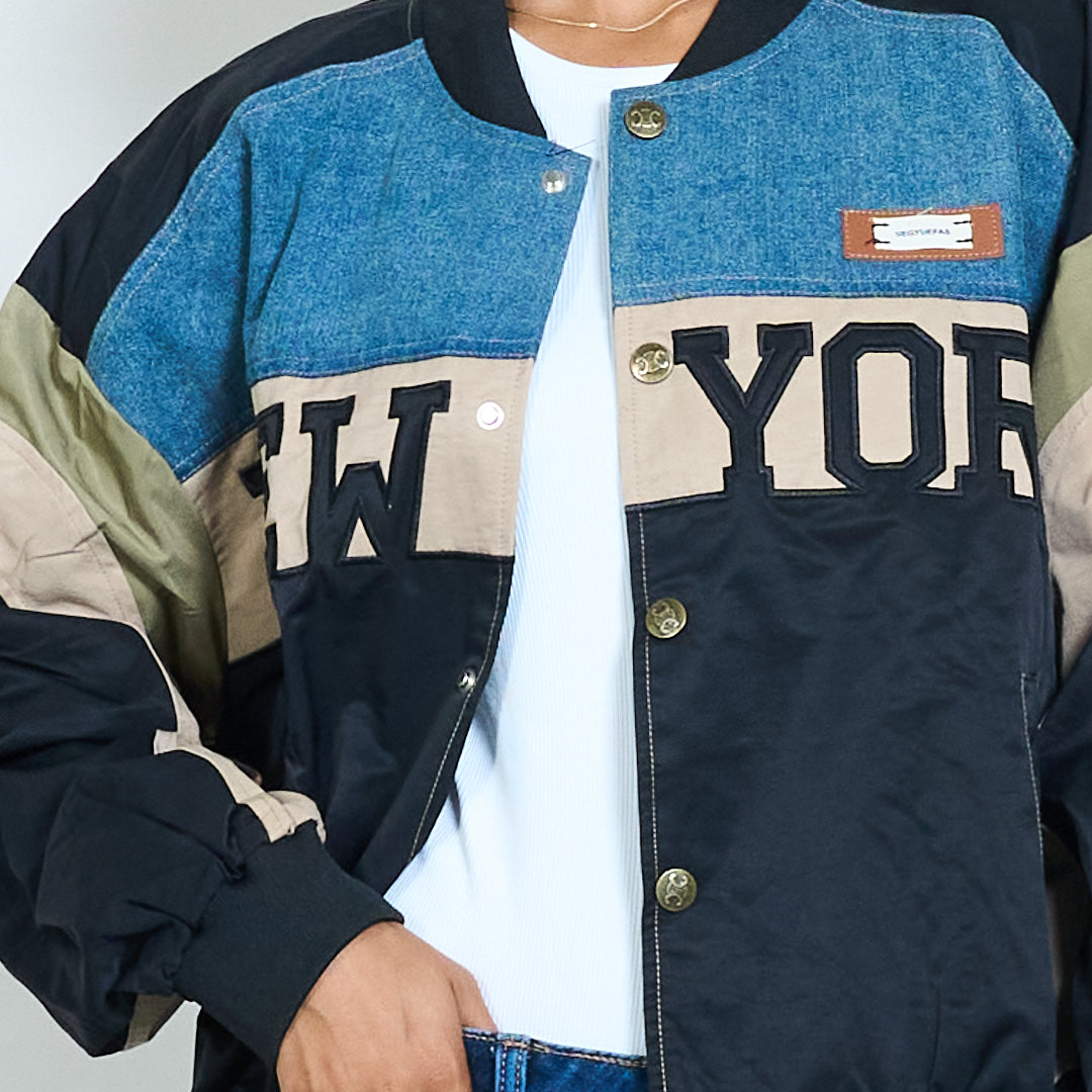 Denim Patchwork "New York" Varsity -takki tukkumyynti