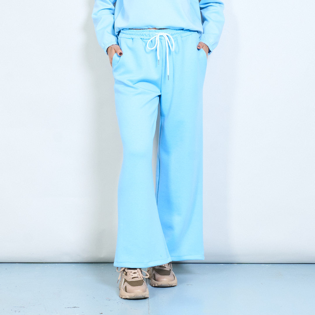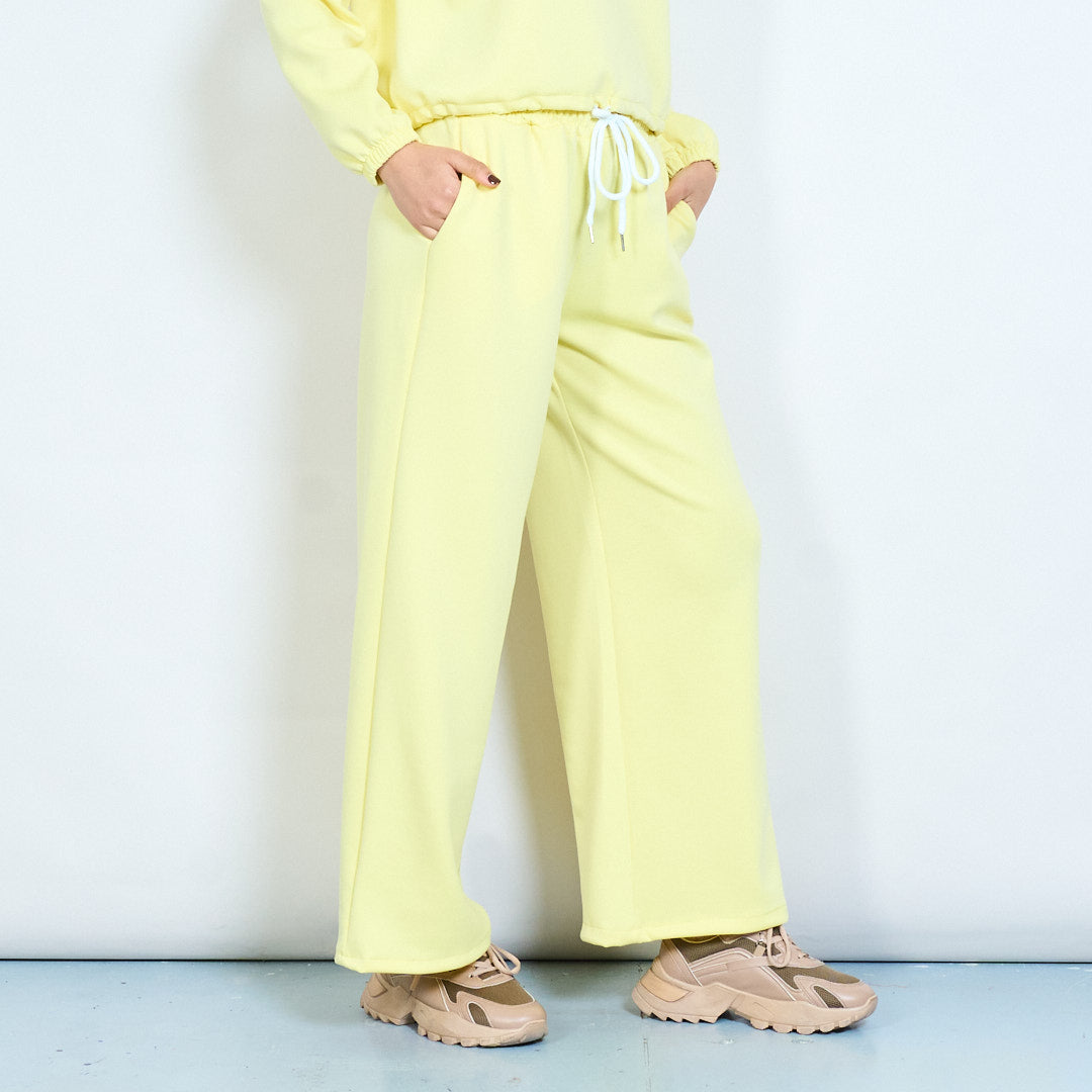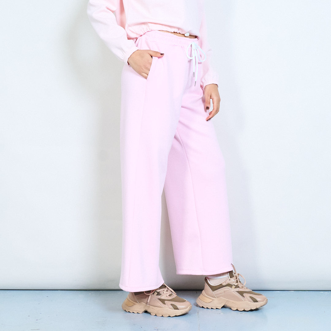 Kiinteä collegepaita ja leveälahkeiset kiristysnyörilliset housut-loungesetti tukkumyynti