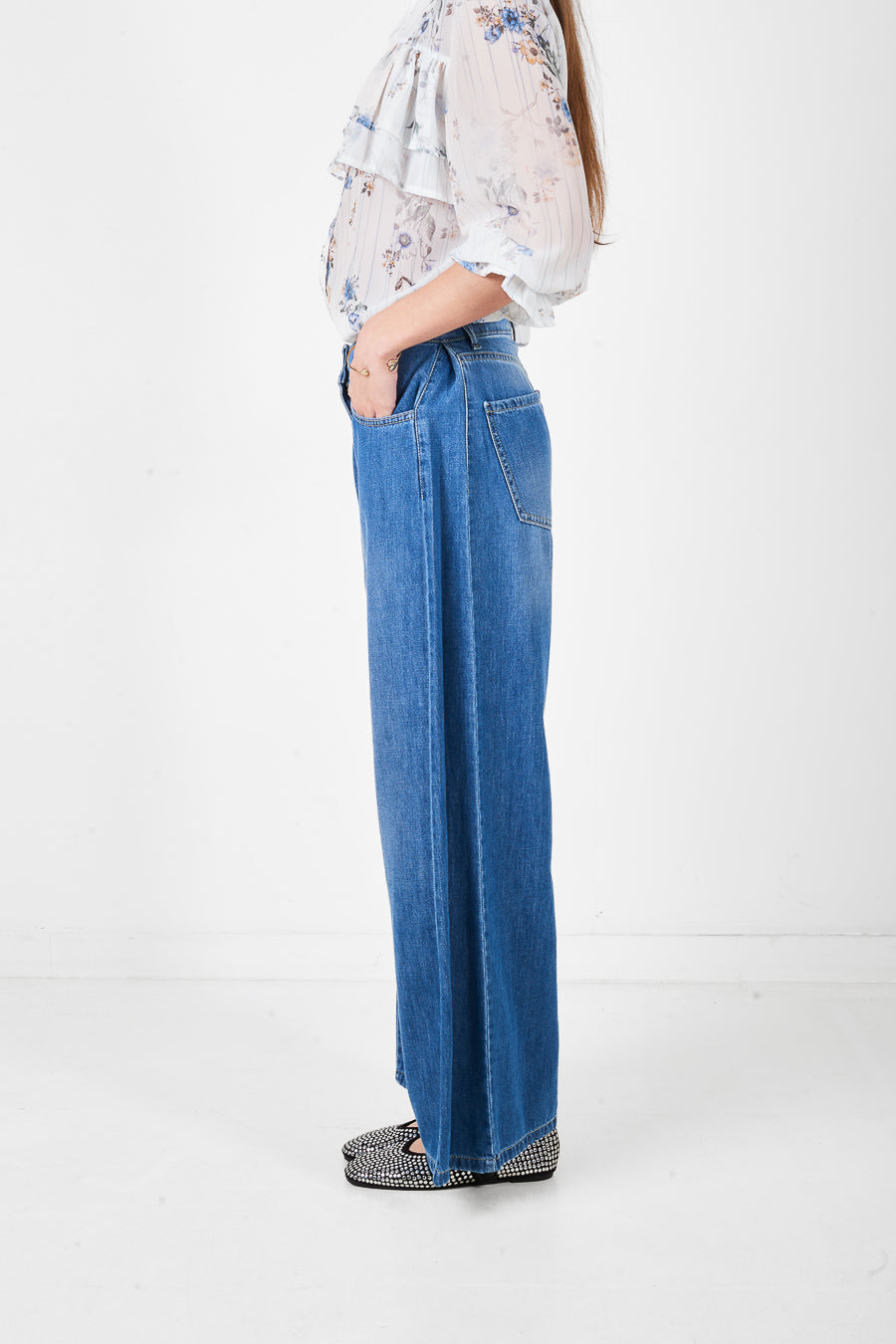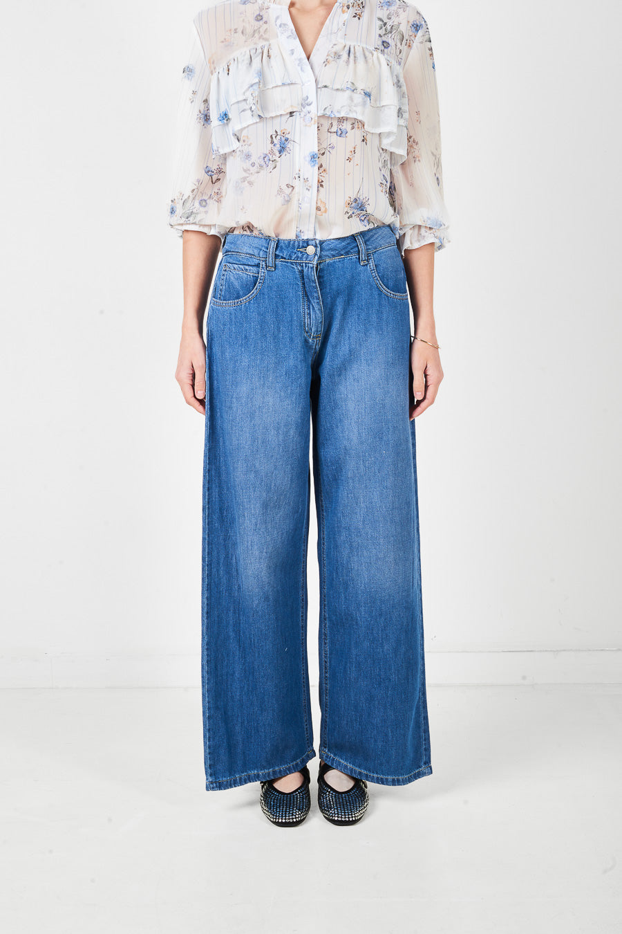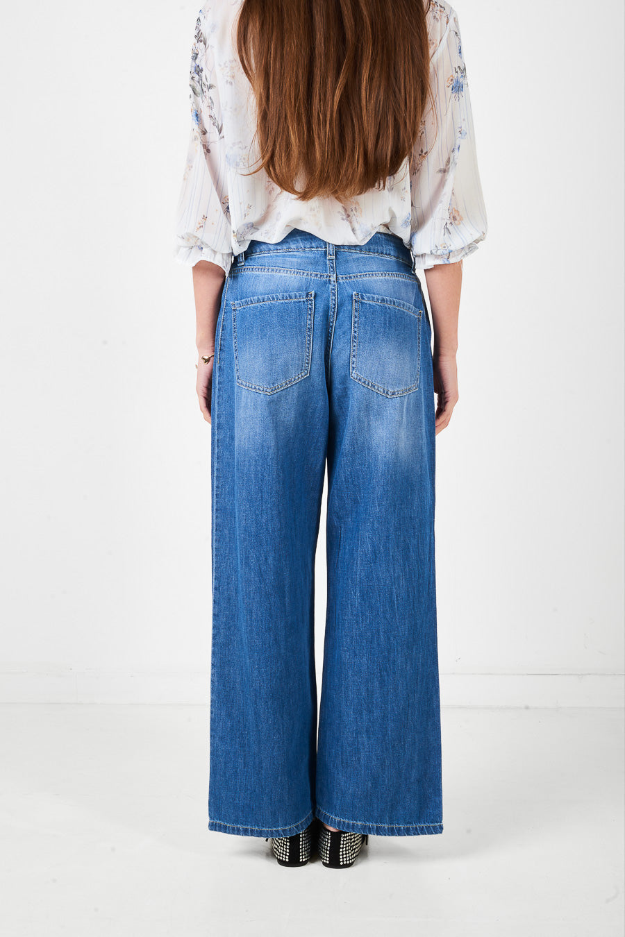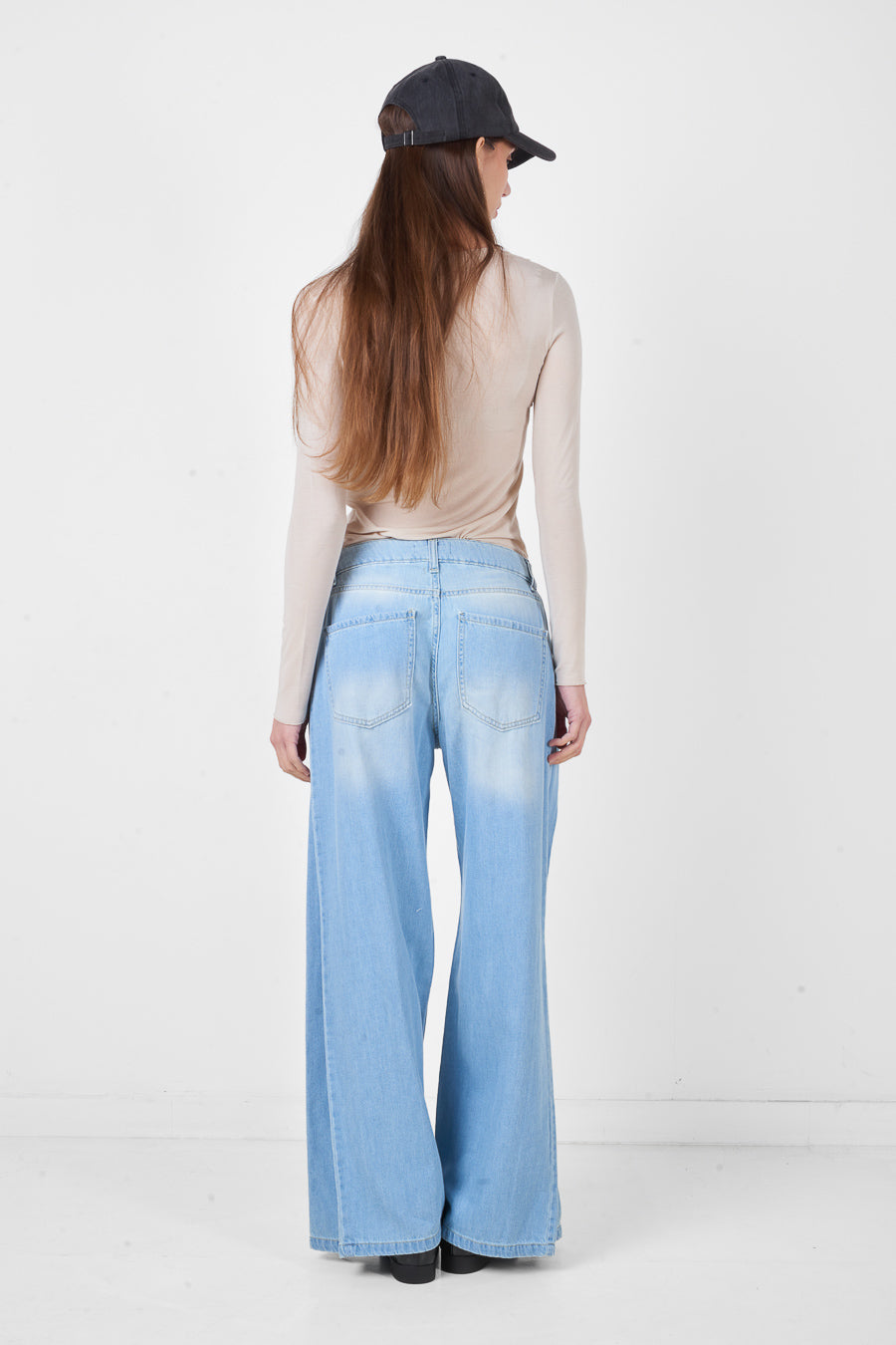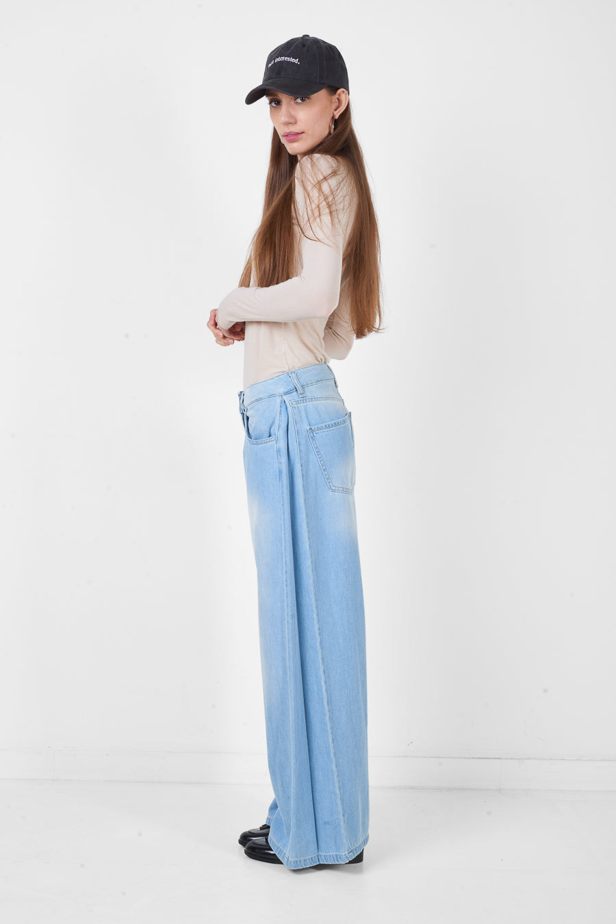 Korkeavyötäröiset leveälahkeiset farkut, joissa suora leikkaus ja rento istuvuus tukkumyynti