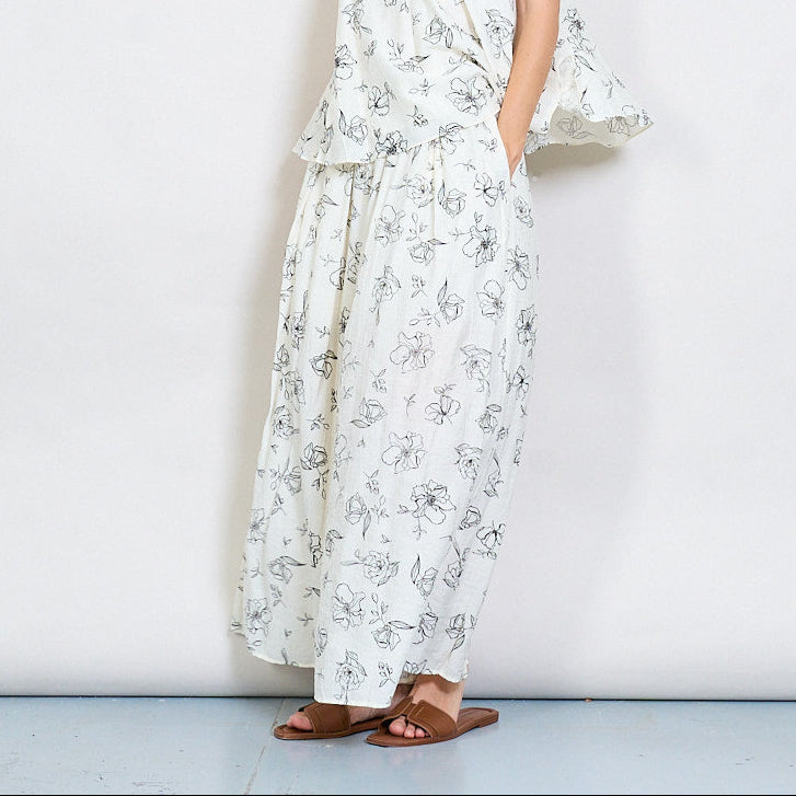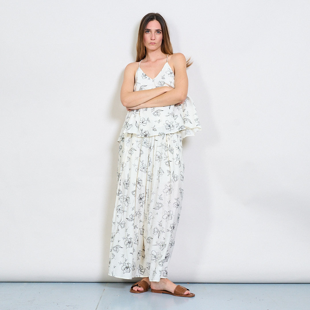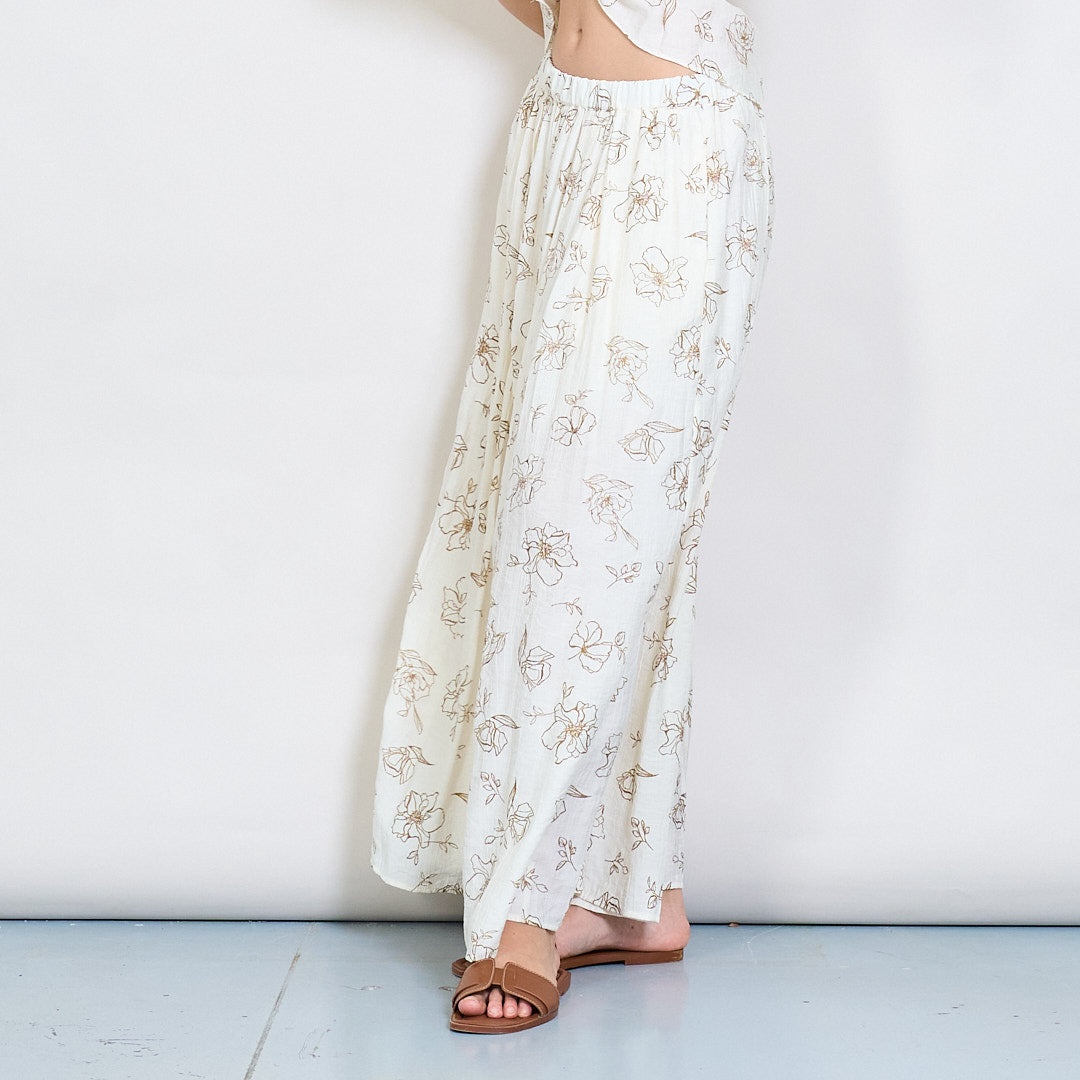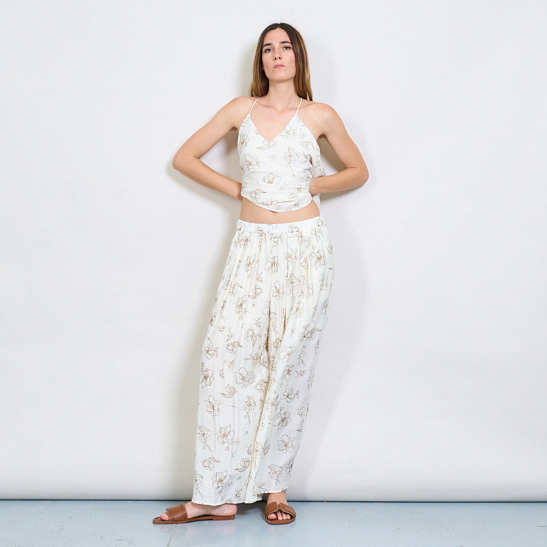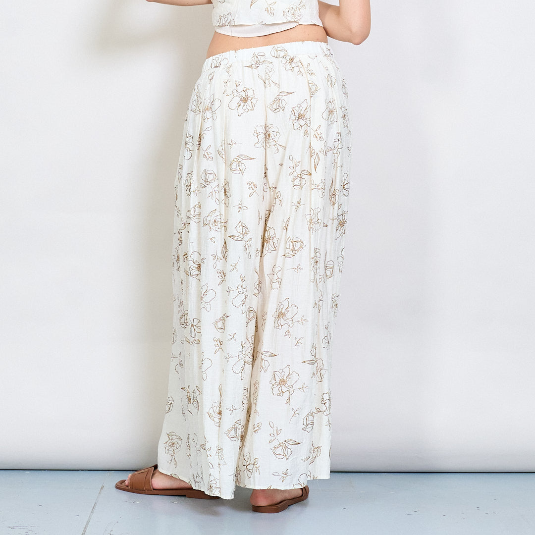 Pehmeä kukka-ääriviivat tulostavat laajajalkaiset housut tukkumyynti