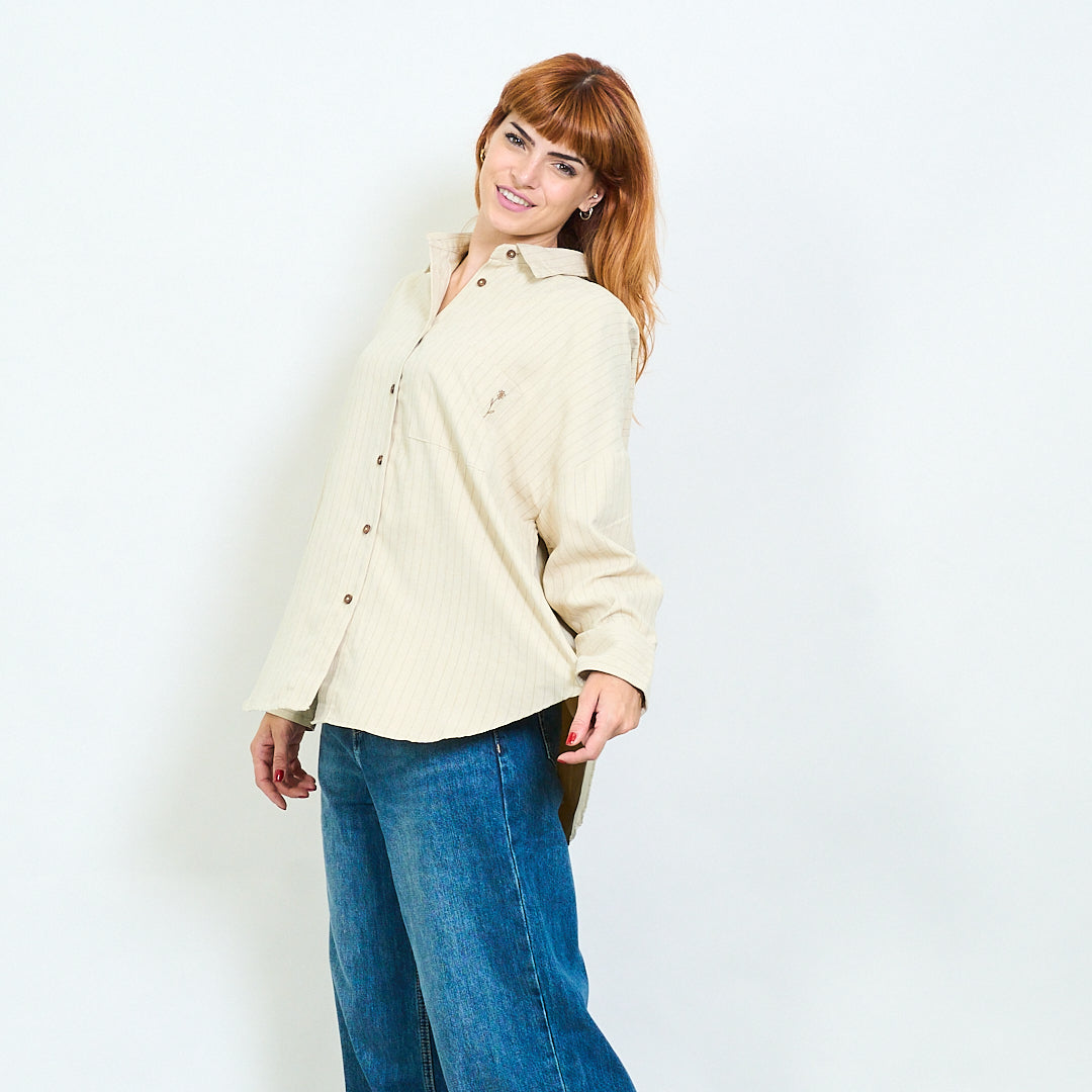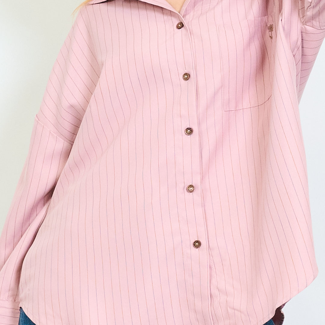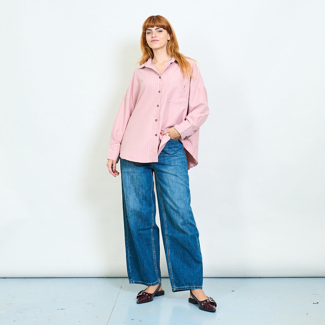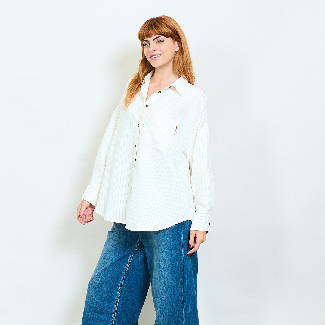 Pinstripe ylimitoitettu nappipaita taskutukesta