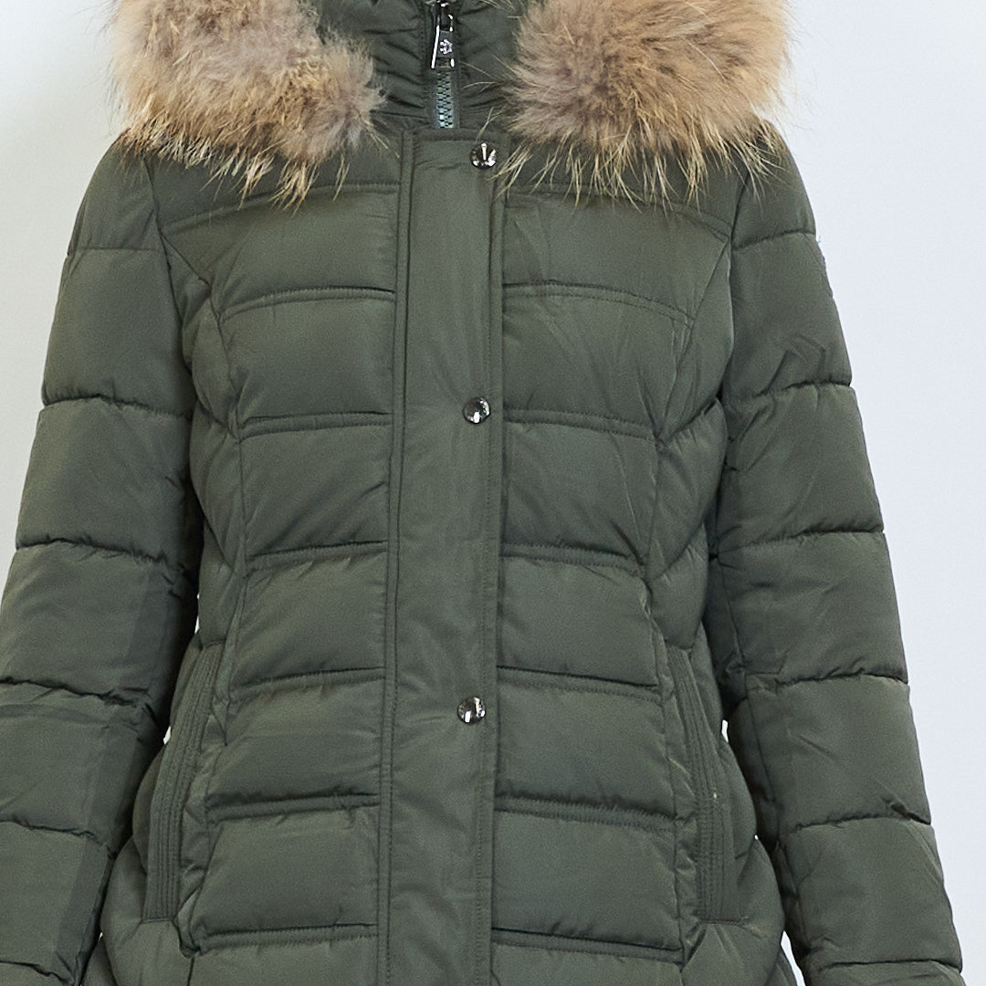 Pitkä tikattu turkki irrotettavalla faux -turkishousulla tukkumyynti