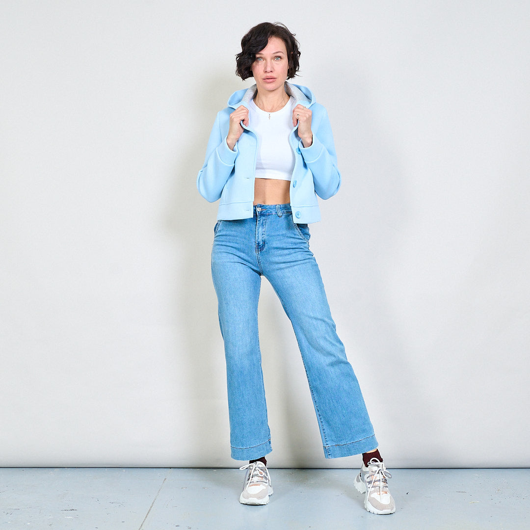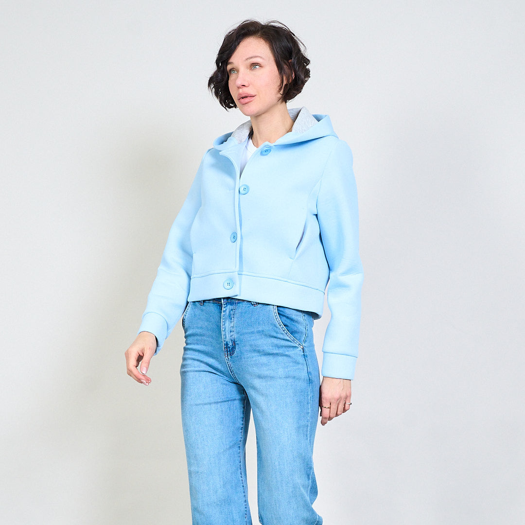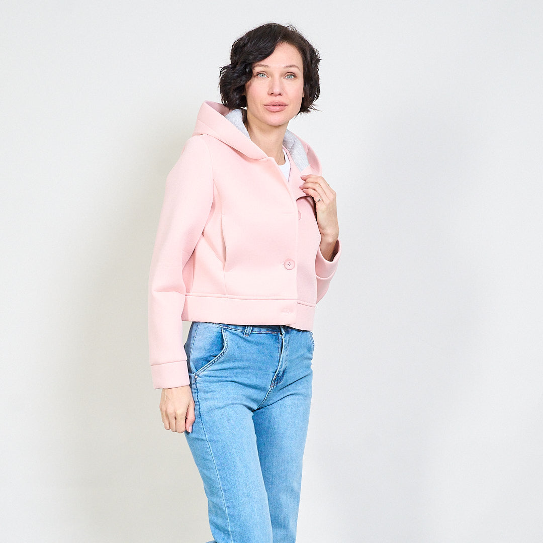 Tyylikäs rajattu takki hupparilla ja napin sulkemis tukkumyynti