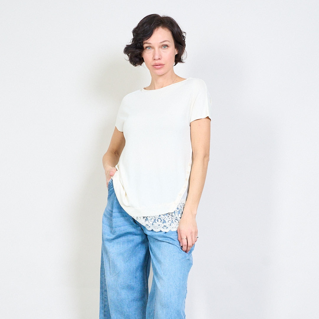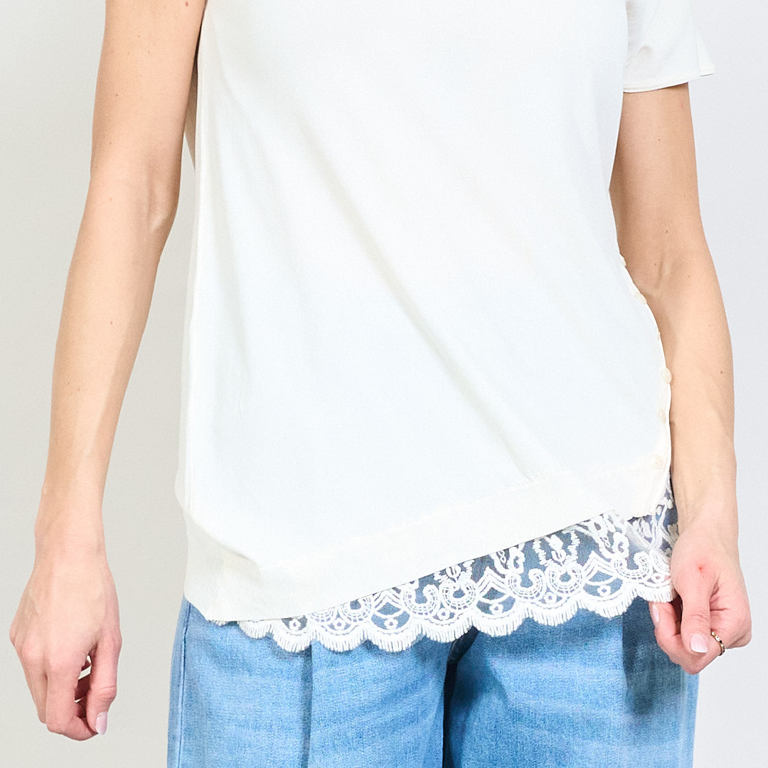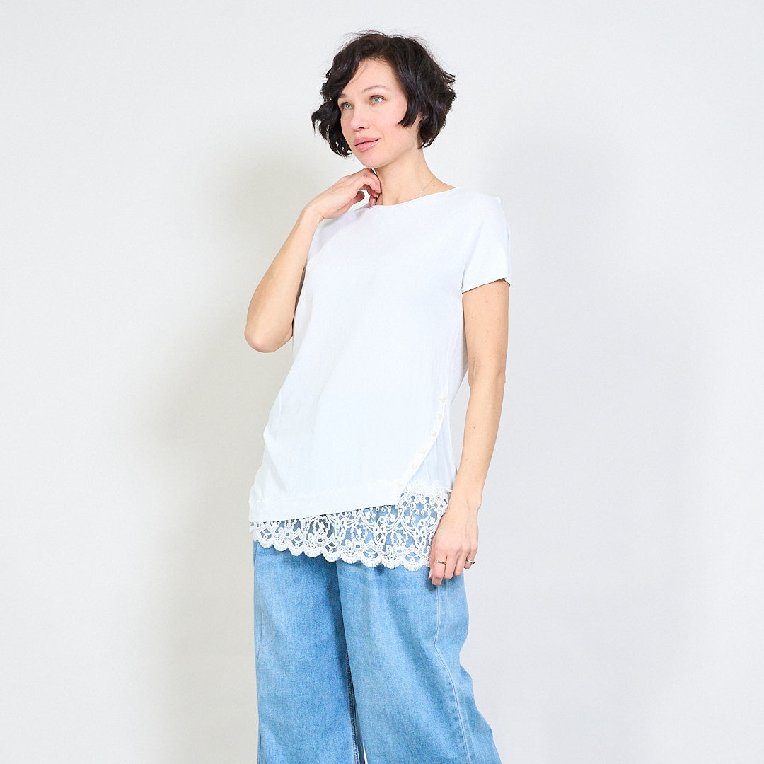 - Herkkä pitsikoriste helmassa tyylikkäästi
