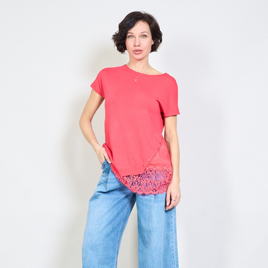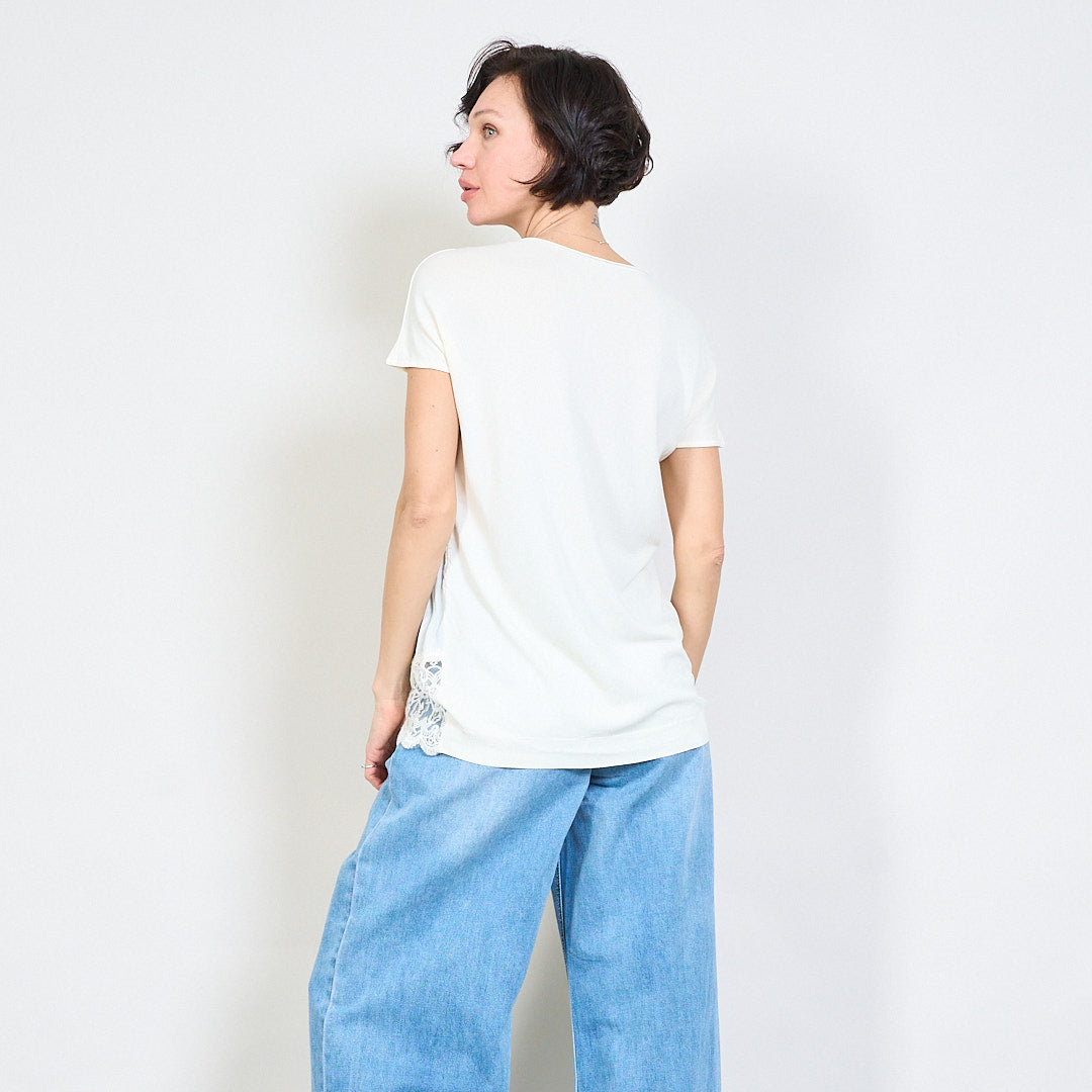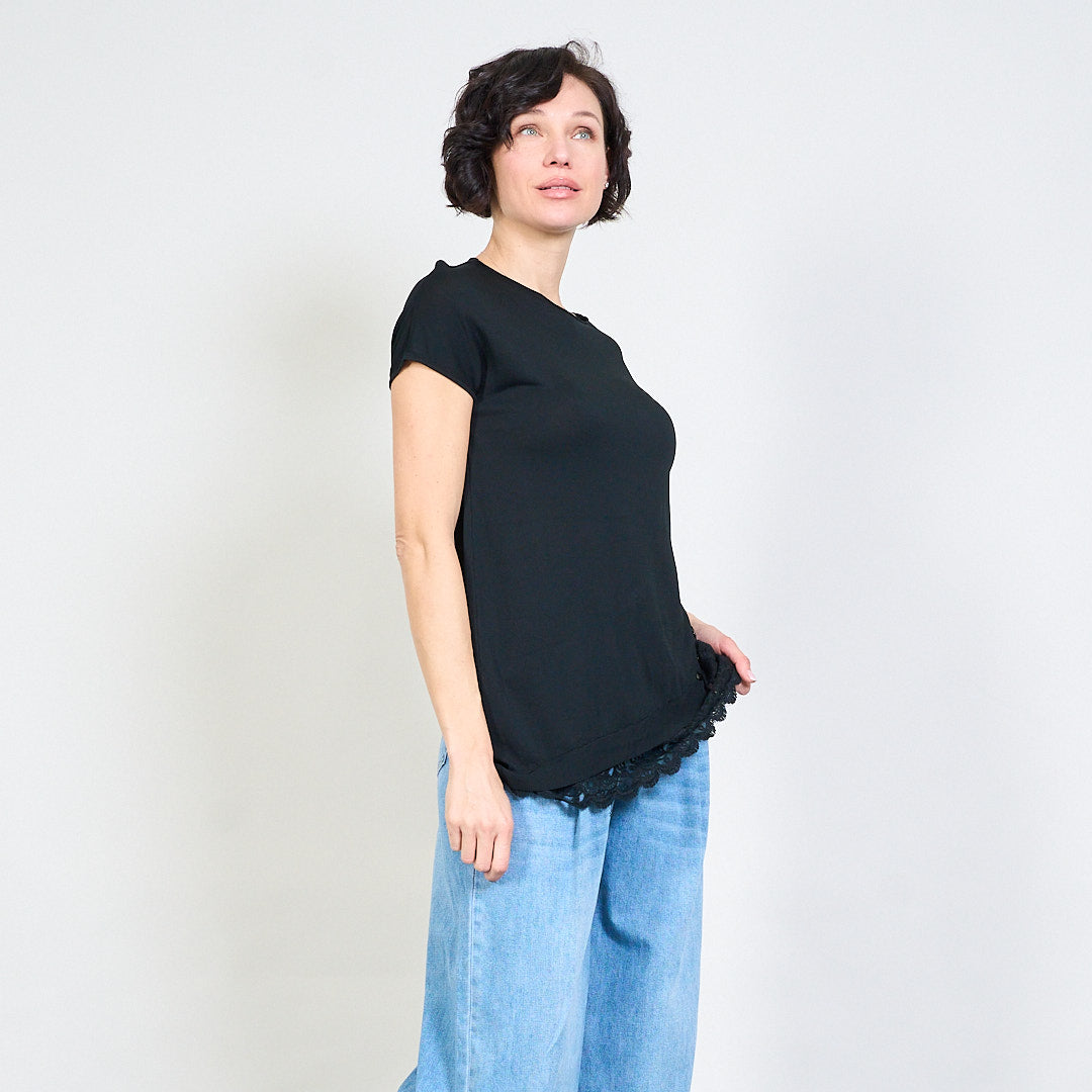 - Herkkä pitsikoriste helmassa tyylikkäästi