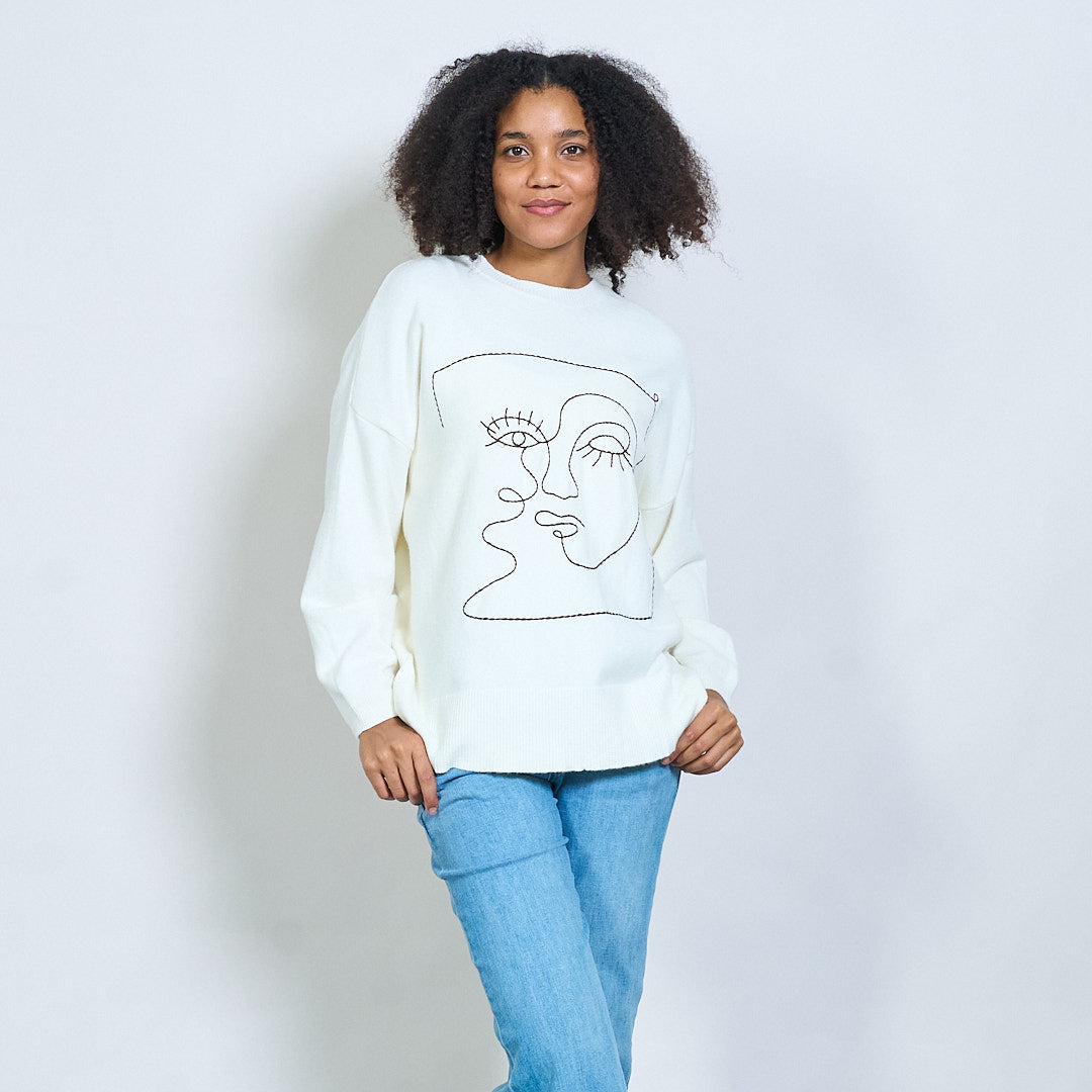 Abstrakti kasvot brodeerattu neulottu villapaita tukkumyynti