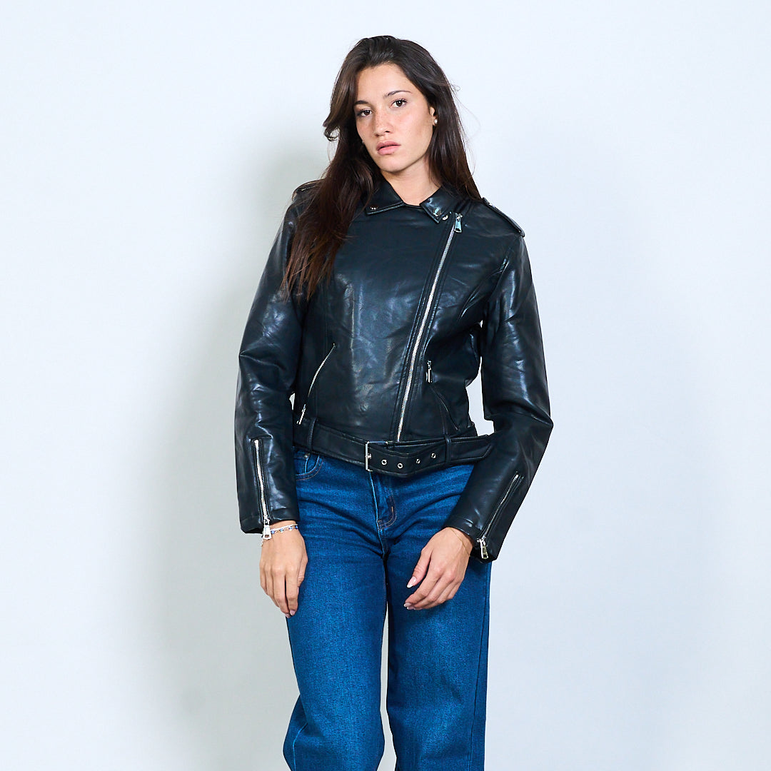Biker -takki epäsymmetrisellä vetoketjulla ja vyötäröllä tukkumyyntiä