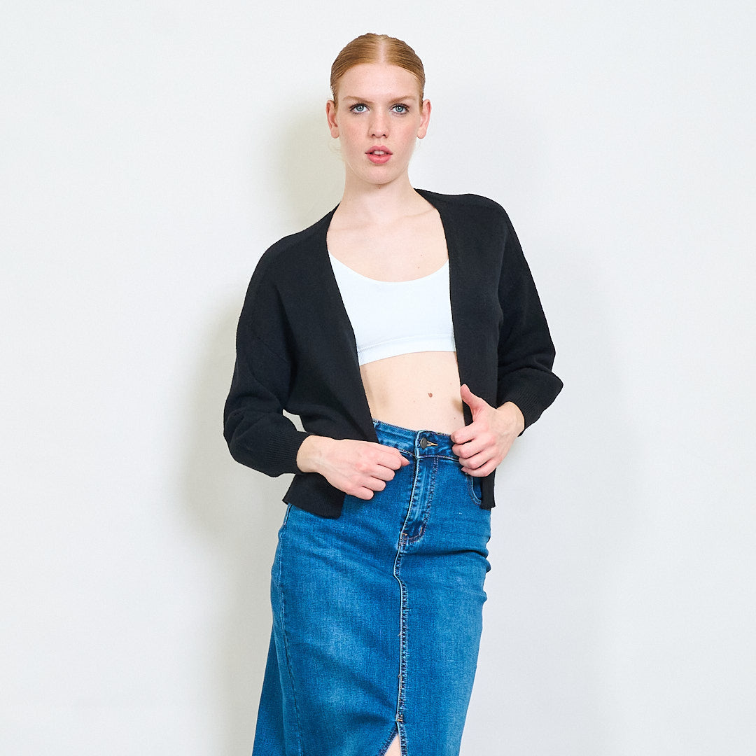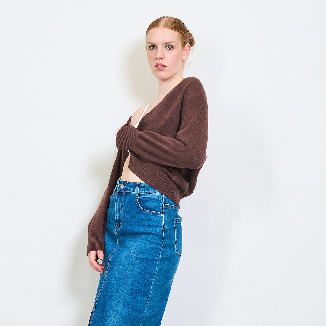 Avoin neulottu neuletakki uritetuilla verhoililla tukkumyynnissä