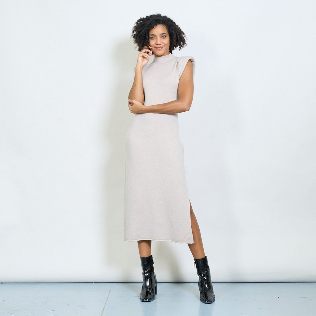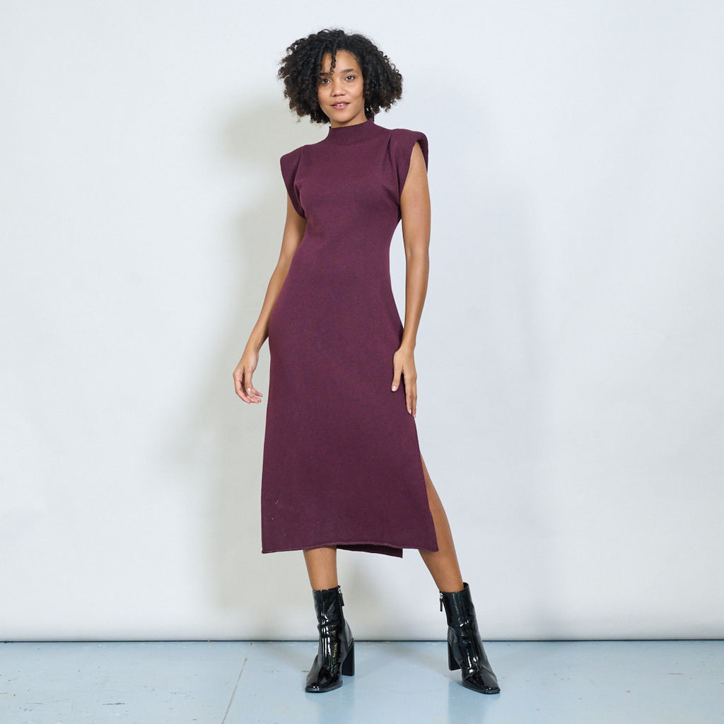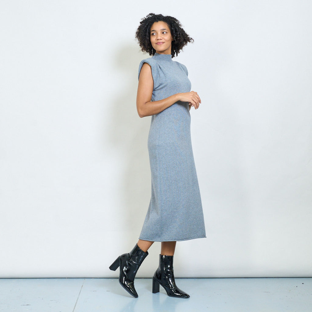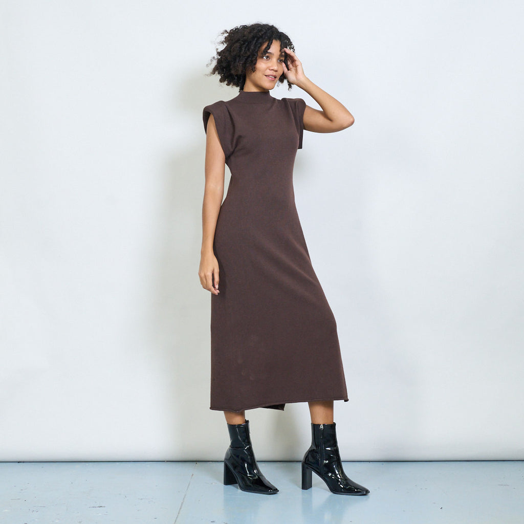 Hihaton korkea kaula -olkapään neulottu mekko tukkumyynti