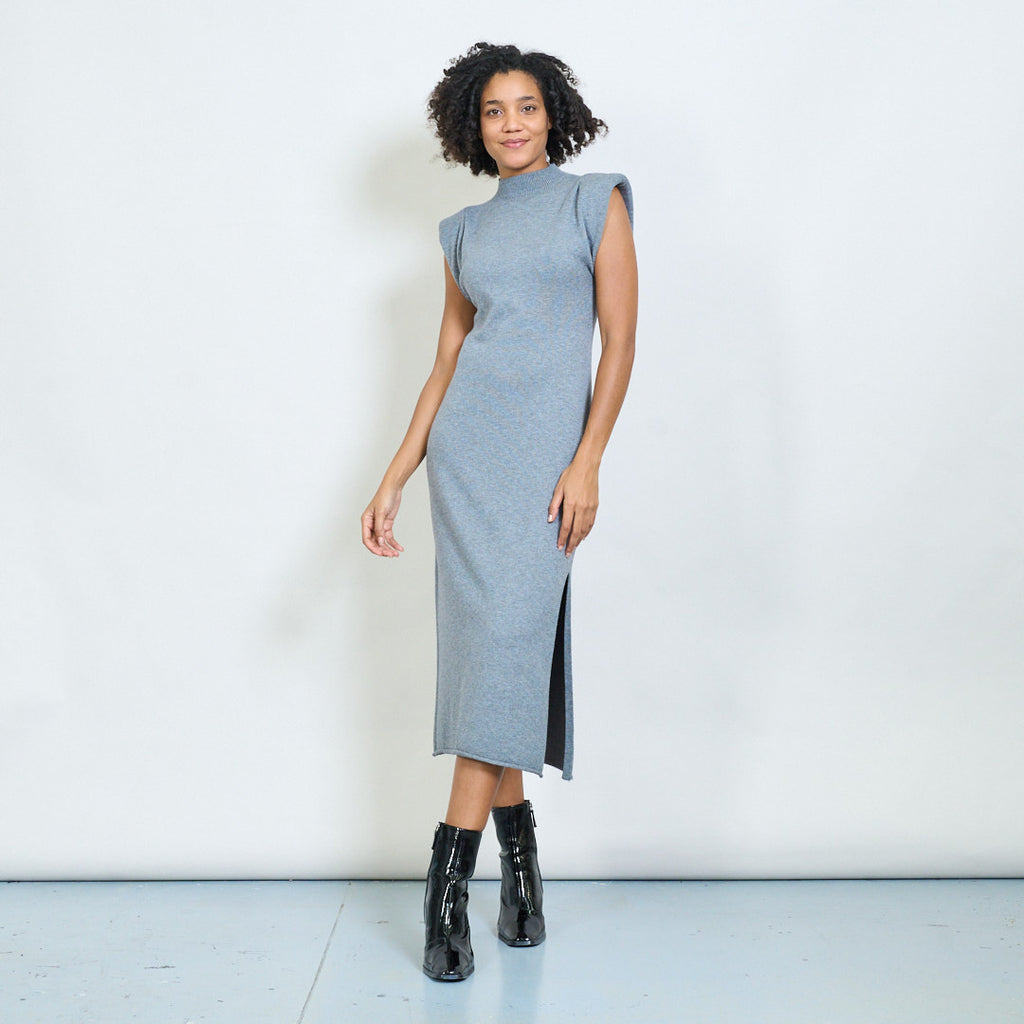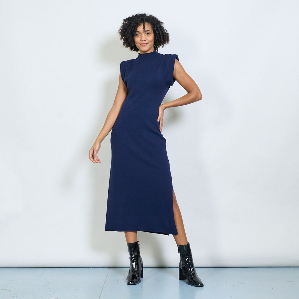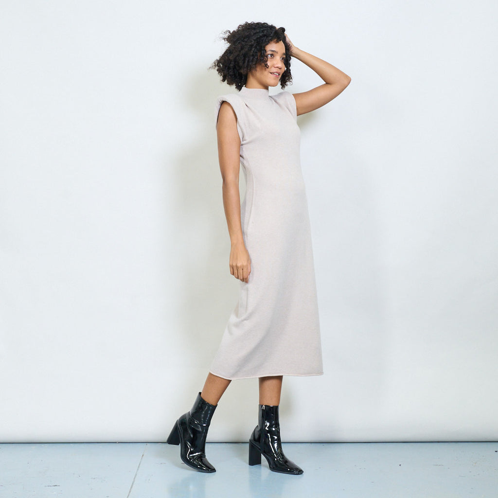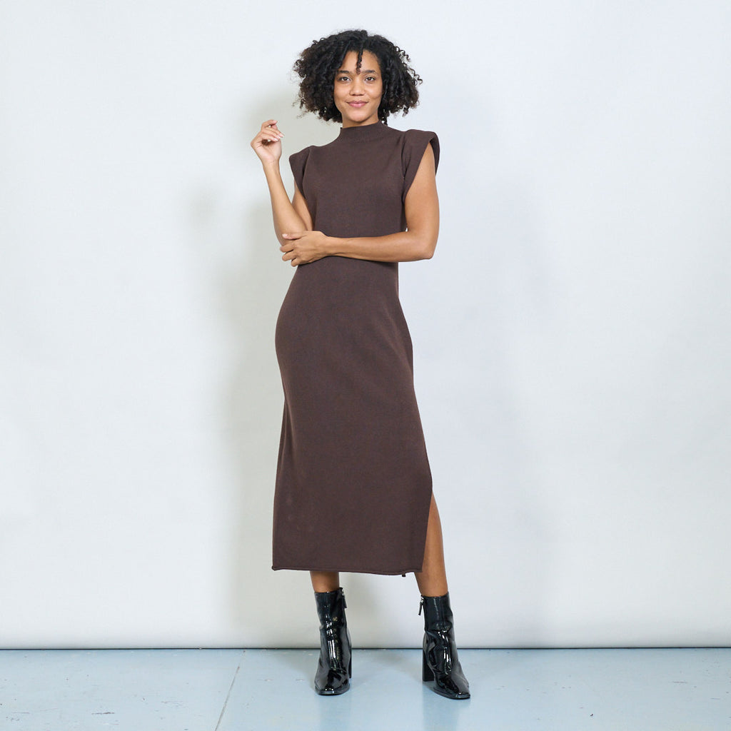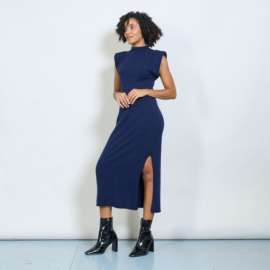Hihaton korkea kaula -olkapään neulottu mekko tukkumyynti