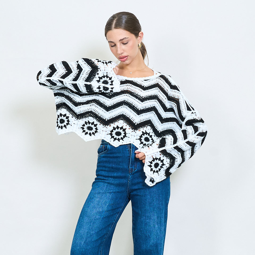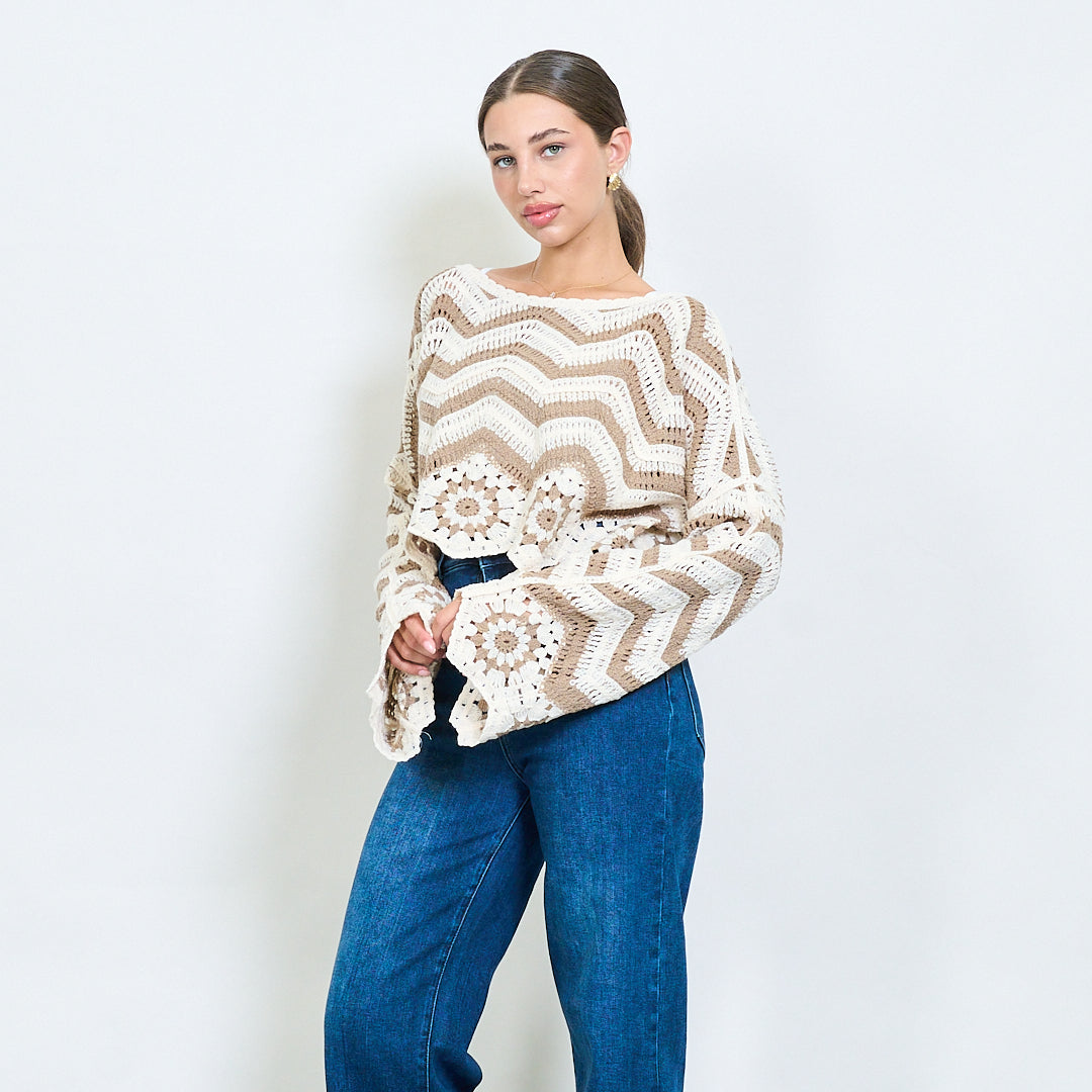 Chevron virkkaus siksak neulottu rajattu villapaita tukkumyynti
