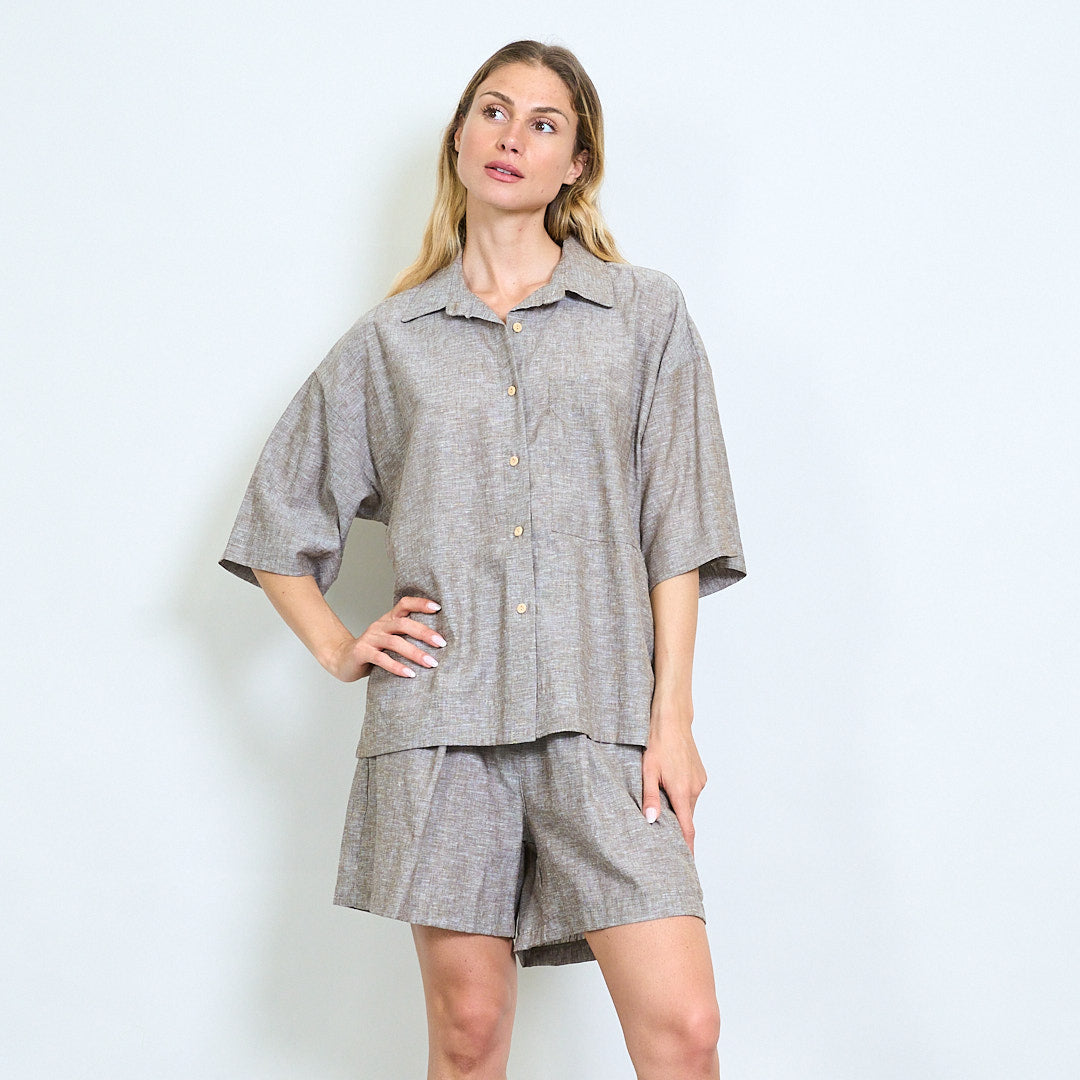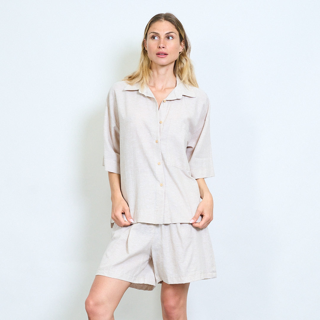 Rento istuvuus lyhythihainen nappi-alas paita tukkumyynti