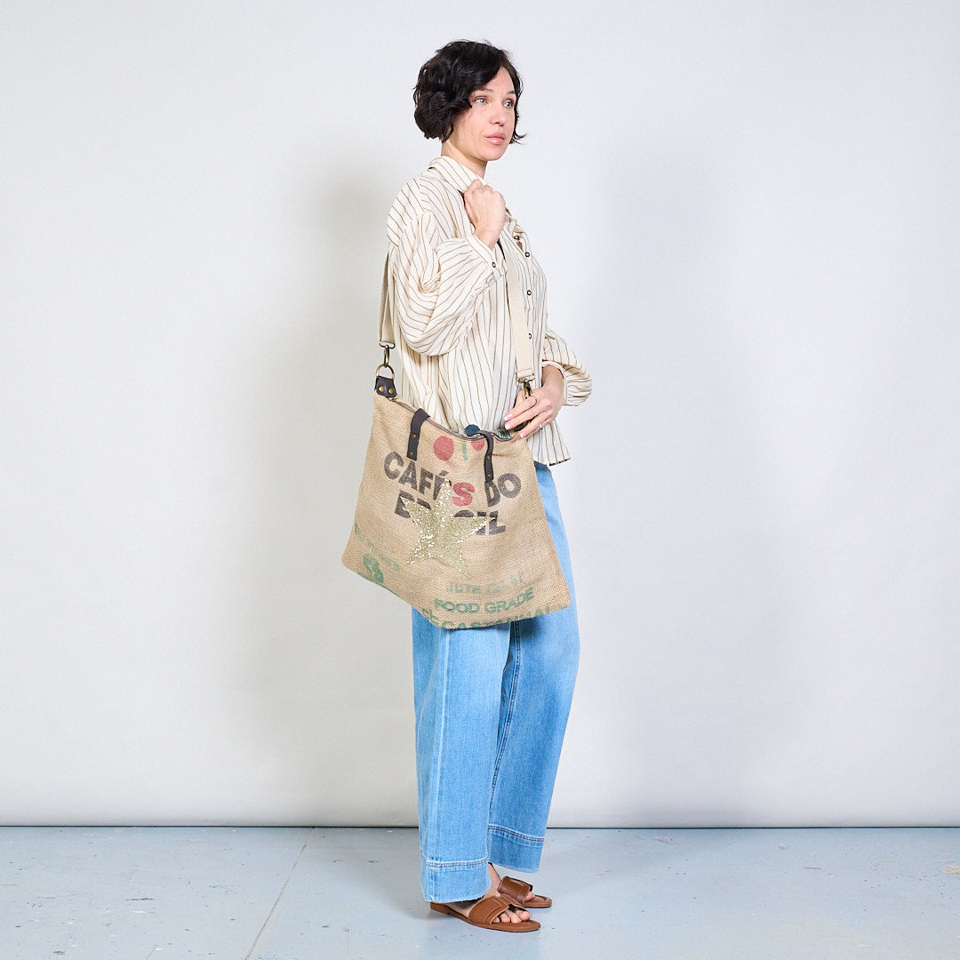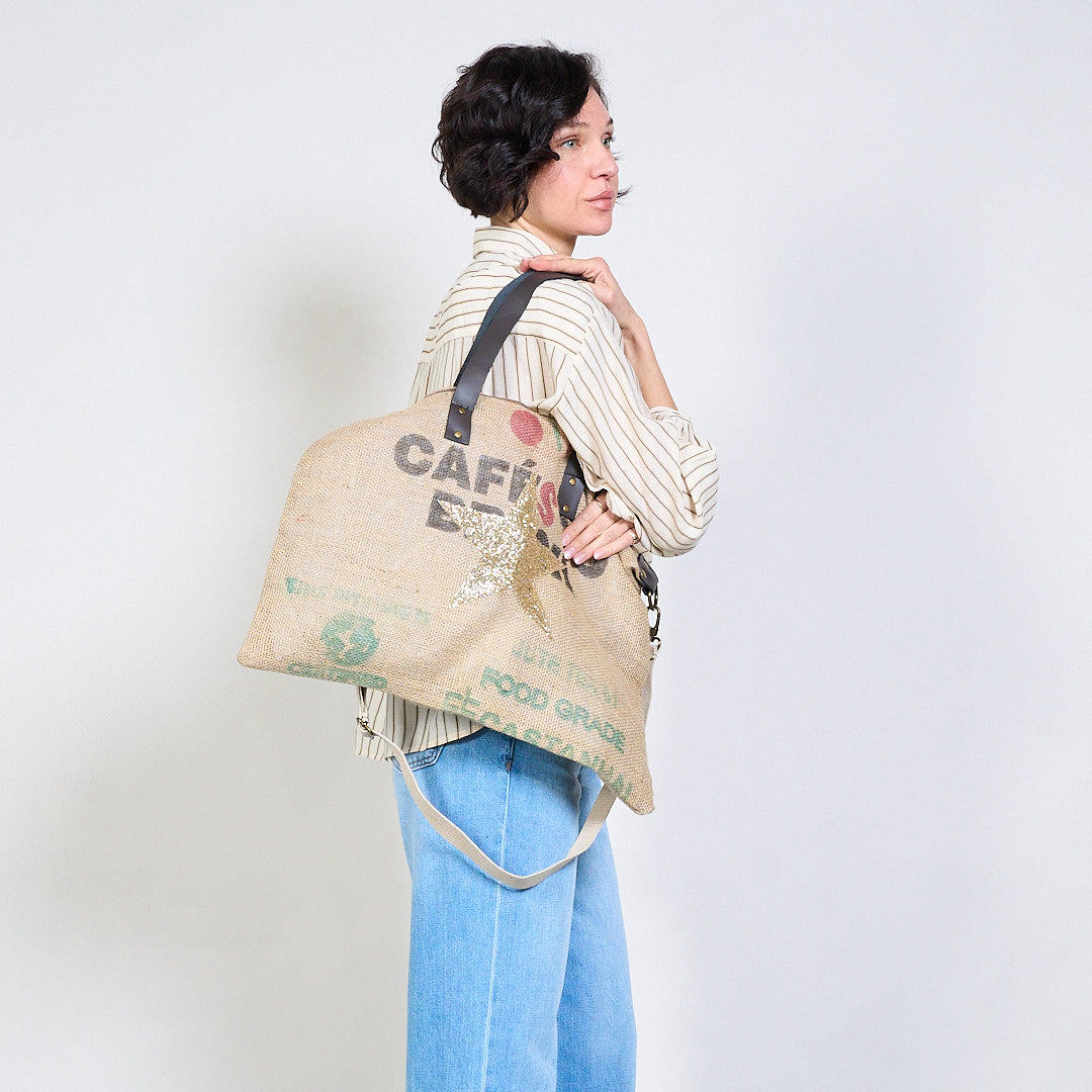 Kierrätetty juutt laukku glitter -tähden tukkumyynnissä