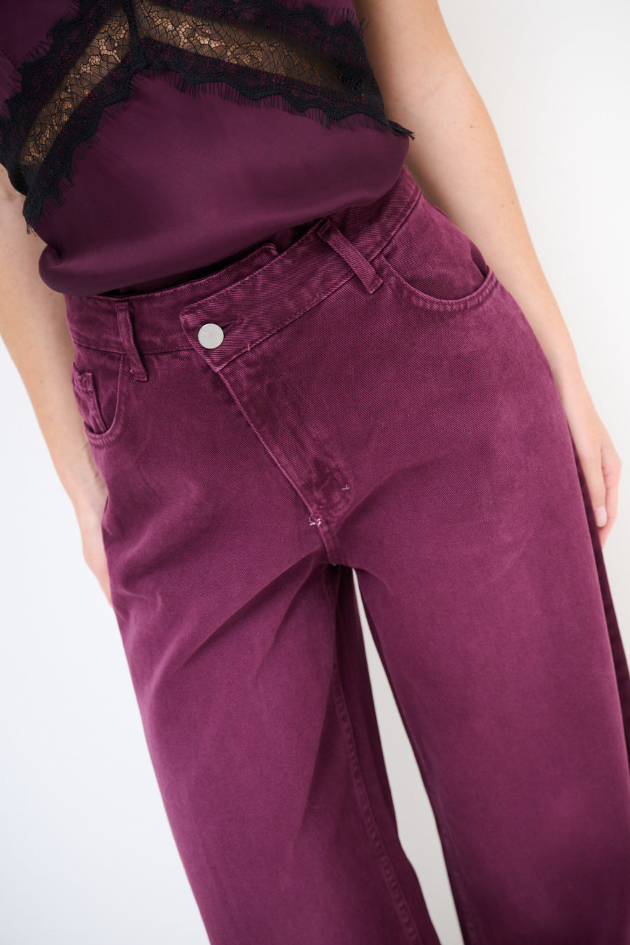 Korkeavyötäröiset suorat leveät denimhousut sileällä viimeistelyllä tukkumyynti
