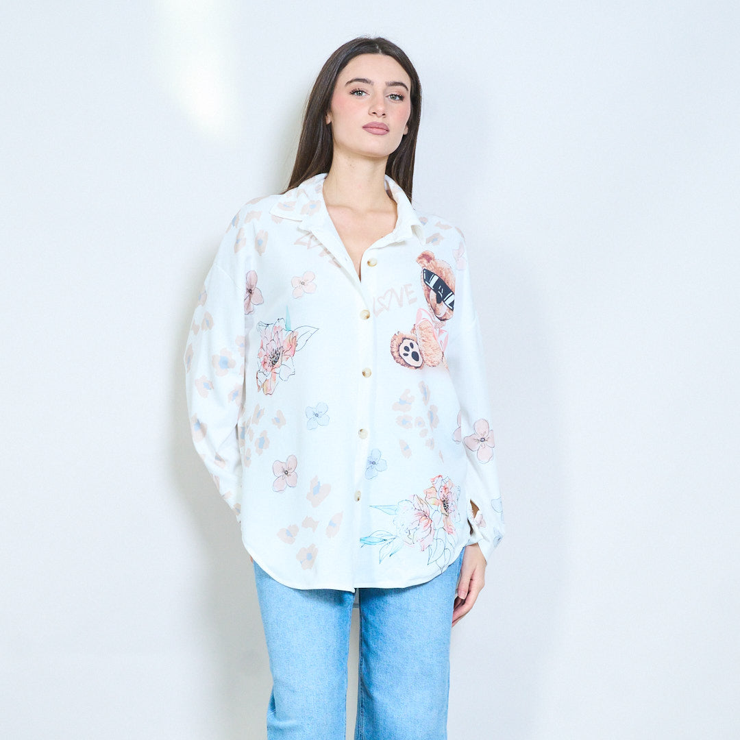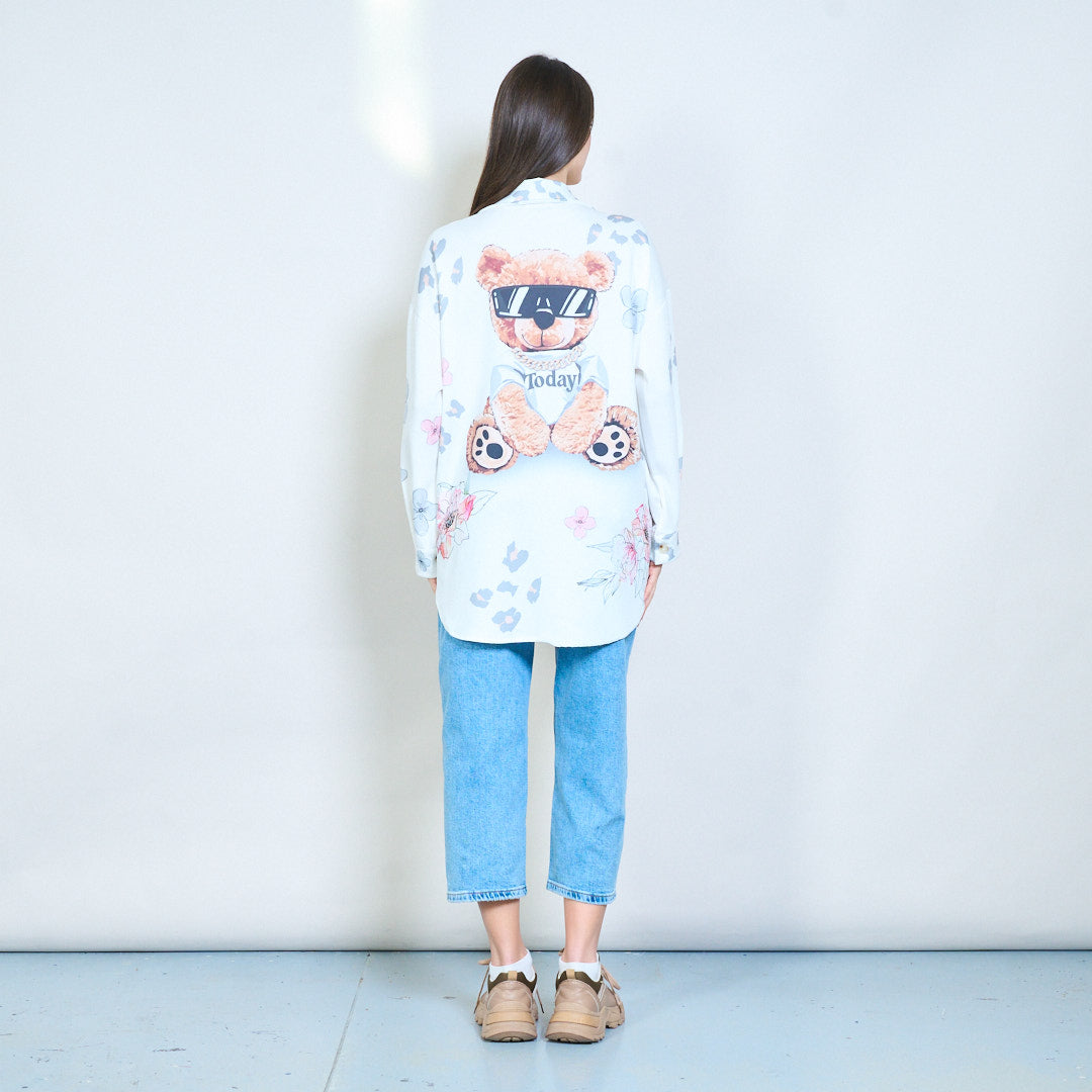 Painettu nappipaita nalle- ja kukkakuvioilla tukkumyynti