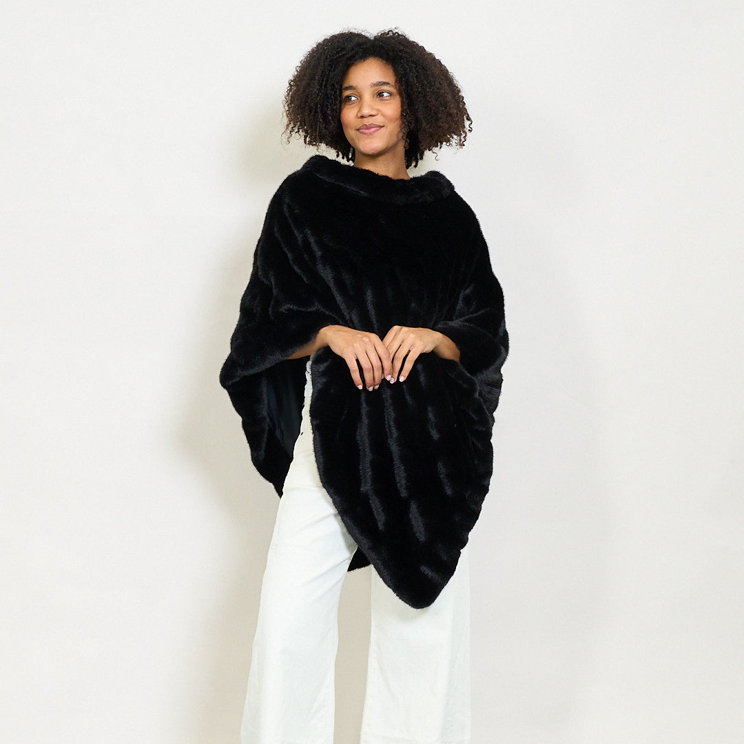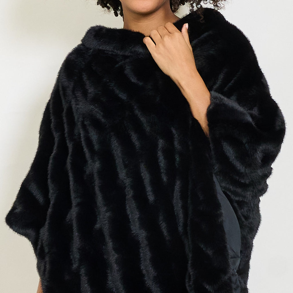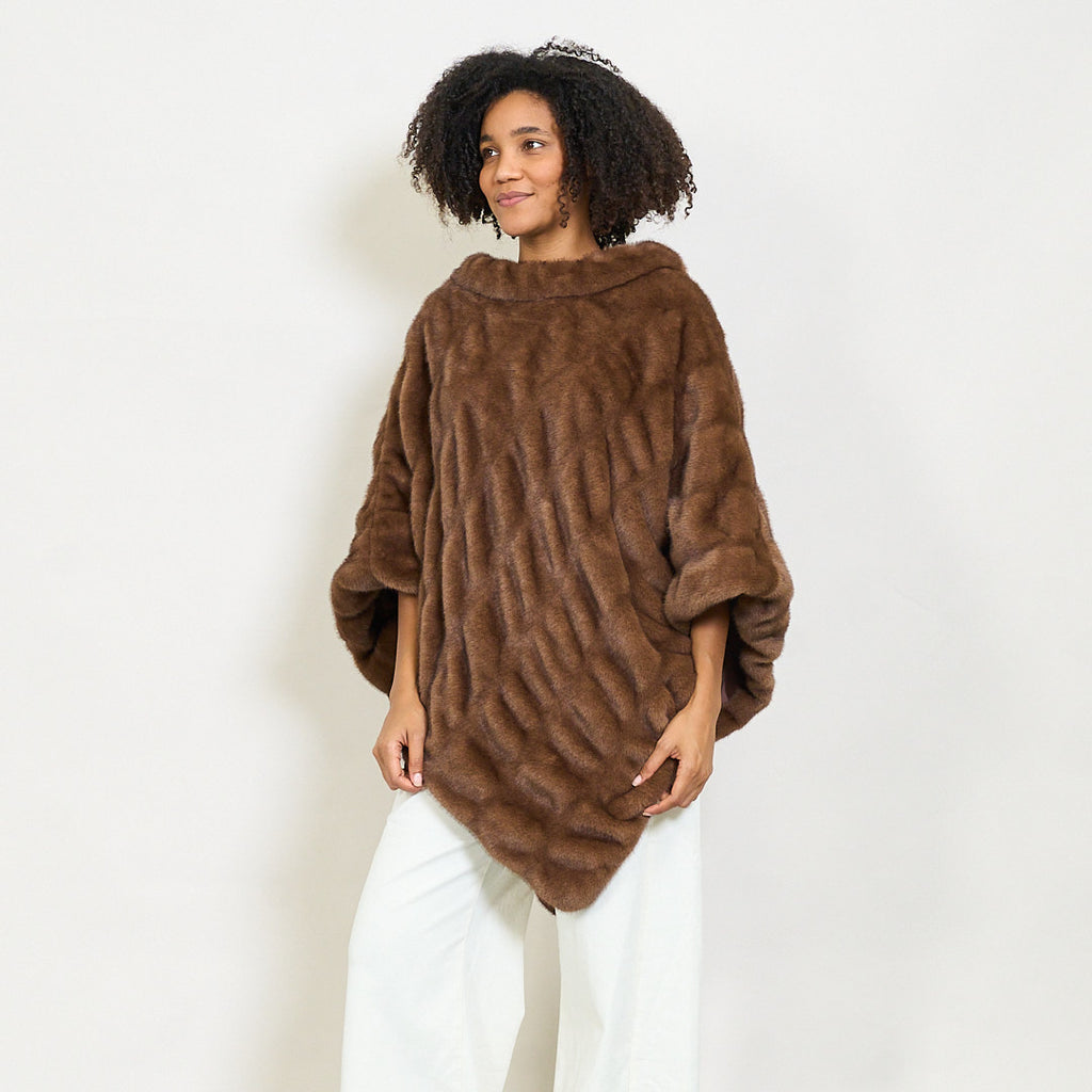 Pehmoinen fux -turkis poncho -viitta pehmeällä veneen pääntie tukkumyyntillä